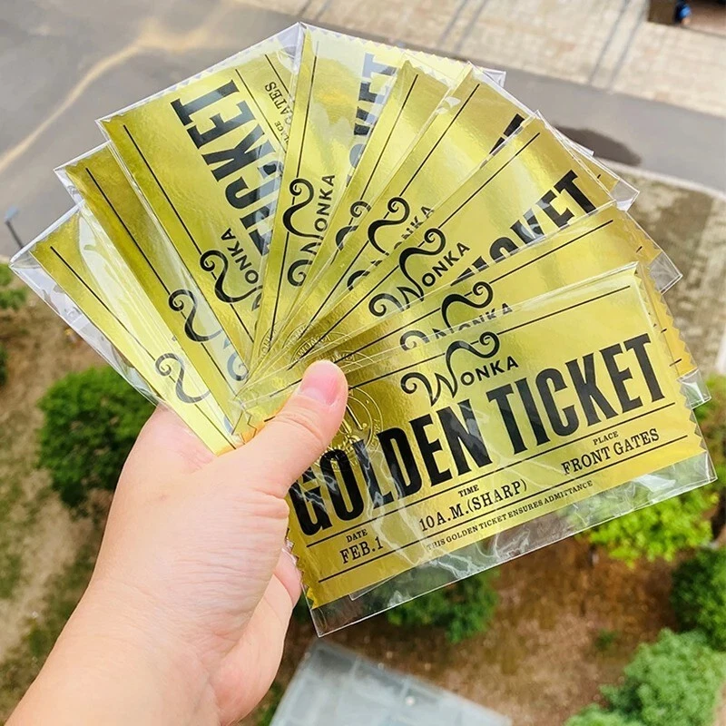 Charlie WONKA Chocolate Golden Ticket Gold Voucher Collectible Cosplay Prop Gift DESCRIPTION Step into the whimsical world of Willy Wonka with this stunning Golden Ticket replica! Whether you're a devoted fan, an avid collector, or searching for the perfect cosplay accessory, this high-quality keepsake is a must-have for any Wonka enthusiast. Key Features: ✔ Authentic Design – A faithful recreation of the iconic Golden Ticket from the beloved story. ✔ Perfect Scale (1/12) – Ideal for display, cosplay, or as a unique conversation piece. ✔ Premium Quality – Made from durable, high-quality materials for a realistic feel and long-lasting shine. Perfect For: Cosplay & Costumes – Elevate your Wonka-inspired look with this magical prop. Collectors & Display – A striking addition to any memorabilia collection. Unique Gift Idea – Surprise a fan with this dazzling piece of movie magic! What’s Included? 1 x Wonka Golden Ticket – Your golden chance to own a legendary piece of film history! Don’t miss out—grab yours today before they vanish like a fizzy lifting drink! PACKAGING :We carefully pack your item before shipping from our facility to ensure it arrives safely without any damage during transit. If you have any questions or concerns upon receiving your order, please feel free to contact us. Thank you. STANDARD DELIVERY TO USA & WORLDWIDE