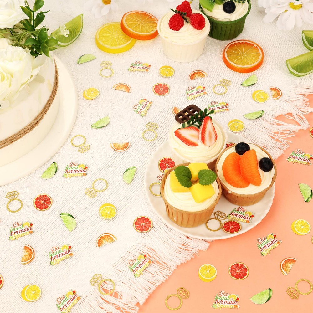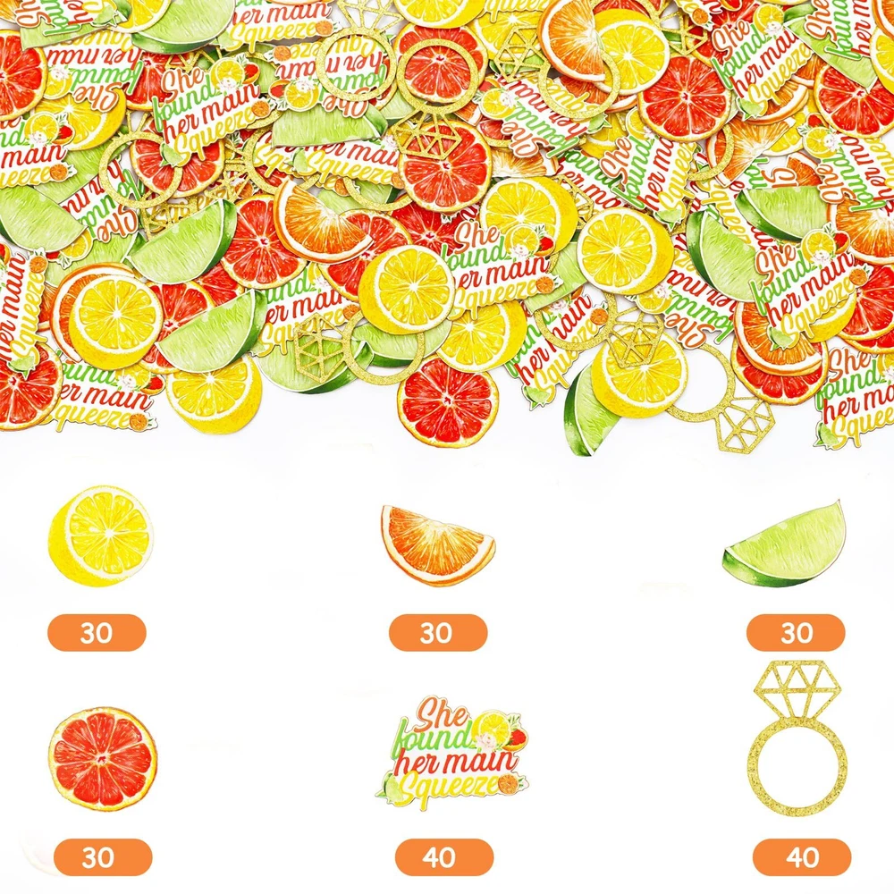 Wonmelody 200 Pcs Citrus Themed Bridal Shower Confetti Decor She Found Her Main Squeeze Bridal Shower Decor Tangerine Eucalyptus Scatter Confetti for Lemon Tropical Citrus Bachelorette Wedding Party Fresh fruit confetti is perfect for a summer bachelorette party. Package Includes: 200*citrus themed confetti(40*0.70inch*1.10inch ring pattern, 30*0.82inch*0.86inch grapefruit pattern, 30*0.82inch*0.78inch orange petal pattern, 30*0.82inch*0.78inch orange pattern, 30*0.90inch*0.78inch lime pattern, 40*1.18inch*0.86inch letter pattern) She found her main squeeze confetti:You will get 200*citrus themed confetti. There are six different patterns in total Citrus theme bridal shower:Fruit patterned bachelorette party confetti is decorated with a red, orange, yellow and green tangerine fruit pattern along with a diamond ring and SHE FOUND HER MAIN SQUEEZE patterned confetti. If you want to have a she found her main squeeze themed bachelorette party but would like to have some of the same themed confetti that creates a sense of ambiance, how about choosing this fruit themed confetti to give your party a detailed flair Material:The fruit-patterned bachelorette party confetti is made of glitter paper, and the reflective effect in the sunlight will give a special sense of fresh ambiance. The double-sided printing process will also make the confetti easier to photograph and decorate Wide applications:We recommend that you use she found her main squeeze confetti for occasions such as fruit themed bachelorette parties, she found her main squeeze bachelorette party, lemon bachelorette party, orange bachelorette party, fruit themed bachelorette party, citrus themed engagement party, etc Warm tips:Confetti is generally used to throw on table tops, in the air, or to stick on walls, drink bottles, and cake topper for decoration. If you have any questions or suggestions about our products please feel easy to contact us, we will give you a satisfactory answer as soon as possible Shipping from the USA All of our products are shipped from the USA, ensuring quick delivery to your destination. Payment We offer the following payment methods: PayPal, credit card, bank transfer, and eBay's secure payment system. Free Shipping & Free Returns Shipping within the USA is FREE. Additionally, any return is absolutely free for you. Risk-Free Purchase You have the option to return an item within 30 days without any justification. We cover the return shipping costs! Fast Shipping We ship immediately upon receipt of payment. Generally, the package is delivered within 2-3 days in the USA. If it takes longer, we will contact you. Quality and Costs Made in Europe, USA, China No customs fees or additional charges Total satisfaction guarantee Invoice with declared VAT available upon request in .pdf format Feedback Your feedback is very important to us. After you pay for your purchase, you will automatically receive positive feedback from us.
