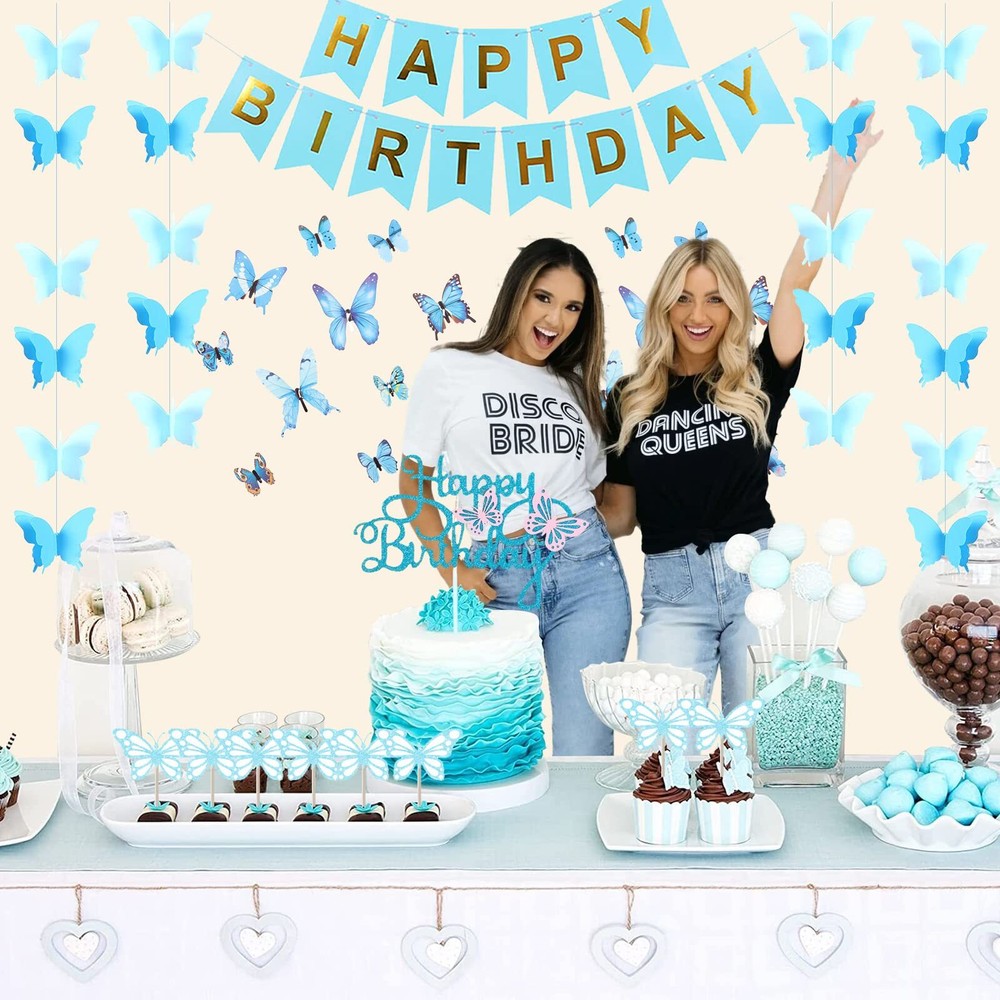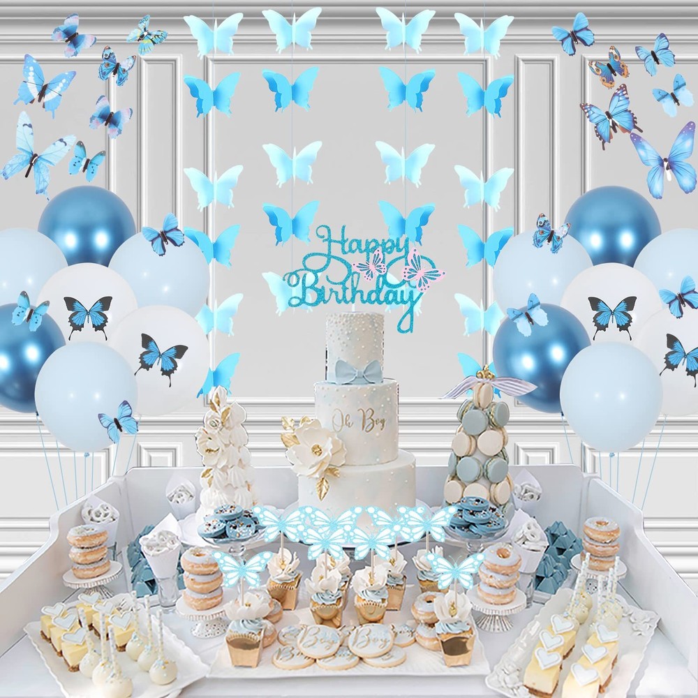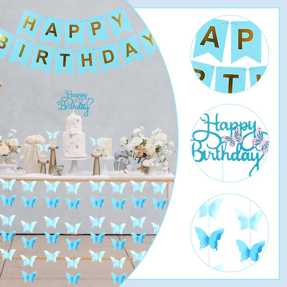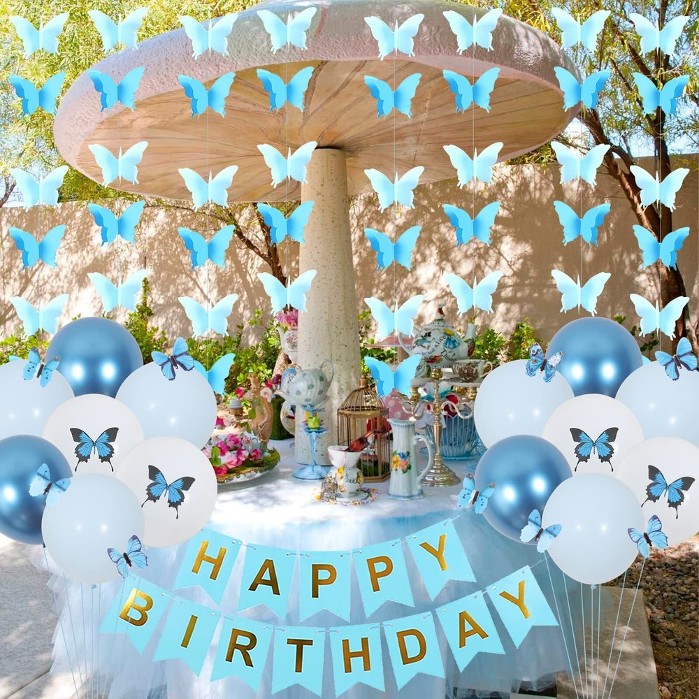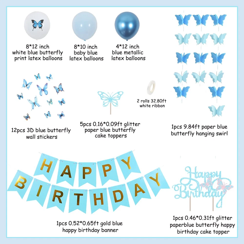 Wonmelody Blue Butterfly Birthday Decorations Light Blue Butterfly Balloon Supplies with Happy Birthday Banner Hanging Swirls Blue Gold Fairy Cake Topper for Baby Shower and Outdoor Garden Party Enjoy a romantic and elegant blue butterfly themed birthday party! What could be more romantic than enjoying a garden birthday tea party while experiencing the natural atmosphere of butterflies with friends? Please read the following product information to help you learn more about our blue butterfly birthday decoration packages. Accessories parameters : 4*12 inches blue latex balloons 12 pcs of 3D blue butterfly wall stickers 13pcs 0.52*0.66ft blue happy birthday banner (not string) 5pcs glitter paper gold blue butterfly cake toppers 1pcs 0.46*0.31ft glitter paper blue butterfly happy birthday cake topper 1pcs 9.84ft paper light blue butterfly string piece hanging swirl 2 rolls 32.80ft white ribbon Light blue butterfly birthday set: You will get white butterfly print balloons, baby blue and navy blue balloons. Gold Blue happy birthday banner, blue butterfly wall sticker, blue butterfly and happy birthday letter cake topper and blue butterfly hanging swirls Exquisite and durable:Blue butterfly decorations are the current trend and are suitable for anyone's birthday party. The butterfly and letter cake toppers are made of glitter paper. Blue butterfly balloons supplies are durable and perfect romantic for your birthday party. And the butterfly stickers are sticky Blue butterfly set application occasion:The blue butterfly balloons birthday party decor is suitable for everyone, especially baby shower decorations, blue birthday balloon wedding party, classroom birthday party or garden yard birthday party. Blue butterfly balloons decorations will bring you and your dear unforgettable memories Easy to assemble:You just need take out the folded happy birthday banner, then hang them in any position you want, you can also hang the banner on a high chair. And please pull the butterfly hanging swirls lightly, then decorate your home according to your own preferences Remarkable blue butterfly birthday party:Blue butterfly birthday decor covers everything you need. You can also decorate your room's doors and window curtains with wall hangings and stickers to bring the natural atmosphere into your home. If you have any issue, please feel easy to contact us Shipping from the USA All of our products are shipped from the USA, ensuring quick delivery to your destination. Payment We offer the following payment methods: PayPal, credit card, bank transfer, and eBay's secure payment system. Free Shipping & Free Returns Shipping within the USA is FREE. Additionally, any return is absolutely free for you. Risk-Free Purchase You have the option to return an item within 30 days without any justification. We cover the return shipping costs! Fast Shipping We ship immediately upon receipt of payment. Generally, the package is delivered within 2-3 days in the USA. If it takes longer, we will contact you. Quality and Costs Made in Europe, USA, China No customs fees or additional charges Total satisfaction guarantee Invoice with declared VAT available upon request in .pdf format Feedback Your feedback is very important to us. After you pay for your purchase, you will automatically receive positive feedback from us.