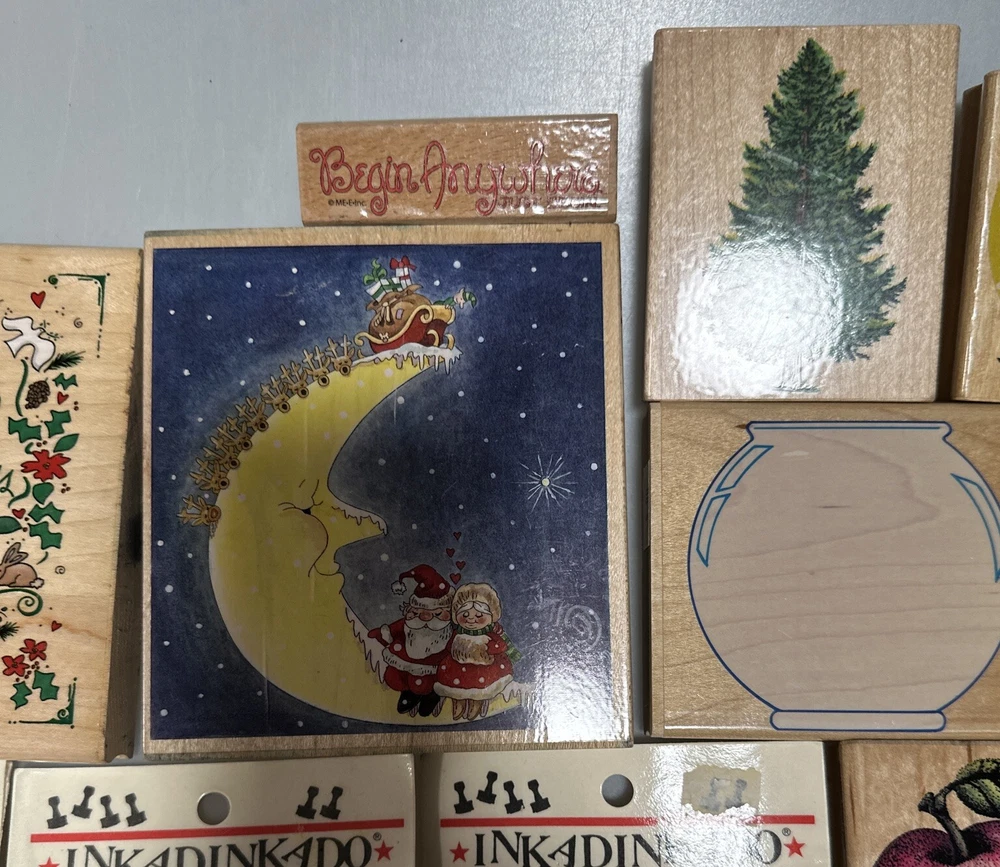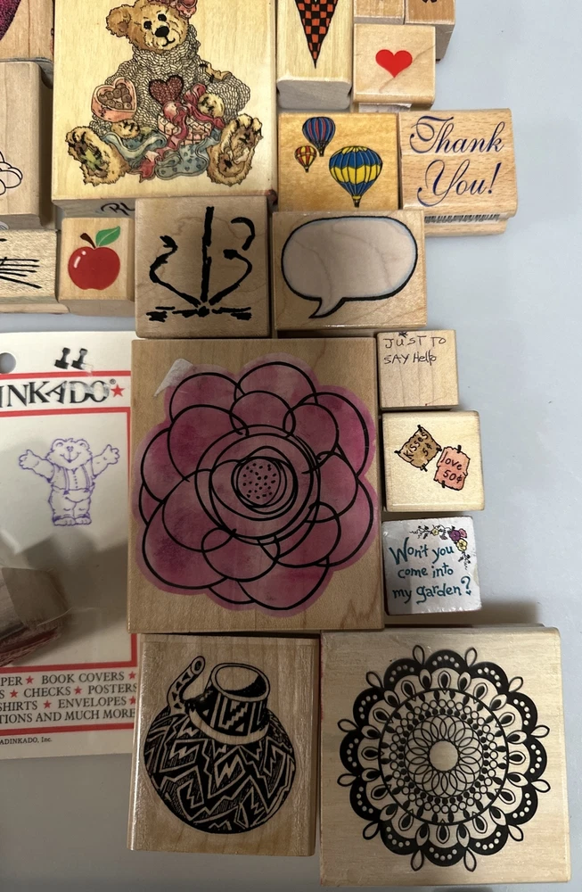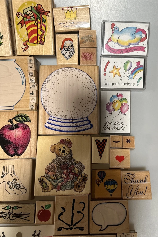 This is a lot of 50 various rubber stamps some new most used. Please ask all questions prior to purchase.
