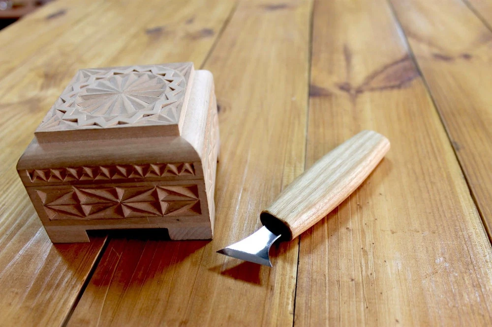 View more great items Wood Carving Knife Geometric Carving Knife Detail Knives Hand Tools Knives C10s This great chip carving knife is used for geometric woodcarving. It is designed for cutting geometric patterns in the wood, aligning the background with relief wood carvings and more. The knife for geometric wood carving has a special blade shape, which allows you to cut not only towards yourself but also from yourself. It goes both for right- and left-handed people. Shop for the perfect geometric wood carving knife today! Dimensions: Total length — 135 mm (5.31 inches) Width of the cutting edge — 30 mm (1.18 inches) Handle length — 105 mm (4.13 inches) Handle material — Ashwood Features: Razor-sharp hard carbon steel blade is ready to use Comfortable even after hours of continued carving Ergonomic oak hardwood handle See more wood carving tools in my Store - BeaverCraft - Wood Carving Tools Save 30% on shipping for each additional eligible item you buy from"Woodcarvingtools"when you use the cart to make your purchase. Average delivery time: USA: 14-25 DAYS UK: 12-25 DAYS ISRAEL: 25-40 DAYS ITALY: 30-55 DAYS IRELAND: 30-55 DAYS CANADA: 30-55 DAYS BRAZIL, CHILE, SINGAPORE: 30-55 DAYS AUSTRALIA, NEW ZEALAND: 25-45 DAYS MOST EU COUNTRIES: 15-30 DAYS Other Policies I don't responsible for any custom duty or import tax. I will leave Positive feedback after receiving the Positive feedback. Please contact me if you are not satisfied with the item after receiving it. All emails will be answered within 1 business day. If you do not receive our reply, please kindly re-sent your email and we will reply to you as soon as possible. Return policy I want our customers to feel safe knowing they can return their items, no questions asked! If you are not happy with your items for any reason, simply follow these 3 easy steps! 1. Email me to get the return mailing address 2. Write down'RETURN'clearly on the envelop and return to the address provided. 3. Buyers will be contacted to arrange a refund of merchant value once the returned item is received. Please note that postage is NOT refundable. Feedback I maintain high standards of excellence in POSITIVE FEEDBACK and strive for 100% customer satisfaction! Feedback is very important to me. I request that you contact me immediately BEFORE you give me neutral or negative feedback so that I can satisfactorily address your concerns.