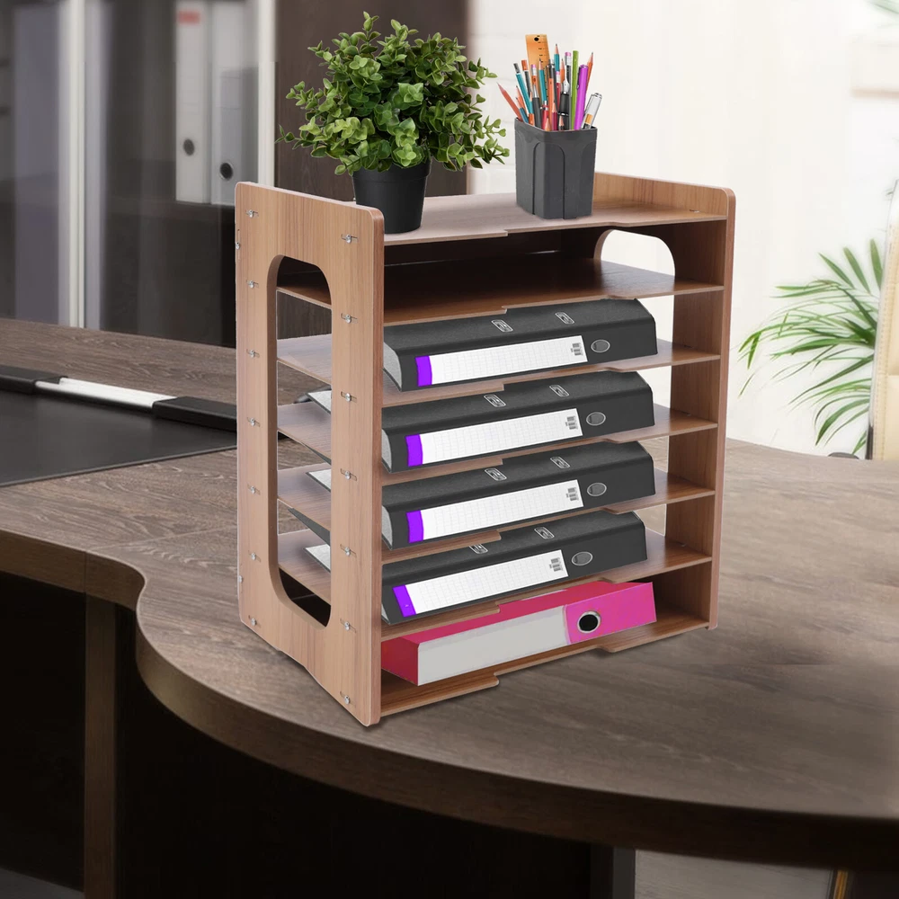 Wood Desktop Organizer Paper File Holder For Home & Office Document Storage Rack