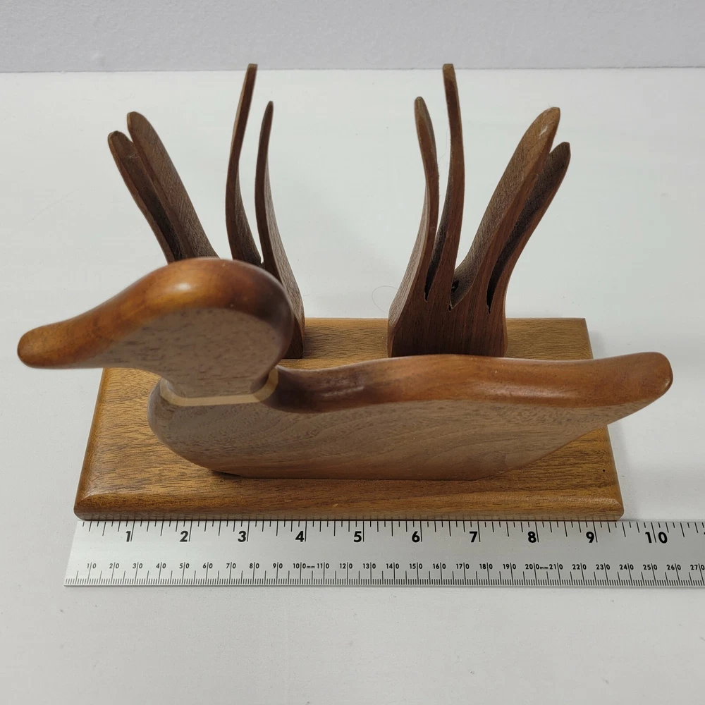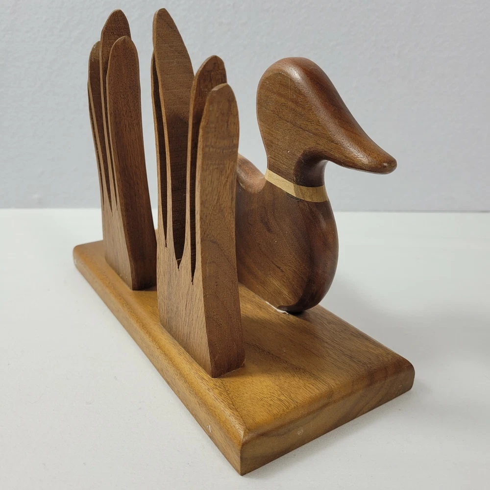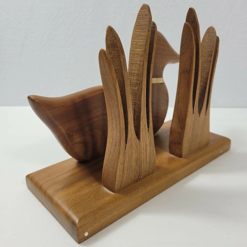 Wood Duck Napkin Holder Handmade Bulrushes Woodwright Colorado Cabin Rustic Add a touch of rustic charm to your dining table with this handmade napkin holder. Crafted from wood by a Colorado artisan, this holder features a unique design inspired by the spring season and the Wood Duck bird. The solid brown color and smooth finish make it a perfect addition to any table setting, while the hand wash only care instructions ensure its longevity. Ideal for Easter or Christmas occasions, this napkin holder is a great way to impress your guests and add a personal touch to your home decor. Its sturdy construction and high-quality materials make it a reliable choice for any napkin ring and holder collection. Bring a piece of the United States into your home with this beautiful piece. - All items are inspected before listing to ensure quality. All items are sold as-is. - Reasonable offers are always considered. - Previous washes on clothes may affect size! Please compare our provided measurements to your own garments to ensure accurate fitting. - Items are stored in a pet-friendly, smoke-free environment. Pre-owned clothes are cleaned to eBay standards. - Coupons cannot be combined with seller offers. - We can combine shipping for any number of orders, for no additional fees! Simply ask, and we will provide. - International sales are conducted through eBay's Global Shipping Program. We do not use International Standard Delivery. - Shipping rates are decided by USPS. We do our best to provide affording shipping within our abilities. - Buyer pays for all returns, unless otherwise stated. False returns will result in a formal report to eBay.