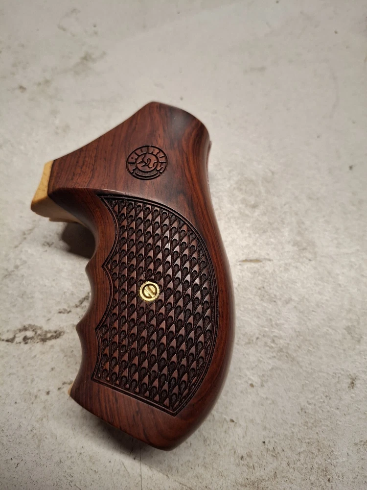 Enhance your Taurus Judge's handling and aesthetics with these exquisite wooden grips. Crafted with attention to detail, the grips feature a rich brown hue that not only adds a touch of elegance but also provides a secure and comfortable grip. Designed specifically for the Taurus Judge, these grips are a perfect fit, ensuring a seamless integration with your firearm. The grips are constructed from high-quality wood, offering both durability and a classic look that is sure to appeal to pistol enthusiasts. Whether you're headed to the range or out on a hunting trip, these grips are an excellent choice for those seeking to personalize their Taurus Judge while maintaining the gun's original integrity.