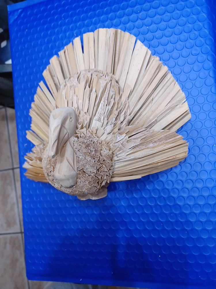 Add a touch of rustic charm to your Thanksgiving decor with this wooden turkey centerpiece. Made of high-quality wood, this 8.5x8.5x5" turkey figure features intricate detailing and a beautiful beige color that will complement any holiday theme. Perfect for collectors or anyone looking to add a unique, vintage-inspired piece to their holiday displays. Whether you're hosting a Thanksgiving dinner or just want to spruce up your home for the holiday season, this turkey figurine is sure to delight all who see it.