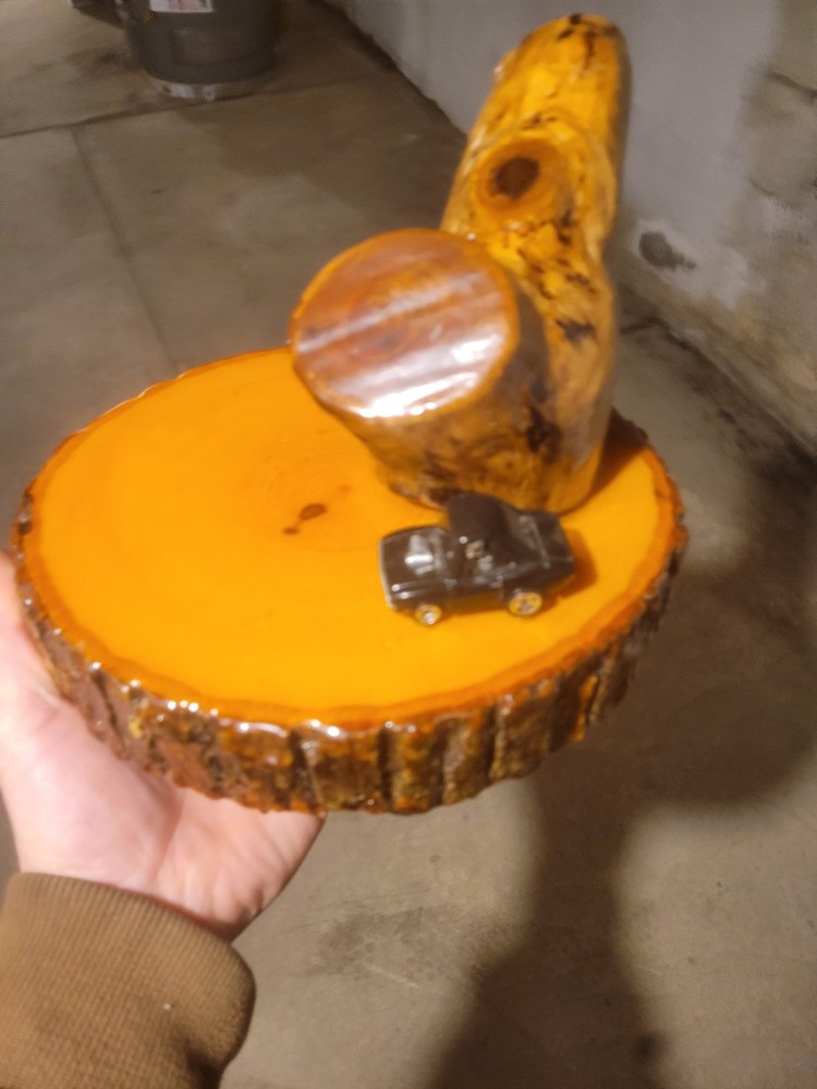 Wood Round Epoxy Resin Coating W/ Hot Wheels Car