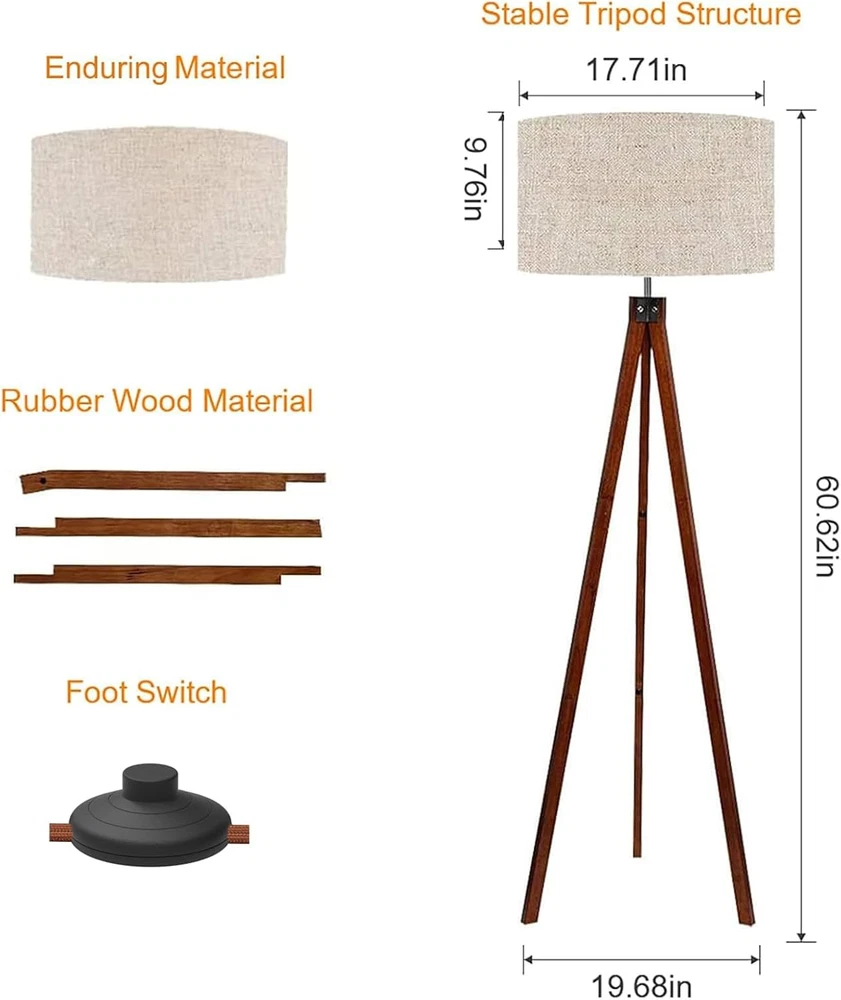 Store New Arrivals Add to Favorite View Feedback Contact Wood Tripod Floor Lamp, Mid Century Standing Lamp, Modern Design Studying Light for Living Room, Bedroom, Study Room and Office, Flaxen Lamp Shade with E26 Lamp Base Brown Description Light Source Type LED Item model number UF1101 Style Modern,Classic,Retro Number of Items 1 Power Source Corded Electric Pattern Solid Number of Light Sources 1 Is Electric Yes Batteries Included? No Lighting Method Uplight Lamp Type Floor Lamp Number of Pieces 1 Room Type Office, Living Room, Bedroom Finish Painted Product Dimensions 19"D x 19"W x 61"H Material Wood (for the base) and Linen lampshade) Installation Type Freestanding, Tabletop Finish Type Painted Specific Uses For Product Indoor use only Included Components Shade Indoor/Outdoor Usage Indoor Bulb Base E26 Water Resistance Level Not Water Resistant Batteries Required? No Item Weight 6.28 pounds Connectivity Technology USB Connectivity Protocol Homeplug Special Features Modern Design Special Feature Modern Design Part Number 004-WFLYN-03-FN Shade Color beige Mounting Type Floor Mount Color Brown Tripod Holder Is Discontinued By Manufacturer No Wattage 60 watts Is Cordless? No Base Material Wood Is Waterproof False Shape floor lamp Recommended Uses For Product Indoor use Shade Material Fabric Cable Length 10.6 Feet Switch Type Foot Premium Material: The lamp is integrated with premium Nature Rubber wood tripod, which is enduring, firm and aesthetic. It’s sturdy design makes it no shaking and safe to have around children and pets Stylish Design: LEPOWER wooden tripod lamp fits in modern architecture and decor. It has a unique stem with three wooden holders that makes the lamp stable enough. It’s rounded linen lamp shade looks gorgeous and modern in almost any room in your home or office Light Requirements: Light is not included in the package. With an E26 sized screw base, the light can be installed as desired. To get a better lighting effect, we suggest you using LED light 10 W-12 W, energy saving light 12 W-20 W, incandescent light 40 W-60 W (60 W MAX) ON/OFF Foot Switch: A foot switch conveniently located at the cord of the lamp shade for quick and easy use Tips: You need to assemble the legs of the floor lamp and the lamp shade by yourself. During assembly, please avoid dropping the lamp shade, and avoid violent assembly or violent pulling Product Description LEPOWER wooden floor lamp has a beautiful and classic shape design, which is not only a floor reading lamp, but also a modern decoration for your living room, bedroom and office The Standing Lamp with premium nature rubber wooden tripod and linen cloth, enduring, firm and aesthetic, brightens your living room, bedroom, study room, office, kids room, or college dorm! LEPOWER Wood Tripod Floor Lamp Features Standard E26 Screw Base To get a better lighting effect, we suggest you using LED light 10W-12W, energy saving light 12W-20W, incandescent light 40W-60W (60W MAX) Sturdy Tripod Legs Stops shaking and falling, so that it is sturdy and safe around children and pets. Simple Control This wooden floor tripod lamp is with convenient foot switch and easy to turn on or turn off the light. Assembly Reminder Tips: You need to assemble the legs of the floor lamp and the lamp shade by yourself. 1 Family 2 Reading 3 Illumination Floor Lamp Comparison Add to Cart Add to Cart Add to Cart Add to Cart Customer Reviews 4.5 out of 5 stars 145 4.5 out of 5 stars 1,815 4.5 out of 5 stars 2,649 4.2 out of 5 stars 86 Price $66.99 $ 66 . 99 $64.99 $ 64 . 99 $74.99 $ 74 . 99 $69.99 $ 69 . 99 Brightness Level 10 ✘ ✘ 0-100% Colors Temperature 6 colors (2700K-5700K) ✘ ✘ ✘ Height 70.1Inch 70.2Inch 60.6Inch 68.6Inch Lamp panel adjustment ✔ ✔ ✘ ✘ Applicable scene Living Room, Bedroom, Office Living Room, Bedroom, Office Living Room, Bedroom, Office Living Room, Bedroom, Office ABOUT US We offer the best prices around on high quality products. Our E-store includes media such as books, movies, music and games while offering electronics, toys, sporting apparel, clothing, tools, general home, garden items and more. SHIPPING We are always working hard to ensure your package arrives as soon as possible. Please understand that some factors like weather, high postal traffic, and the performance of shipping companies are outside of our control. We offer free shipping to the lower 48 states and ship within 2 business days of payment, usually sooner. We do not accept P.O. Boxes. Please provide a physical address. For shipping outside of the continental USA, we only use eBay's Global Shipping Program.The item is shipped to KY and then sent to the rest of the world. International customers are responsible for all duties and taxes. Continue to check out in order to calculate costs for shipping the item to your country. Messages regarding eBay's Global Shipping Program MUST be directed at eBay EXCLUSIVELY. RETURNS We offer a 30-Day Return Policy on items which you are not completely satisfied with. You have the option for a full-refund or an exchange of the item. No returns are available on items shipped outside of the USA. PAYMENT We accept PayPal. CONTACT US This page content is yet to come Please ad us to your favorite seller and visit again later Thank You CUSTOMER SATISFACTION We try our very best to make sure every customer is completely satisfied. If there's a problem, message us! We're happy to help. WE ACCEPT Copyright © 2021 AutoDS. | All Rights Reserved