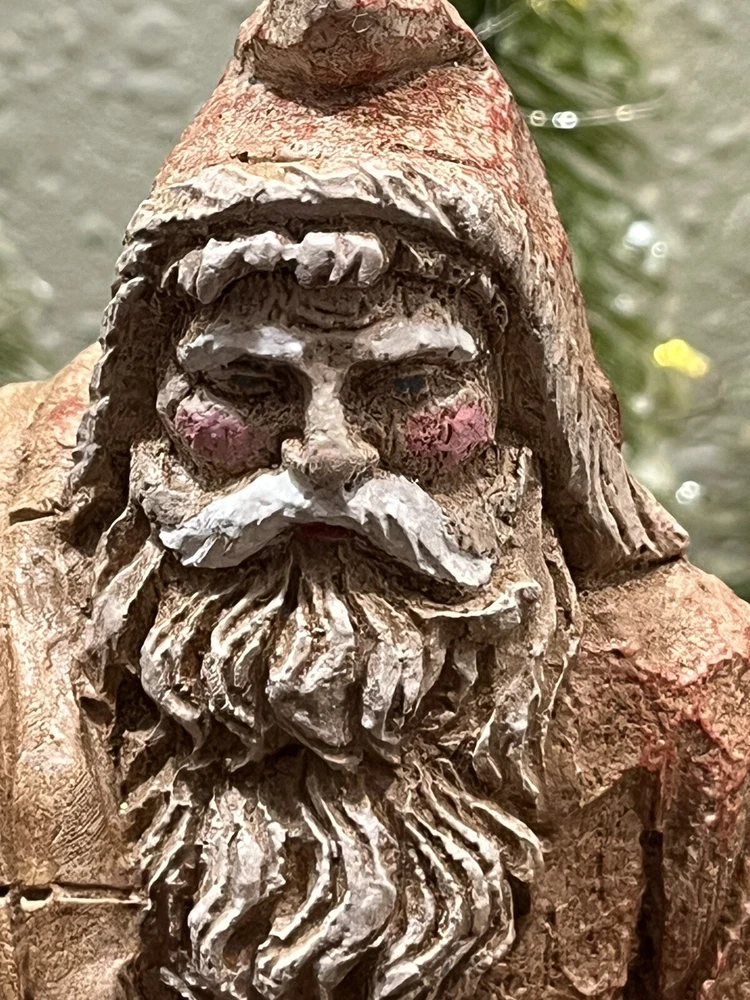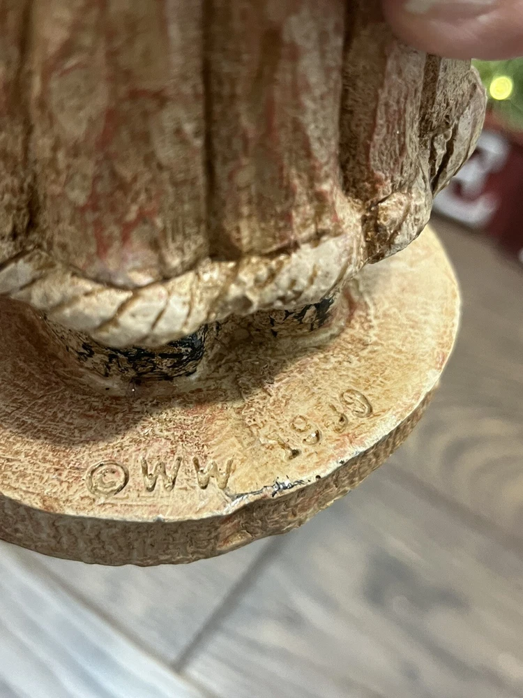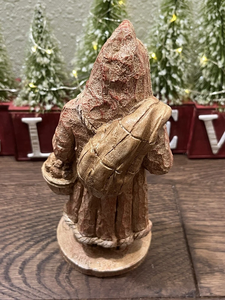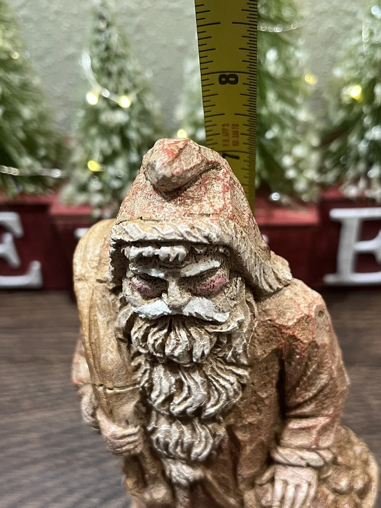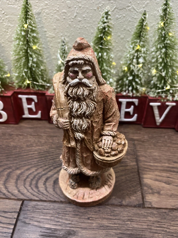 This collectible figurine from Wood World Inc. is a unique addition to any holiday decor. The figure depicts Santa Claus in an Old World Welsh costume, hand-painted with intricate details on a wooden base. Measuring 8 inches in height and 3-1/2 inches in width, it is a medium-sized piece that is perfect for display on a shelf or tabletop. The figurine is a limited edition item, part of the Old World Santa 1810 collection. It features an all-over multicolor pattern and is unboxed, ready to be displayed in any room of your home. Whether you're a collector or just looking for a special holiday decoration, this Santa Claus figurine is sure to impress. Preowned in good condition. This is a beautiful, highly detailed piece of art. Very heavy.