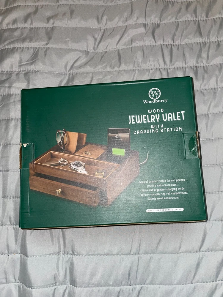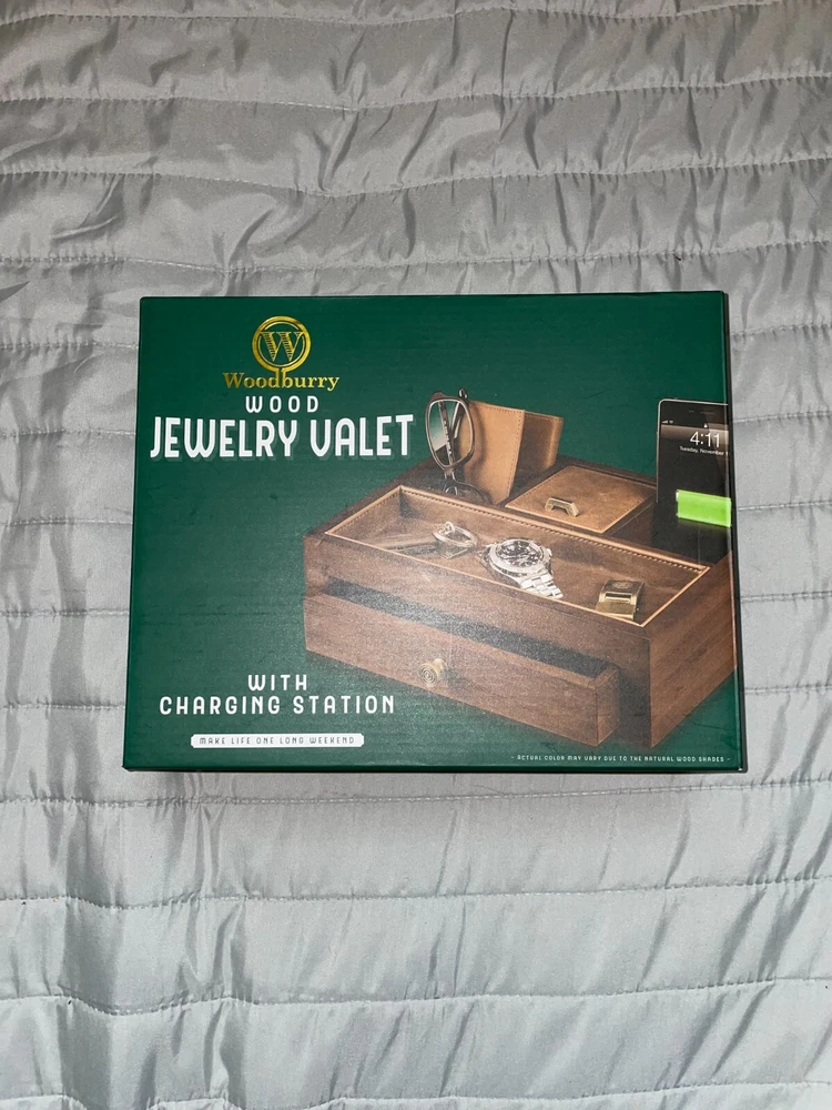 Woodbury Wood Jewelry Valet with Built-in Charging Station New In Box