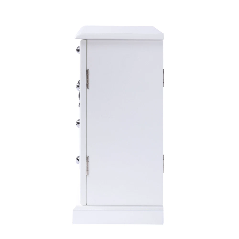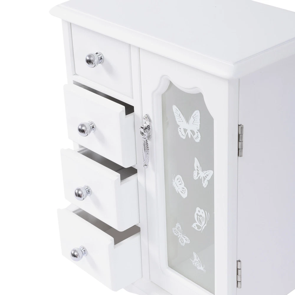 Wooden 4 Drawers Jewelry Box W/ Mirror Storage Organizer Drawers White For Women