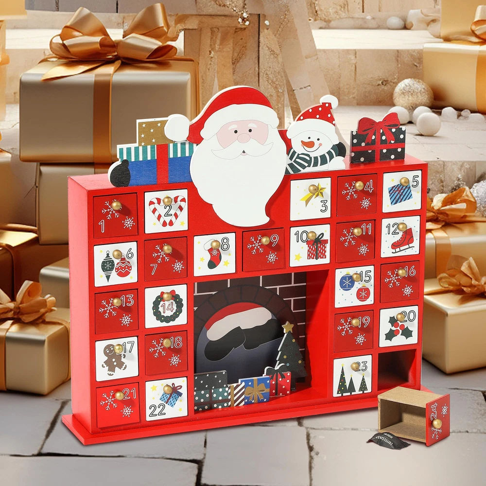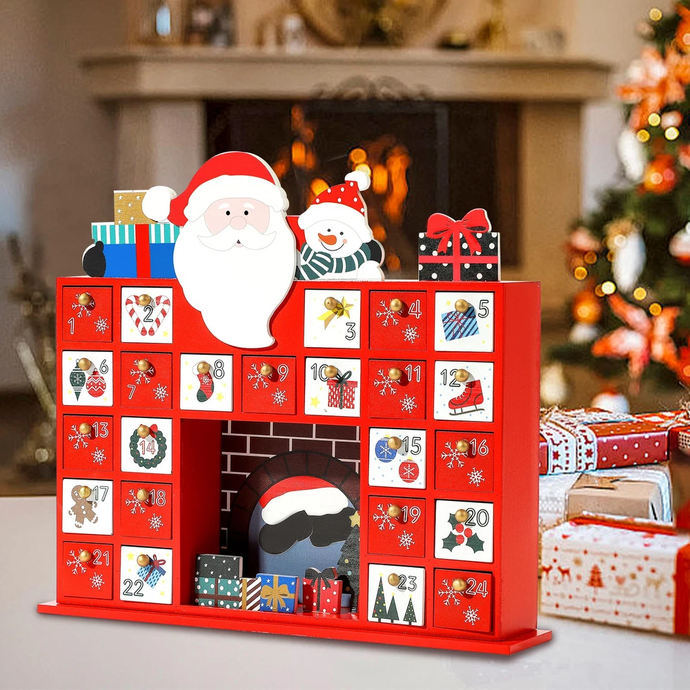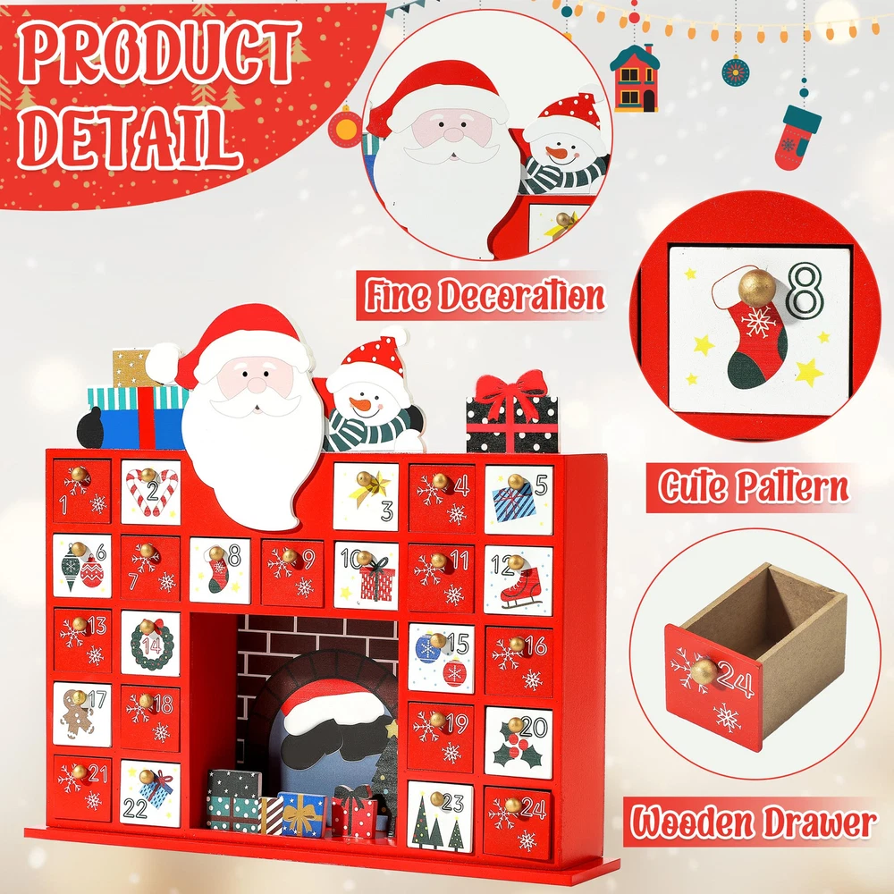 24 SURPRISE DRAWERS: With 24 drawers, this diy advent calendar is perfect for storing small gifts, chocolates, and sweets. Surprise your children or family with a little treat each day as Christmas approaches DURABLE WOOD CONSTRUCTION: Made from sturdy wood, this reusable advent calendar can be reused year after year. Advent calendar for kids's stable base ensures it stays beautifully on any surface, making advent calendar boxes a perfect addition to your living room or bedroom. Dimension: 15.55”×13.58”×3.34”, Drawer: 1.57”×1.49”×2.28” FIREPLACE EXTERIOR DESIGN: Advent calendar with drawers features a cozy fireplace designed with Santa Claus, snowmen, Christmas gifts, and trees, creating a warm, festive atmosphere HAPPY 24-DAY COUNTDOWN: Make counting down to Christmas a joyful experience! From December 1st to December 24th, look forward to family reunions with this empty advent calendar. Featuring clear numbers from 1 to 24 and charming Christmas elements like Santa Claus and Reindeer on the drawers, refillable advent calendar helps children enhance their number and color recognition skills IDEAL CHRISTMAS GIFT: Decorated with a classic Christmas theme, is a great addition to any room—whether it’s the living room, bedroom, study, or office. Kids advent calendars’s sure to attract attention and praise. And after Christmas, beauty advent calendar 2024’s perfect for storing small jewelry or accessories