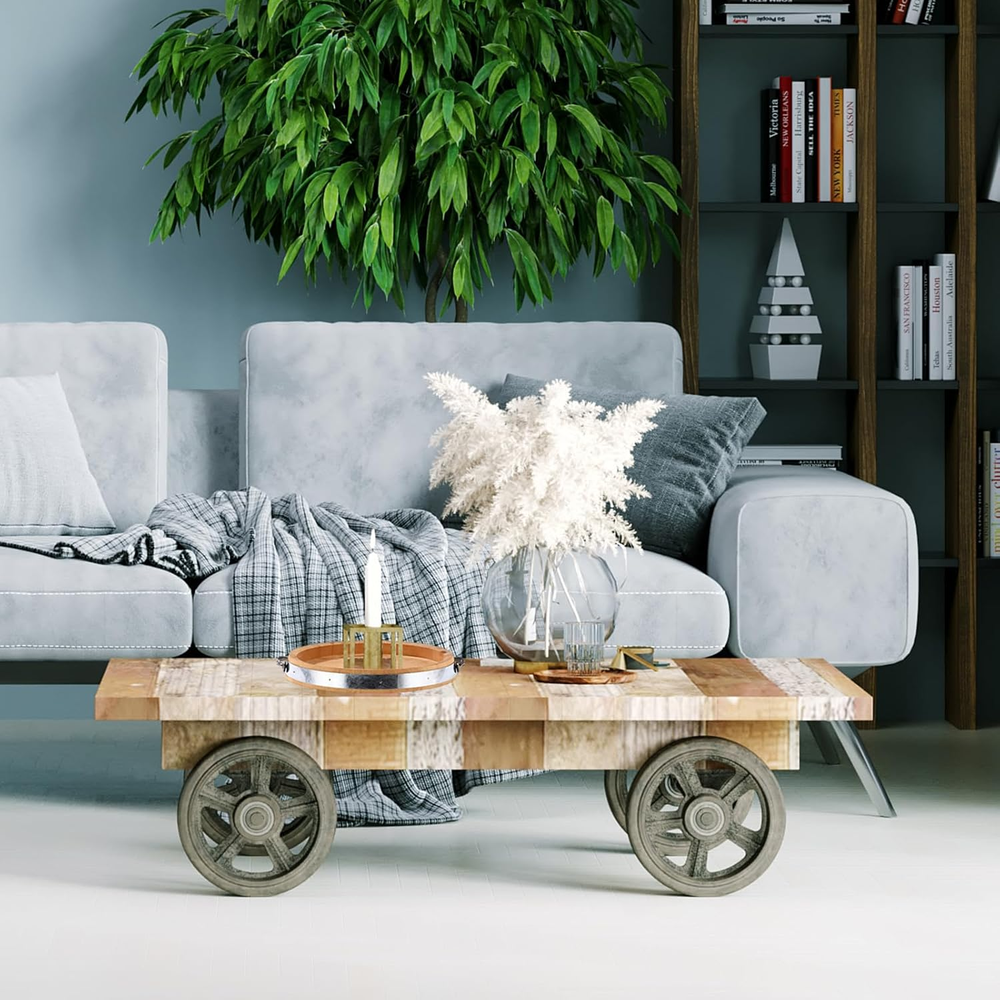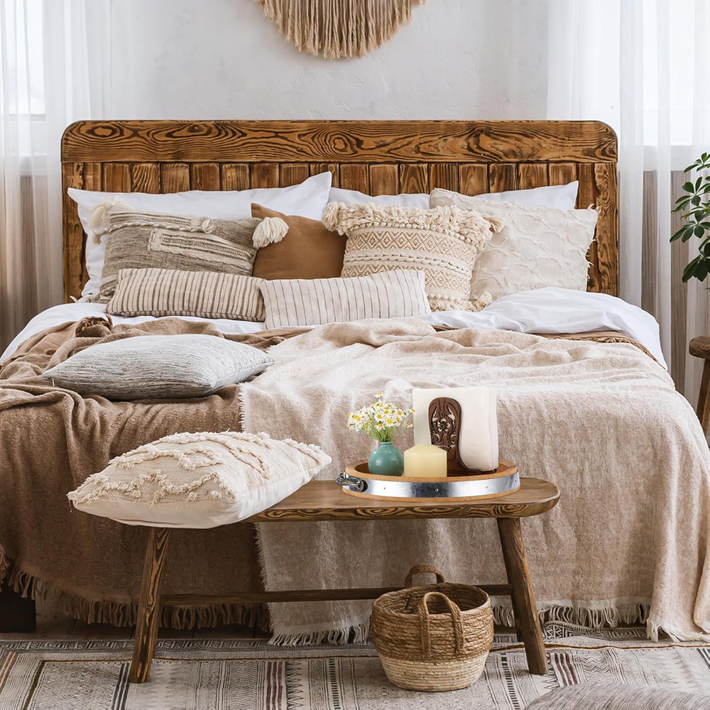Rustic Round Wood Tray Riser Farmhouse Pedestal Stand with Beaded Burlywood Finish