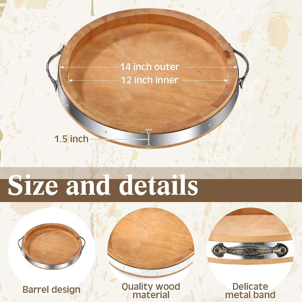 ✨Our Service Commitment At SeaBreezeBeauty, we honor the transaction you've chosen to make with us. Our promise is simple: to deliver the item you ordered within the quoted eBay delivery window or sooner. We pride ourselves on fulfilling our end of every agreement - delivering quality items as displayed when you clicked "Buy Now." Your satisfaction with our service and delivery is our priority. Questions? We're always here to help! Thank you for choosing SeaBreezeBeauty for your purchase. -------------------------------------> And now, for what you came here for... the item itself: Quality Material: experience the charm of our wooden serving tray, crafted from quality wood that is highlighted by a soothing brown color; This round wood tray is bound to make the table top look more inviting and welcoming Remarkable Features: melding form and function, our wooden decorative tray is adorned with a dark metal band, metal handles and natural wood that draws the eye; Thanks to its robust construction, it promises a longer life Our wooden barrel tray for table top boasts a generous 14 inch outer and 12 inch inner size, ensuring enough space to proudly display your serving items; The 1.5 inch height further ensures items stay put, making your serving easy Wide Application: use our round wood tray as an organizer for TV remotes or office supplies, a bathroom essentials tray, a table top centerpiece tray, or even a cocktail tray to enhance the style of your decor, proving utility alongside tasteful design Heartwarming Gift: our exquisite wooden serving tray makes an ideal gift for multiple occasions; Be it a birthday, wedding, Christmas, or housewarming; Our tray is sure to bring joy to your loved ones, encapsulating the warmth of your thoughtful gesture Features: This inclusion perfectly complements our wooden serving tray, making for an ensemble that effortlessly meets all your serving needs. This farmhouse serving tray features firm metal handles that ensure a secure grip, making it easy and safe for you to carry your delicacies from the kitchen to the dining table. Suitable for serving everything from appetizers to main courses. Specifications: Material: wood Color: brown Size: about 14 inches outer, 12 inches inner, 1.5 inches high Package includes: 1 x Wooden serving tray Notes: Manual measurement, please allow slight errors on size. The color may exist a slight difference due to different screen displays.