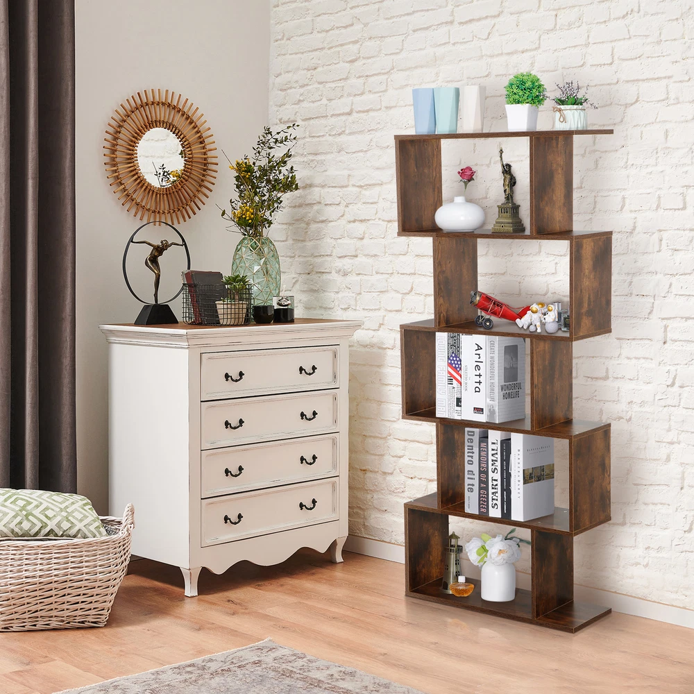Type: Bookcase Room: Living Room, Home Office/Study, Bedroom Additional Parts Required: No Item Width: 9.45'' Number of Shelves: 5 gtin13: 691303266899 Features: Heavy Duty UPC: 691303266899 Item Weight: 40.92lb Brand: Segawe Item Length: 27.56'' MPN: H01-3132@#sol Maximum Weight per Shelf: 33 LBs Assembly Required: Yes Item Height: 62.6'' Color: Rustic Brown