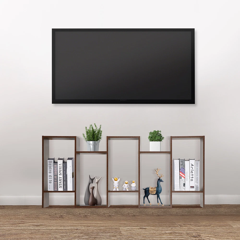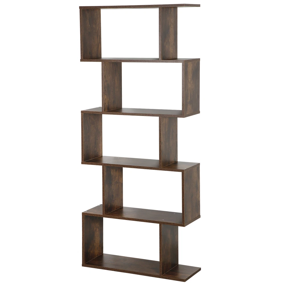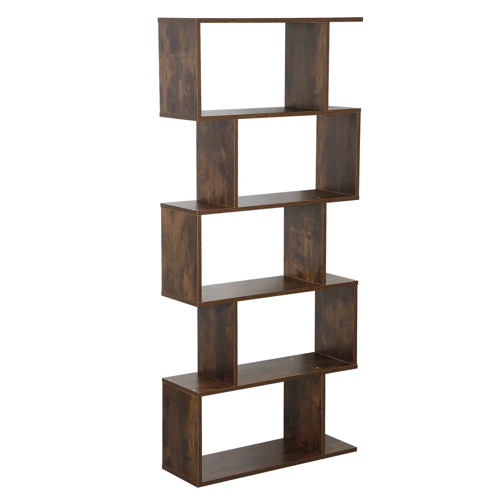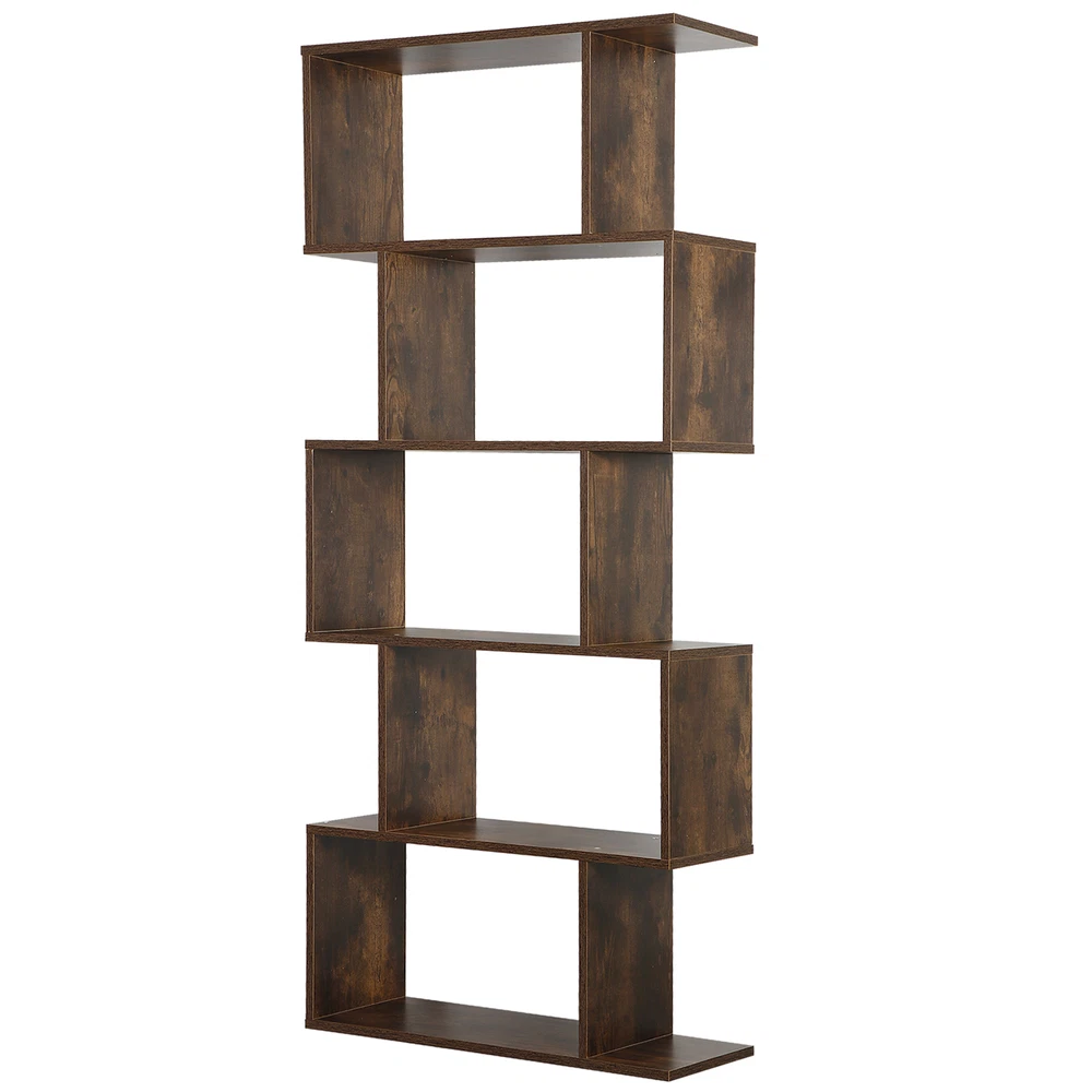 Wooden Bookshelf 5-tier Geometric Bookcase Tall Display Shelf Living Room Brown