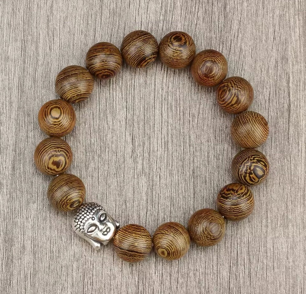 Wooden Buddha Head Prayer Bead Stretch Bracelet Charm Bangles