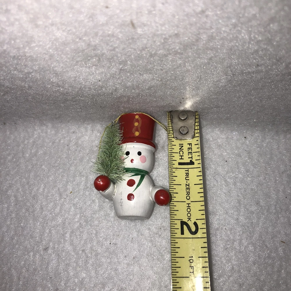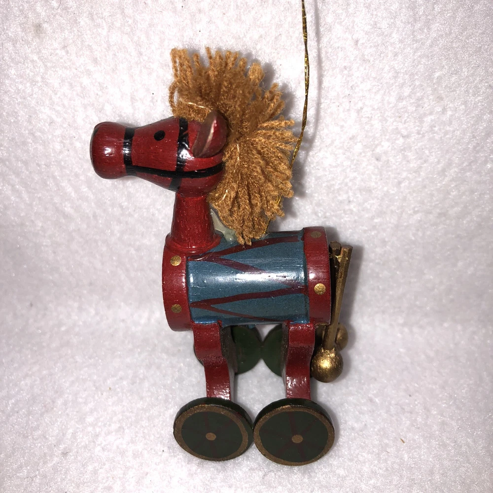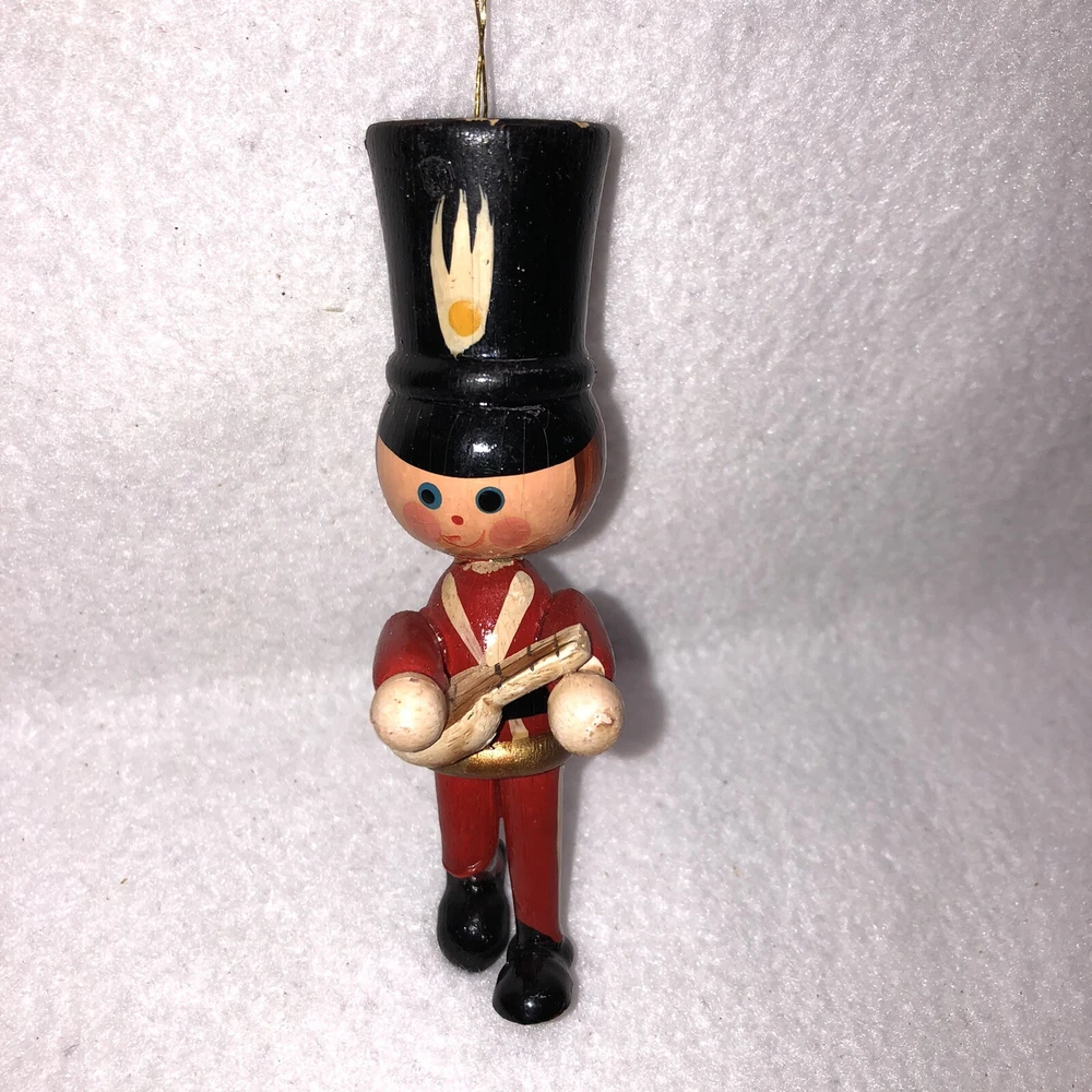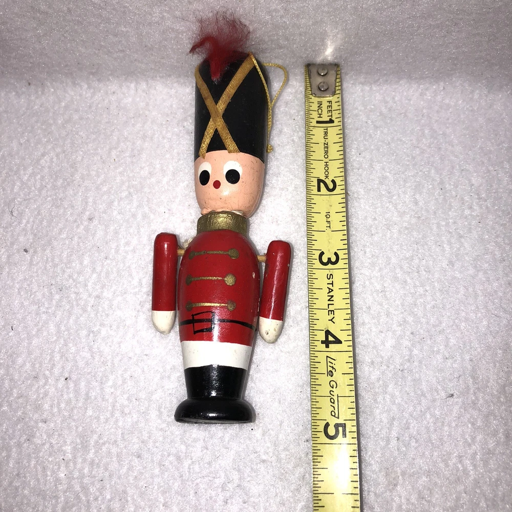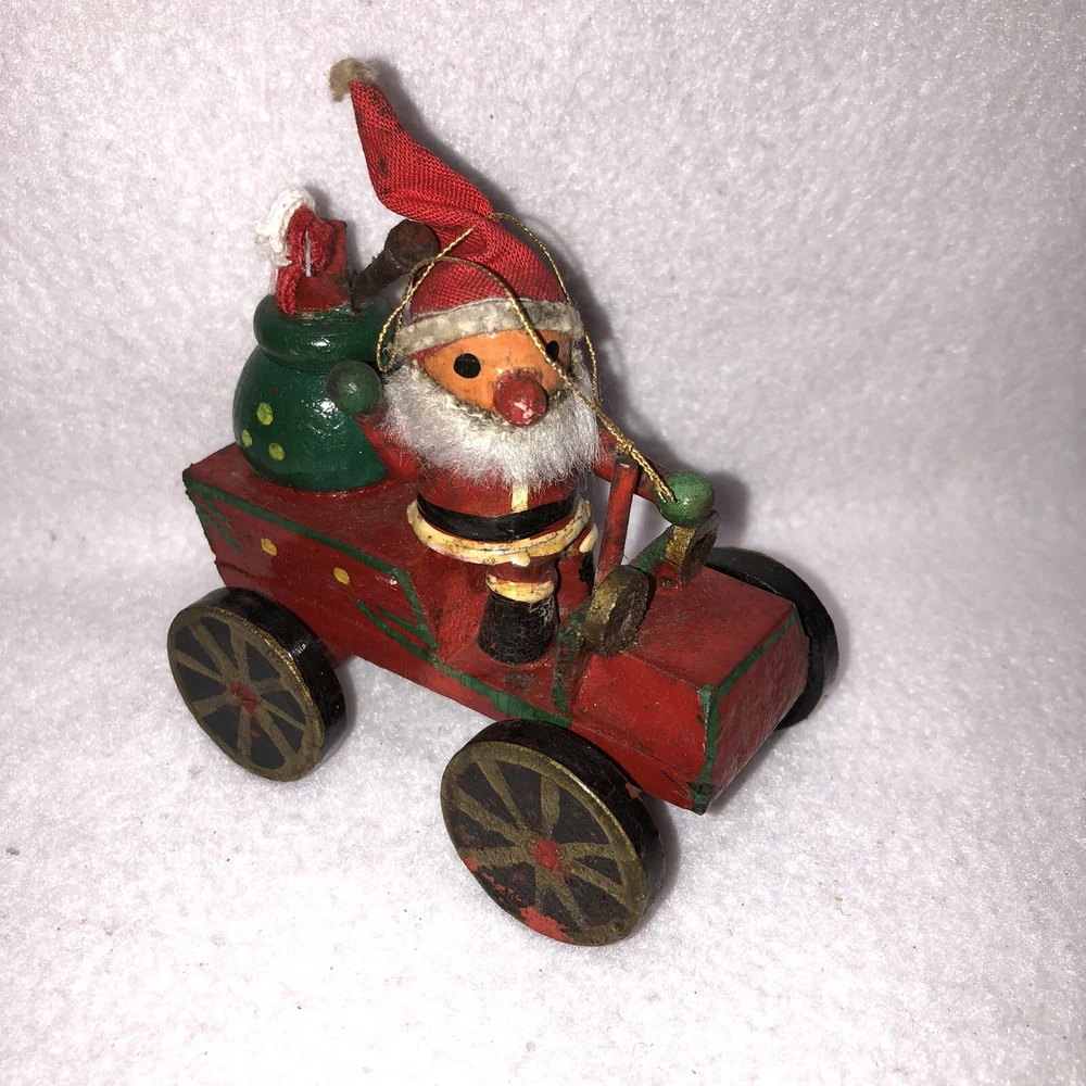 Mixed lot of 11 different Vintage Wooden Christmas Ornaments. There are 2 toy soldiers. The one holding the stringed instrument has a loose head and some paint loss at the base of his head. This is also the only ornament that does not stand on it's own. There is a clown balancing on an "F" block. There is a carmel colored hobby horse & a red & blue drum style horse with 2 mallets attached as a tail. There is a mini snowman holding a small brush tree & a white drum with pink & red stripes. There is an ornament that looks like a pine tree with a small Santa & egg shaped gift under it & a green stocking with an elf, present, tree & pipe cleaner style candy cane at the top. This is the only ornament that does NOT have a string attached for hanging. It does stand on it's own as a figurine or you can add a string to the candy cane. There is a red stocking that has a bear and gift in the top. It may be missing an attachment behind the gift. I am not sure. The last ornament is Santa driving an antique car. I believe it was intentionally made to have an antique appearance. They range in size from 1 1/2 in tall to about 4 3/4 in tall. Only the drum horse has a sticke. It simply says "MADE IN TAIWAN". Ornaments are in good vintage pre-owned condition. Do show sign of wear consistent with age & use. All have a small amount of paint loss. Please review and enlarge all photos for additional details, views & measurements. Shipped via USPS Ground Advantage.