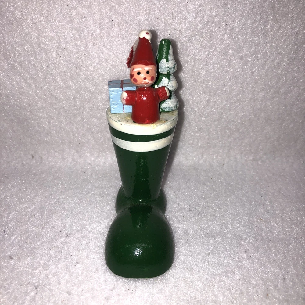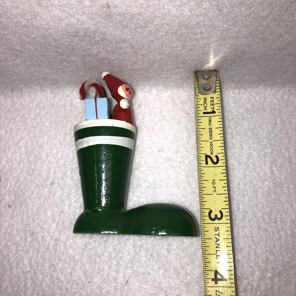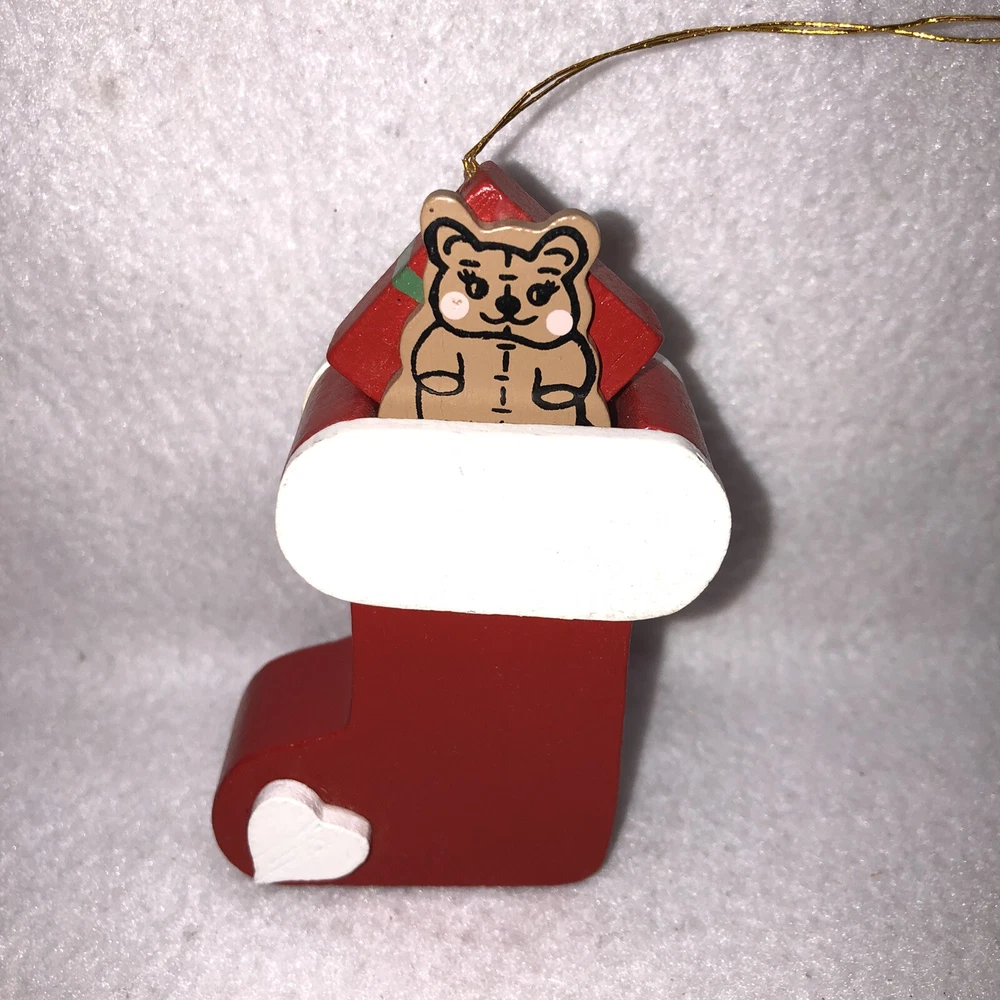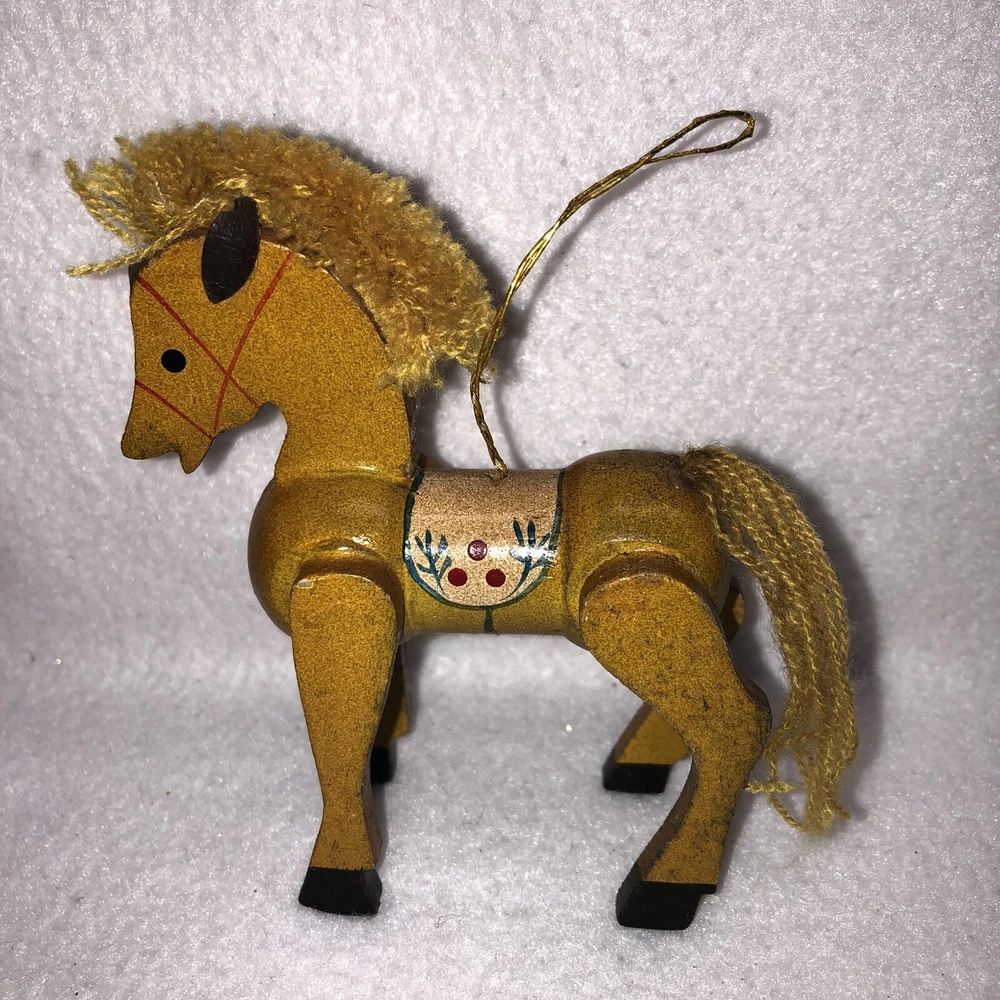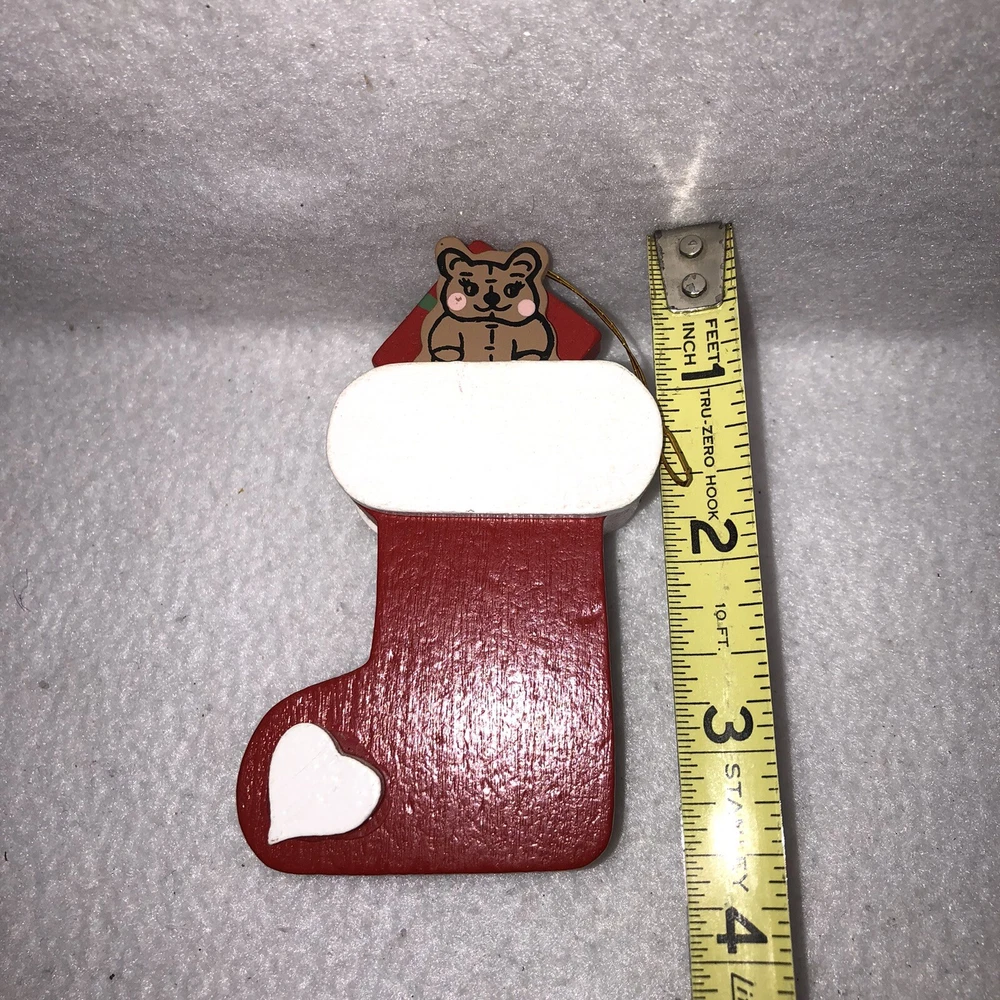 Mixed lot of 11 different Vintage Wooden Christmas Ornaments. There are 2 toy soldiers. The one holding the stringed instrument has a loose head and some paint loss at the base of his head. This is also the only ornament that does not stand on it's own. There is a clown balancing on an "F" block. There is a carmel colored hobby horse & a red & blue drum style horse with 2 mallets attached as a tail. There is a mini snowman holding a small brush tree & a white drum with pink & red stripes. There is an ornament that looks like a pine tree with a small Santa & egg shaped gift under it & a green stocking with an elf, present, tree & pipe cleaner style candy cane at the top. This is the only ornament that does NOT have a string attached for hanging. It does stand on it's own as a figurine or you can add a string to the candy cane. There is a red stocking that has a bear and gift in the top. It may be missing an attachment behind the gift. I am not sure. The last ornament is Santa driving an antique car. I believe it was intentionally made to have an antique appearance. They range in size from 1 1/2 in tall to about 4 3/4 in tall. Only the drum horse has a sticke. It simply says "MADE IN TAIWAN". Ornaments are in good vintage pre-owned condition. Do show sign of wear consistent with age & use. All have a small amount of paint loss. Please review and enlarge all photos for additional details, views & measurements. Shipped via USPS Ground Advantage.