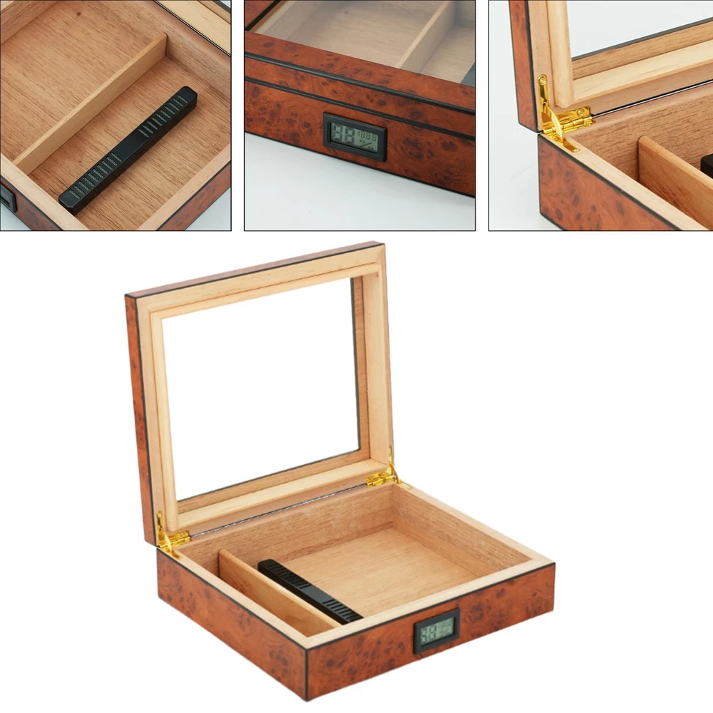 Store Home | Home & Garden | Musical Istruments & Gear | Toys & Hobbies | Sporting Goods | Health & Beauty | Consumer Electronics Wooden Cigaret Humidor High Transparent Travel Cedar Storage Box for Men Gifts Description: 【Humidity Control】: Equipped with a cigaret humidifier, this humidor can maintain an ideal humidity level of 65% to 75%, ensuring your cigaret stay fresh and prevent drying out 【Multi Function】: The interior features dividers for organized storage, accommodating cigaret of various sizes while maximizing space efficiency 【Wood Structure】: Made of quality wood, this humidor is not only but also adds a touch of elegance to the display of your cigaret collection 【Compact Design】: Measuring 26cmx22cmx6.8cm/10.24inchx8.66inchx2.68inch, this humidor can be conveniently placed in any space while providing ample storage capacity 【Complete Package】: Includes a cigaret humidor, making it the great gift for cigaret lovers Specification: Material: Wooden Size Chart: 26cmx22cmx6.8cm/10.24inchx8.66inchx2.68inch Package Includes: 1 Wooden Cigaret Humidor Note: 1. Please allow slightly error due to manual measurement. 2. Due to the difference between different monitors, the picture may not reflect the actual color of the item. 3. Wish you a wonderful on line shopping! Payment Shipping Returns If you are bidding or ordering more than one item, the items will be combined into one order automatically thus you can pay altogether. If you want not to combine, please buy one and immediately pay one separately. Please pay what you win in 7 days. Unpaid Dispute will be automatically open if payment is not received after 7 days. If you pay the bill after received unpaid dispute, please email us to close the unpaid dispute. Because the unpaid dispute will not be closed automatically, and we may ignore it. The buyer is responsible for any applicable import duties and local taxes. Please verify with your customs before making your purchase. Please verify your address during checkout. We are not responsible for any wrong or undeliverable addresses. We are committed to give you the best customer service possible. If for any reason you are unsatisfied with a purchase, please contact us and we'll assist you with a prompt solution. Please let us work on the issues. We'd like to settle any problem in a friendly manner. Please do not open a case on eBay or PayPal, or leave any negative or neutral feedbacks directly! We always reply to messages within 2 business days (off-duty at weekend). Due to the difference of time zone between Hong Kong and your location, sometimes the answer will be delayed. If you do not get a response from us after 2 business days, please check your junk or spam mailbox. Unsatisfied product can be returned within 30 days from the delivery date . We can offer a full refund or exchange, but we are not responsible for return shipping cost. Please contact us to get a RMA number before sending out your return. Feedback: 1. Since your feedback is very important to our business's development, we sincerely invite you to leave positive feedback with four 5-Detailed Selling Rating (DSR) to us basing on your satisfaction with our commodity and service. It's just take you 1 minute. 2. Unfortunately, If you are planning to give us a neutral/negative feedback because of your bad buying experience with us, please contact us at any time so as to clear up your discontent and resolve the problem. Featured Products People always bought together with