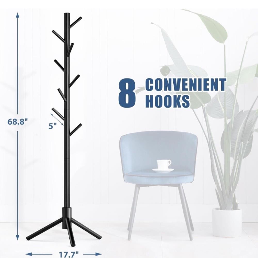 This wooden coat rack stand is perfect for keeping your coats, hats, scarves, jackets, backpacks, bags, and umbrellas organized and in one place. With its free-standing design, it can easily be placed in any room of your home and has a capacity of 8 hooks. The rack is made from beech solid wood and features a painted finish, making it a contemporary and stylish addition to your home decor. The coat rack stand is sturdy, durable, and can support a variety of items, making it a versatile addition to your home organization. It is suitable for kids, teens, adults, and babies heights because it is adjustable. The rack is 69 inches high and has a branch hook style, making it easy to hang and organize your items.