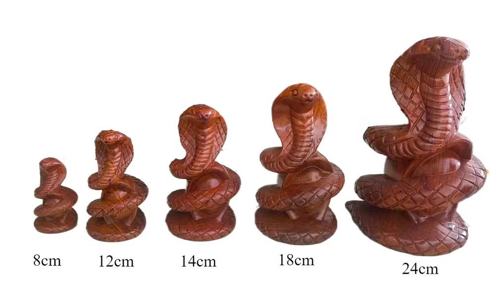 Attractive Aesthetic The golden color of the cobra figurine adds an attractive aesthetic to your space, creating a focal point that draws attention. Perfect Gift With its symbolic significance, this figurine makes an excellent gift for friends, family, or colleagues during special occasions. Versatile Decoration Ideal for home decoration, this figurine can be placed in living rooms, Buddha halls, or as a standalone piece to enhance the aesthetic appeal. Unique Design The Lucky Snake Symbol of the Year Figurine features a golden wood cobra, a unique design that adds a touch of elegance to any room. Quality Material Crafted from high-quality materials, the figurine ensures durability and longevity, making it a worthwhile investment for collectors and enthusiasts. Size: 8cm 12cm 14cm 18cm 24cm , you can choose it you like