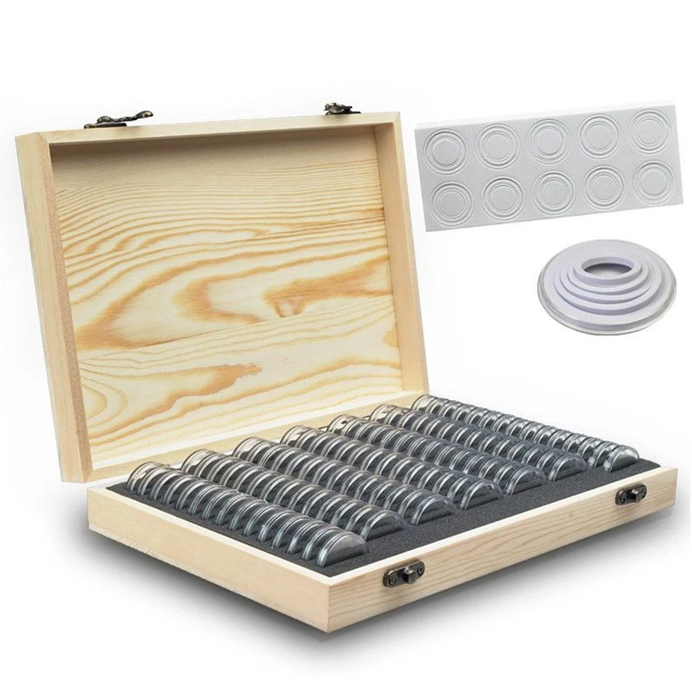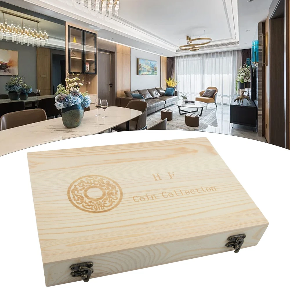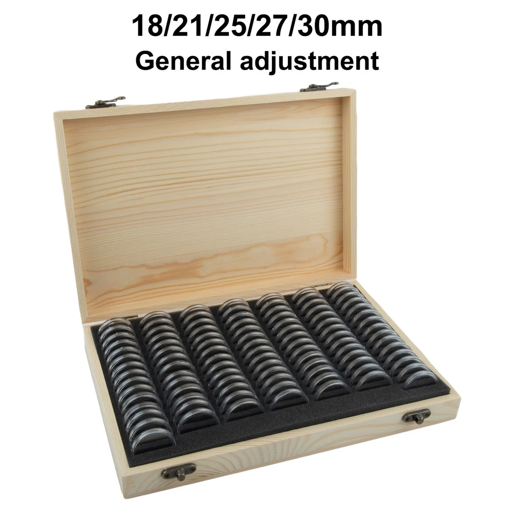 Wooden Coin Storage Box Holds 30 50 or 100 Coins Antioxidative Solid Collection Case