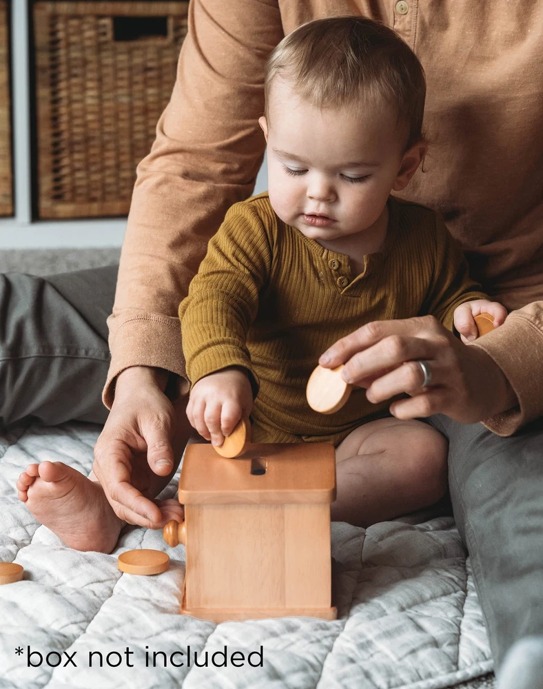 Wooden Coins for Montessori Object Permanence Coin Box - Chunky Wood Replacement Coin Set - Wooden Tokens for Counting - Montessori Toys for 1 Year Old - Infant Developmental Coin Drop Toys SET OF 6 WOODEN COINS - Set includes 6 chunky wooden coins that can be used in addition to or as a replacement for object permanence coin box coins. Perfect for counting, stacking, and other open-ended play. EARLY DEVELOPMENTAL SKILLS - This set of wooden coins helps with developing a number of critical early age skills including: counting, pincer grasp, hand-eye coordination, and fine motor control. DESIGNED FOR SAFETY - The chunky coins in this set are purposefully designed to be 1.8” in diameter and 0.32” in thickness to ensure they do not pose a choking hazard. Each coin is made from natural hardwood and finished with a non-toxic, kid-friendly, clear coat. EASY HANDLING - Each coin in this set is carefully crafted to ensure a smooth, rounded finish that is safe for babies and toddlers alike! These chunky coins are perfectly sized for easy finger and hand gripping. SET OF 6 WOODEN COINS - Set includes 6 chunky wooden coins that can be used in addition to or as a replacement for object permanence coin box coins. Perfect for counting, stacking, and other open-ended play. EARLY DEVELOPMENTAL SKILLS - This set of wooden coins helps with developing a number of critical early age skills including: counting, pincer grasp, hand-eye coordination, and fine motor control. DESIGNED FOR SAFETY - The chunky coins in this set are purposefully designed to be 1.8” in diameter and 0.32” in thickness to ensure they do not pose a choking hazard. Each coin is made from natural hardwood and finished with a non-toxic, kid-friendly, clear coat. EASY HANDLING - Each coin in this set is carefully crafted to ensure a smooth, rounded finish that is safe for babies and toddlers alike! These chunky coins are perfectly sized for easy finger and hand gripping. Shipping from the USA All of our products are shipped from the USA, ensuring quick delivery to your destination. Payment We offer the following payment methods: PayPal, credit card, bank transfer, and eBay's secure payment system. Free Shipping & Free Returns Shipping within the USA is FREE. Additionally, any return is absolutely free for you. Risk-Free Purchase You have the option to return an item within 30 days without any justification. We cover the return shipping costs! Fast Shipping We ship immediately upon receipt of payment. Generally, the package is delivered within 2-3 days in the USA. If it takes longer, we will contact you. Quality and Costs Made in Europe, USA, China No customs fees or additional charges Total satisfaction guarantee Invoice with declared VAT available upon request in .pdf format Feedback Your feedback is very important to us. After you pay for your purchase, you will automatically receive positive feedback from us.