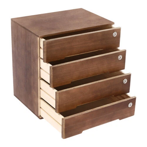 Desk Organizer with Drawers Wooden Desktop Storage Cabinet Storage Box, 4 Drawer