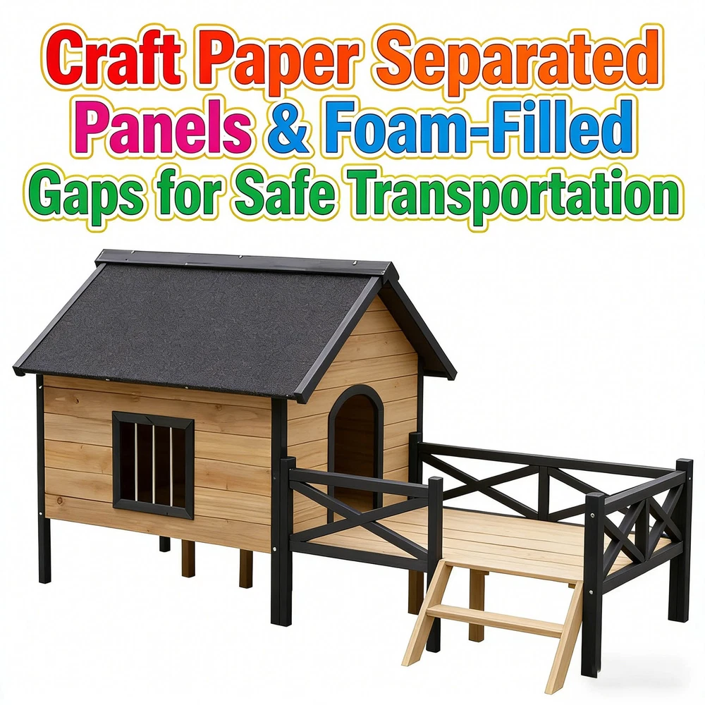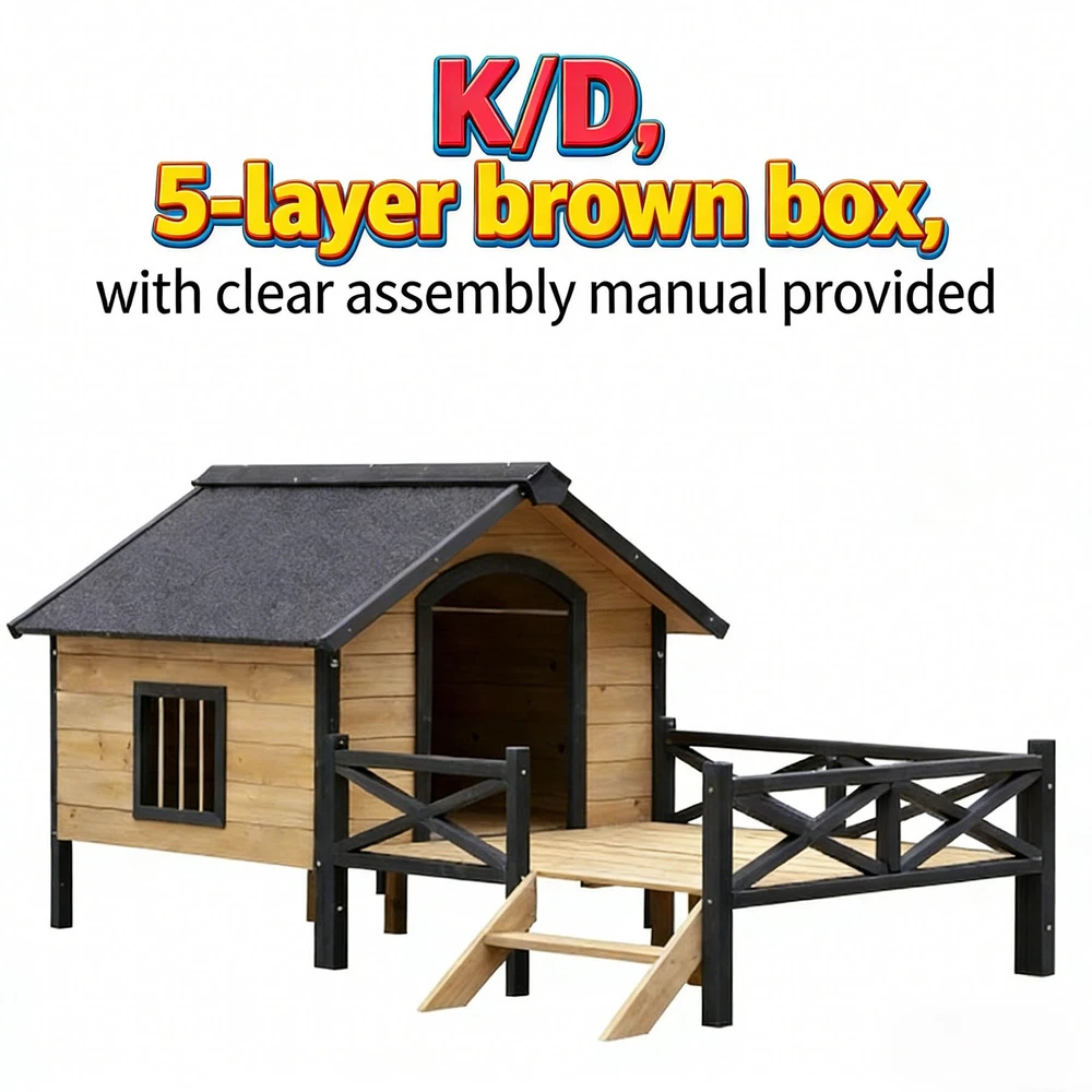Outdoor Large Wooden Cabin Dog Kennel with Porch - Honey Color Give your furry friend a cozy and durable outdoor retreat with our Large Wooden Cabin Style Dog Kennel! Crafted with high-quality materials and designed for both comfort and longevity, this dog kennel is the perfect home for your beloved pet to relax and enjoy the outdoors. Key Specifications Product Dimensions (Assembled): 66.92" L x 43.30" W x 32.67" H | Weight: 48.00 LBS Packaging Dimensions: 40.15" L x 34.25" W x 8.85" H | Weight: 50.70 LBS Origin: China | Color: Honey | Material: Premium Fir Wood & Metal Filling Material: Foam (for safe transportation) Premium Quality & Durable Construction Made of high-quality fir wood with metal wire, this dog kennel features kiln-dry treatment to prevent warping and cracking, ensuring long-term use. The water-proof paint coating effectively resists rain, sun, and other outdoor elements, keeping the kennel dry and durable in various weather conditions. Easy Assembly & Safe Transportation This dog kennel comes in K/D (Knock-Down) structure with a 5-layer brown box packaging. We use craft paper to separate each panel to avoid scratches and fill gaps with foam for maximum protection during transportation. A clear graphic assembly guide and all necessary hardware are included – only a screwdriver is needed for easy assembly , no additional tools required! Product Highlights Cabin-style design with a porch, providing extra space for your dog to rest and observe the surroundings Kiln-dried wood & water-proof paint for outdoor durability High-quality fir wood construction with metal wire for security and ventilation Scratch-proof panel separation & foam-filled packaging for safe delivery No tools needed except a screwdriver, easy to assemble with graphic guide Warranty & Return Policy 1-Year Quality Warranty: We stand behind the quality of our product. Enjoy a 1-year warranty against manufacturing defects. 30-Day Free Return & Exchange: If you are not completely satisfied with the product, you can return or exchange it for free within 30 days of receipt (no-hassle process). Treat your dog to a comfortable and stylish outdoor home! Add to cart now and enjoy peace of mind with our quality guarantee and flexible return policy.