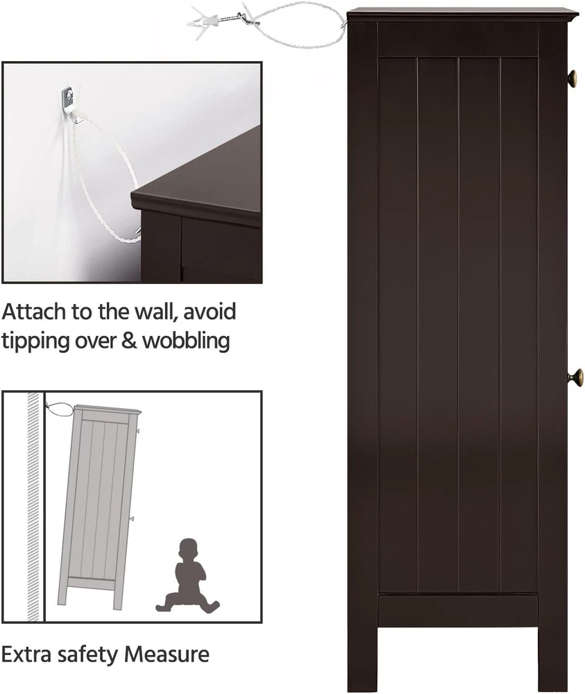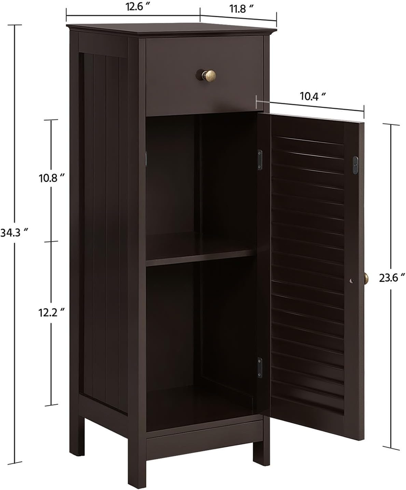 Store New Arrivals Add to Favorite View Feedback Contact Bathroom Floor Storage Cabinet, Wooden Free-Standing Storage Organizer Unit with Drawer and Door Cabinet, Tall Side Table for Home Decor, 34.5 in H, Espresso Description Country of Origin China Top Material Type Wood Department Unisex Adult Number of Racks 2 Number of Pieces 1 Room Type Bathroom Number of Compartments 2 Assembly Required Yes Installation Type Freestanding Number of Doors 1 Number of Drawers 1 Frame Material Wood Material Wood Style Modern Finish Type Painted Included Components Shelves Door Style Shaker, Shaker Item Weight 16.71 pounds Number of Shelves 2 Special Feature Adjustable Shelf Weight Limit 5 Kilograms Mounting Type Freestanding Color Espresso Shape Rectangular Base Type Legs Back Material Type Engineered Wood Recommended Uses For Product Towels Product Dimensions 12"D x 13"W x 34.5"H Size Large Modern Design: Stylish and fashionable design seamlessly complements any room décor and also adds a touch of elegant charm to your room Large Storage Space: The cabinet comes with large storage space, which will keep everything in order; one shutter door and one drawer design can help you classify your items better. You can put a variety of toiletries, cosmetics, and other sundries Multi-purpose Use: This bathroom cabinet is not only used as bathroom cabinet but also can be used as side cabinet and cupboard, very practical Waterproof Finish: The high-quality MDF wooden material can stand the humidity of the bathroom and prevents moisture Safety Is Priority: Crafted from CARB P2-compliant MDF, the bathroom storage cabinet features an anti-tip kit for improved safety. Plus, built-in drawer anti-slip device prevents the drawer from sliding out and falling automatically Product Description Wooden Bathroom Floor Cabinet, Free-Standing Storage Organizer Unit, Console Sofa Side Table for Living Room/Hallway/Kitchen This bathroom storage cabinet is made of high quality material, sturdy and durable to use and waterproof. The cabinet features 2 shelves design, which provides enough space for your hand sanitizer, paper towel, books and other stuff. The drawer in the higher part is for your additional small stuff, and the shutter door can protect your essentials from dust and water. High Quality We apply a waterproof and moisture-proof coating process to the surface, making it resistant to moisture and easy to clean. Bathroom Floor Storage Cabinet High Quality Material: our bathroom storage cabinet is made of high quality MDF material, sturdy and durable to use and not easy to break Modern Design: stylish and fashionable design perfectly compatible seamlessly with any room décor and also adds a touch of elegant charm to your room Versatile & Practical: compact size and practical function make it suitable for bathroom, hallway or kitchen Dimension: 12.6 x 11.8 x 34.3’’ (LxWxH) Max. Weight Capacity: Cabinet top: 26.5 lb; Each drawer: 11 lb; Layer board: 17.6 lb G.W.: 19 Lb Made of high quality P2 grade MDF board, harmless and suitable for long-term use. The bathroom cabinet can be connected to the wall for safer use. Magnetic self-locking device can sure the open and close easily, protect storage items. 4 fixed parts in the back are connected tightly, which provides solid stability. Ideal for Bathroom, Hallway and Living Room ABOUT US We offer the best prices around on high quality products. Our E-store includes media such as books, movies, music and games while offering electronics, toys, sporting apparel, clothing, tools, general home, garden items and more. SHIPPING We are always working hard to ensure your package arrives as soon as possible. Please understand that some factors like weather, high postal traffic, and the performance of shipping companies are outside of our control. We offer free shipping to the lower 48 states and ship within 2 business days of payment, usually sooner. We do not accept P.O. Boxes. Please provide a physical address. For shipping outside of the continental USA, we only use eBay's Global Shipping Program.The item is shipped to KY and then sent to the rest of the world. International customers are responsible for all duties and taxes. Continue to check out in order to calculate costs for shipping the item to your country. Messages regarding eBay's Global Shipping Program MUST be directed at eBay EXCLUSIVELY. RETURNS We offer a 30-Day Return Policy on items which you are not completely satisfied with. You have the option for a full-refund or an exchange of the item. No returns are available on items shipped outside of the USA. PAYMENT We accept PayPal. CONTACT US This page content is yet to come Please ad us to your favorite seller and visit again later Thank You CUSTOMER SATISFACTION We try our very best to make sure every customer is completely satisfied. If there's a problem, message us! We're happy to help. WE ACCEPT Copyright © 2021 AutoDS. | All Rights Reserved