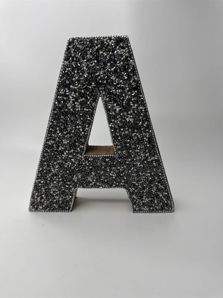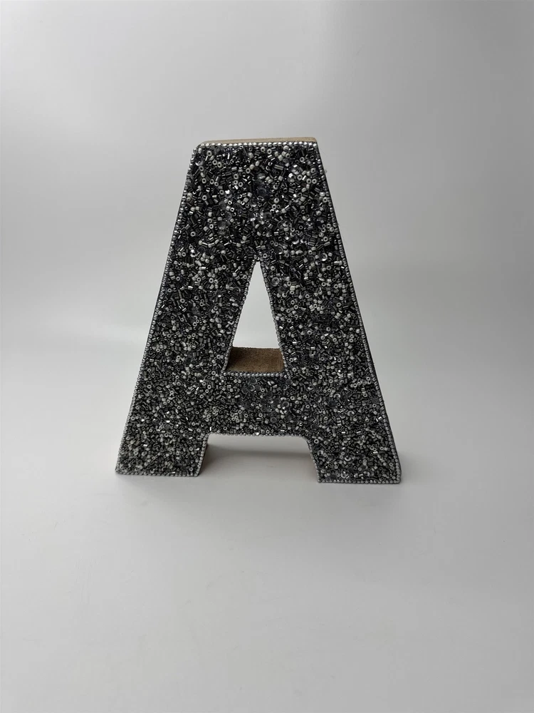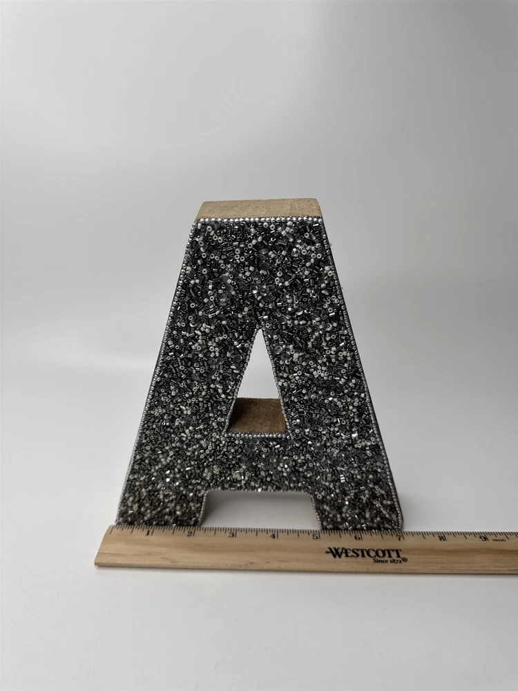 Wooden Hanging Wall Decor Letter "A" Initial Grey Sparkling Metallic Beads