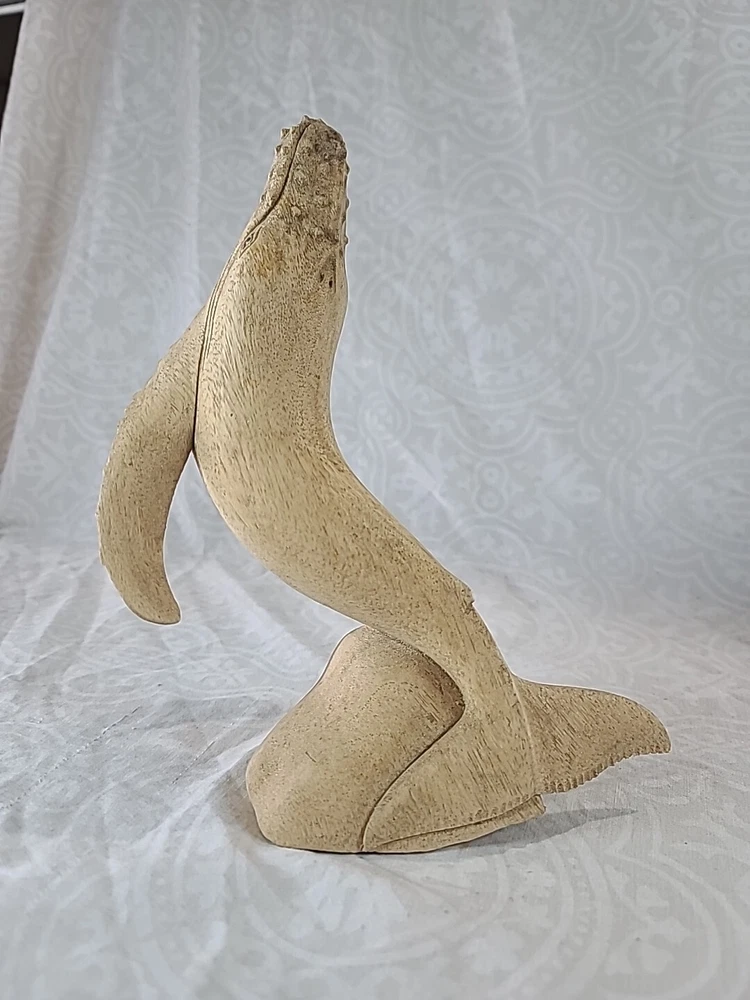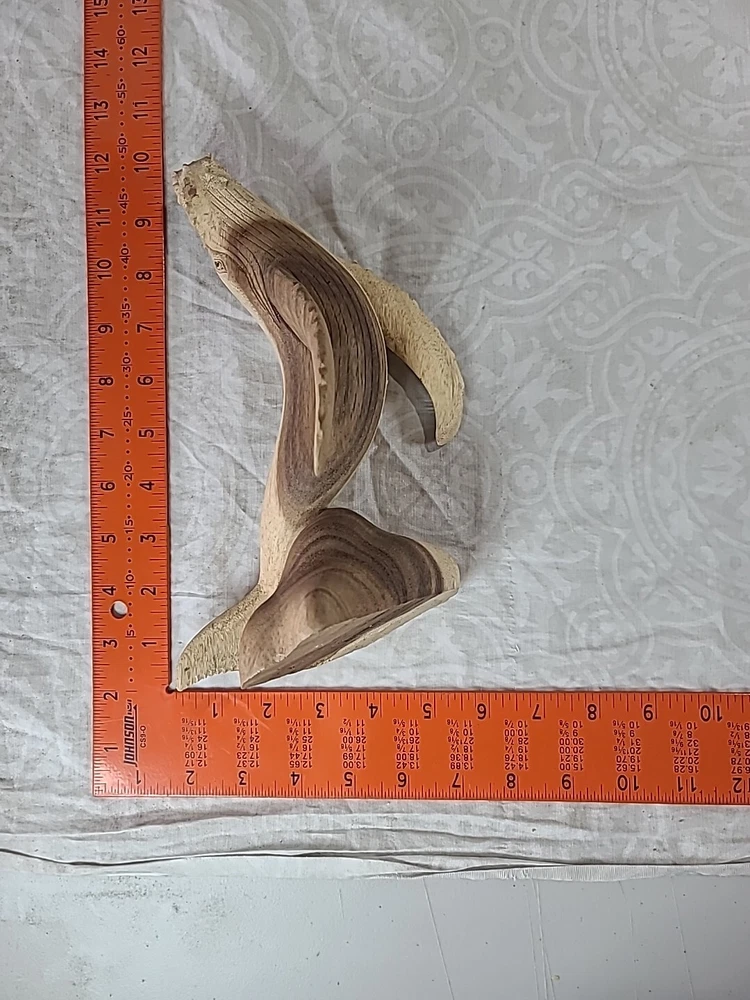 "11×6" inches approximately This beautifully crafted handmade figurine is a stunning piece of art from Indonesia. The sculpture features a majestic mother whale and baby, intricately carved from a single piece of wood. The brown color of the whale and the intricate carvings make it a perfect addition to any home decor. This is a must-have for collectors of figurines and sculptures alike.