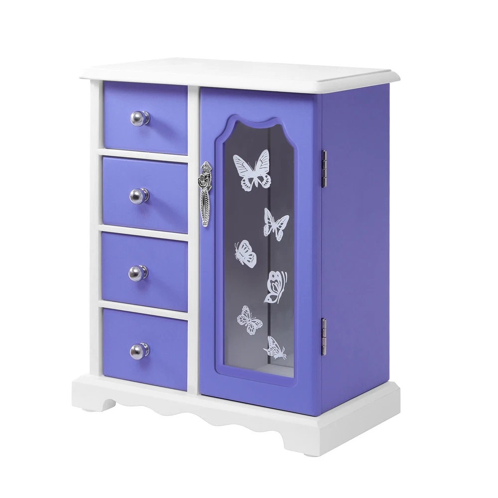 Specification Style: Simple, Modern Material: Mdf, Glass Color: Purple Process: Odorless Paint Number of Drawers: 4 Product Size: 23*13*28.5cm/9*5*11.2in Package Size: 29*18*34cm/11.42*7.09*13.38in Net Weight: 2kg/4.41lbs Gross Weight: 2.4kg/5.29lbs Package Included 1* Jewelry Box Wooden Jewelry Box Butterfly Jewelry Storage CabinetOrganizer & 4 Drawers Mirror Welcom to yybshop06 Description This Jewelry Box Will Keep Your Dresser Organized and save Time Searching for Jewelry. with Its Creative Design and Beautiful Butterfly Pattern, It Will Add a Touch of Character to Your Home. Specification Style: Simple, Modern Material: Mdf, Glass Color: Purple Process: Odorless Paint Number of Drawers: 4 Product Size: 23*13*28.5cm/9*5*11.2in Package Size: 29*18*34cm/11.42*7.09*13.38in Net Weight: 2kg/4.41lbs Gross Weight: 2.4kg/5.29lbs Package Included 1* Jewelry Box Key Features Excellent Material: This Jewelry Box Is Made of High-quality Mdf, Which Is Natural, Renewable, Anti-wear, Rust-resistant, and Has a Long Service Life. Beautiful Appearance : the Creative Look, Butterfly Pattern, Double Door Design, and Purple Color of the Jewelry Box Make It Beautiful and Suitable in Any Setting. Dust-proof and Highly Transparent Glass: This Jewelry Box Has Highly Transparent Glass. the Glass Is Not Only Dust-proof but Also Provides an Unobstructed View of the Interior Which Can Keep the Inside Clean and Help You Quickly Find the Jewelry You Want. 360° Rotatable Hook: This Jewelry Box Has a 360° Rotatable Hook, Which Can Be Freely Rotated for Easy Access to Necklaces and Bracelets. Large Capacity Storage: This Jewelry Box Has a Ring and Earring Area, a Hanging Area Behind the Door, and 4 Drawers. Earrings, Necklaces, Bracelets, Rings, Watches, Lipsticks, Etc. Can All Be Put into This One Organizer, Which Can Meet Your Various Needs and Make Your Dressing Table Tidier and Neater. Double Door Design: This Jewelry Box Is a Double Door Design, There Is a Large Opening, Which Is Easy for You to Take Earrings, Necklaces, Bracelets, and Rings. Sorted Storage: This Jewelry Box Has 4 Drawers That Allow You to Sort Your Items to Make Your Room Tidier and Easy to Find the Things You Need. Space Saving: with Its Footprint of 9*5in, This Jewelry Box Takes up a Small Area. Since It Makes Use of Vertical Space, Not Only Will It Not Waste Your Dressing Table, but It Will Also Provide You with More Storage Space. Built-in Mirror : This Jewelry Box Case Has a Built-in Mirror. You Only Need to Open the Box to Use It, Which Is Very Convenient for You to Wear Jewelry and Does Not Take up Much Space. Earrings and Rings Storage Area: This Storage Area Is Equipped with Soft Velvet to Protect the Jewelry from Wear and Tear Which Is Very Thoughtful. Wonderful Gift: Our Jewelry Box Is an Ideal Gift for Your Wife, Daughter, Girlfriend, or Make-up Lovers on Birthdays, Anniversaries, and Christmas, Because It Is Not Only Useful but Also a Great Decoration. Easy to Clean: Because of Its Smooth Surface, You Only Need to Wipe It with a Cloth, and Then It Will Shine like a Brand-new One. Customer Service: We Aim to Provide Quality Products and Services. If You Have Any Problems, Please Feel Free to Contact Us. We Will Reply and Solve the Problem for You As Soon As Possible. Details Anti-slip Footbeds : This Jewelry Box Has Four Anti-slip Footbeds on the Bottom, Which Allows You to Keep It Stable While Using It for Your Convenience. 4 Drawers: the 4 Drawers of This Jewelry Box Not Only Provide More Storage Space but Also Protect Privacy. Silver Handles: Each Drawer Has a Silver Handle That Is Round and Smooth for Easy Access and Embellishes the Jewelry Box. Every Time You Open the Box Is a Ritual Enjoyment. Odorless Paint: This Jewelry Box Adopts Odorless Paint Which Is Odorless, Does Not Fade, and Has Bright Colors. Plating Hardware : the Plating Hardware of This Jewelry Box Will Not Fade or Rust Which Increases the Service Life. Application It Is Suitable for the Bathroom, Bedroom, Dressing Table, and Make-up Store to Place Necklaces, Rings, Earrings, Bracelets, and Other Make-up Items, Making Your Dressing Table Neater and Tidier. Notes Please Allow the Slight Color Difference Caused by the Shooting Light and 1-3 Cm Error Due to Manual Measurement, and Make Sure You Do Not Mind Before Ordering. Payment Delivery details Terms of sales About us Contact us Payment We accept ebay payment 。 Fees such as import duties, taxes are not included in the item price or shipping costs. These charges are the buyer's responsibility. Delivery details Shipping: 2-9 working days to: USA Terms of sales We maintain high standards of excellence and strive for hundred percent customer satisfaction. Feedback is very important to us. We hope that you contact us immediately before you give neutral or negative feedback, so that we can address your concerns. It is impossible to address issues if we do not know about them! About us Your satis faction is our ultimate goal. We work hard to earn your trust and future business. Our certified technicians have tested each item before shipping. The unit comes with 1 year limited warranty on all manufacturing defects. a) If you receive a defective item, you may return it or ask for a discount. Please contact us within 14 days after you receive the package. b) What you returned must be intact and in its original packaging as re? u. Customer is responsible for shipping costs of the returned item. c) We will cover the cost of shipping back t with the shipping rate indicated in the registration page. We will send you a new unit or refund the full payment you paid. Thank you. Contact us Business Hour Business Hour: Monday To Friday: 8:30 AM to 5:00 PM (Beijing China time) Due to time zones, our reply to your questions may not be immediately. But within above working time, we will reply your email within 24 hours. If it's non-workdays, please kindly be patient and wait till Monday. Please contact us with ebay message. Please 