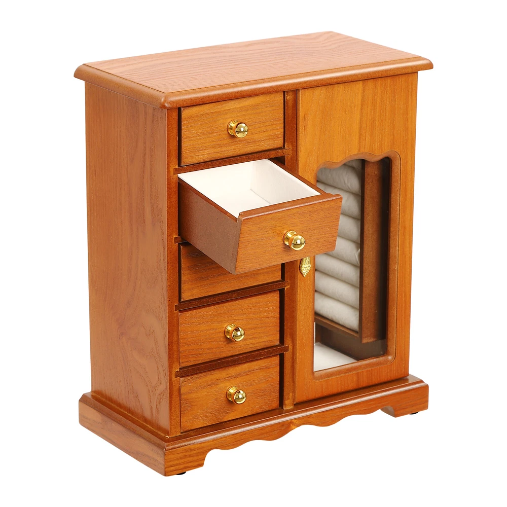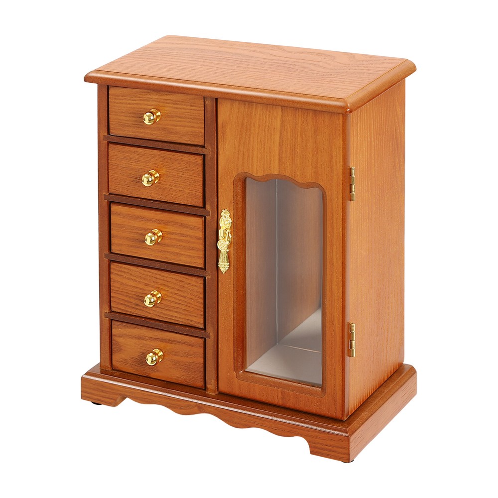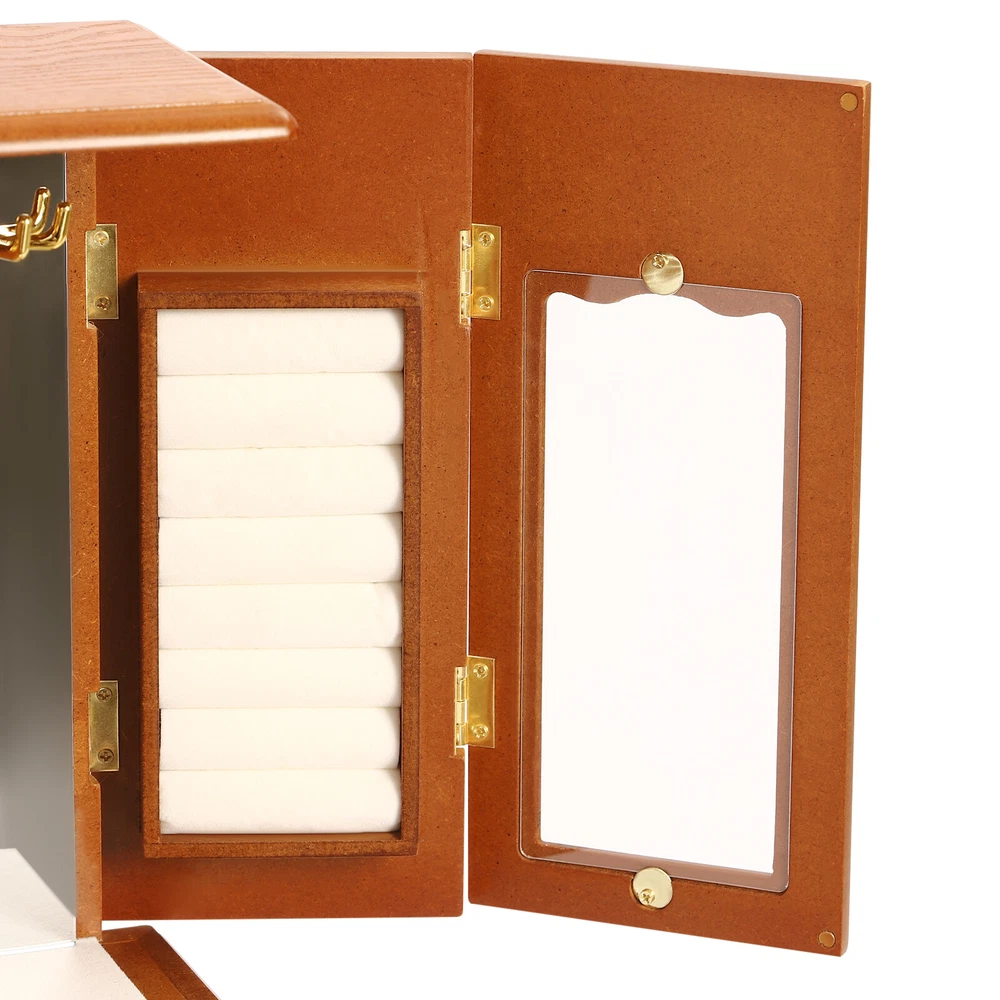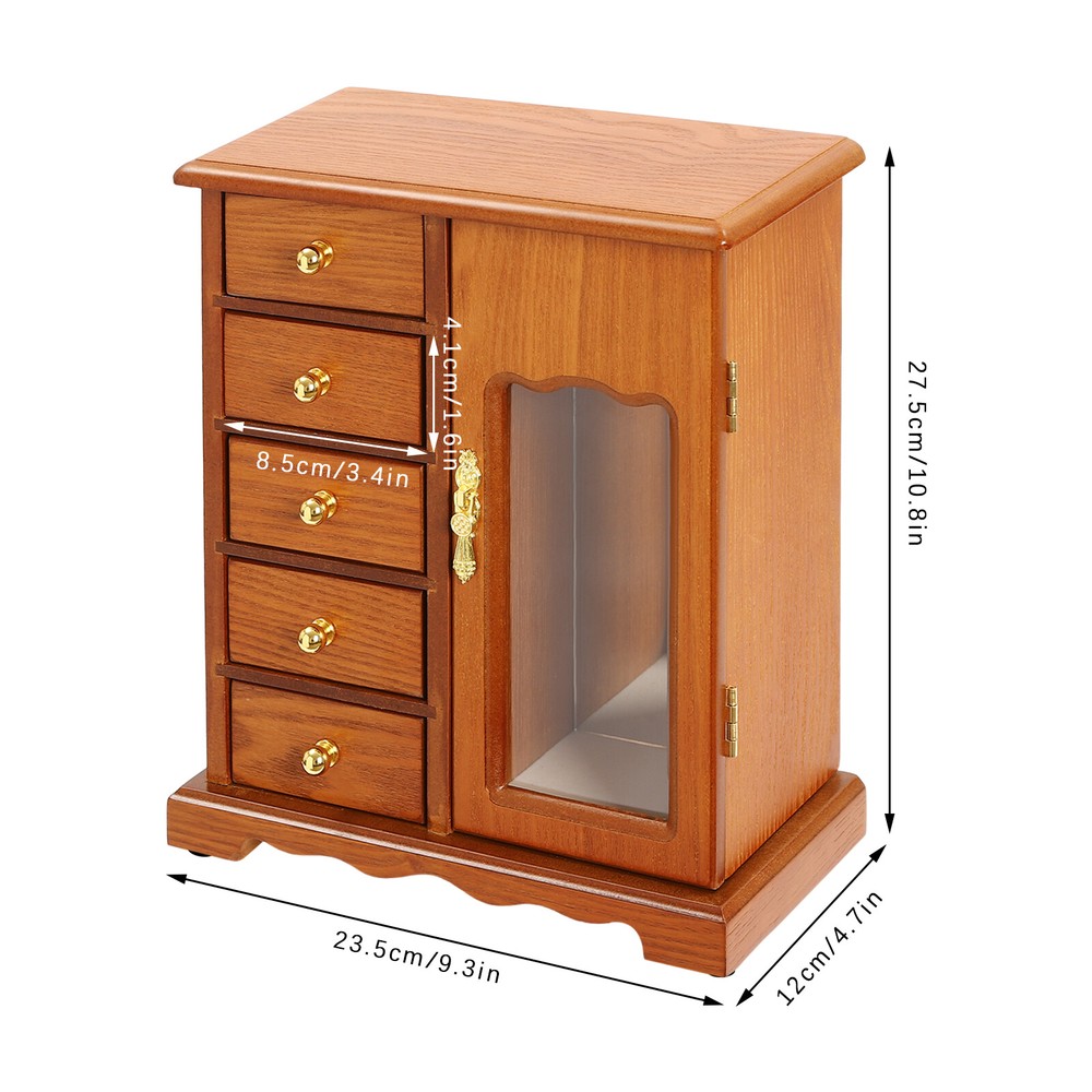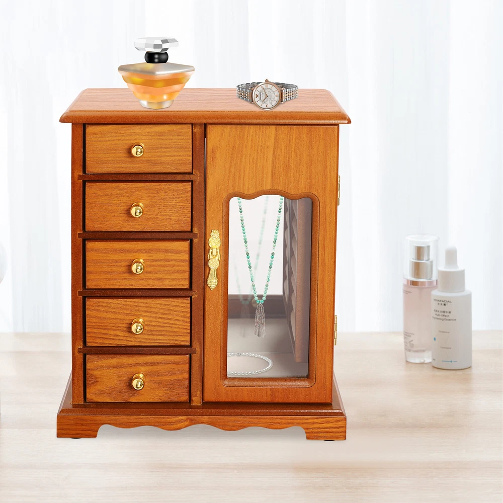 Wooden Jewelry Box Jewelry Storage Cabinet Organizer Mirror With 5 Drawers