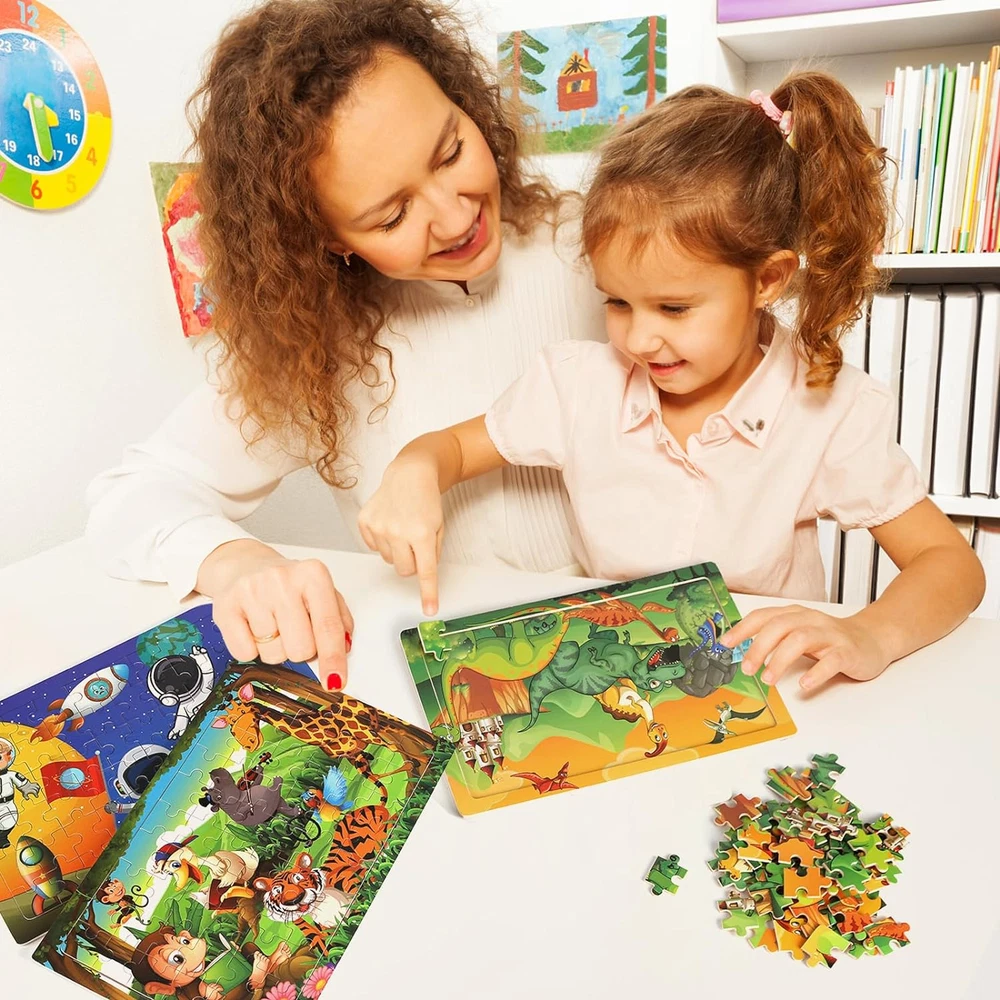 Store New Arrivals Add to Favorite View Feedback Contact Wooden Puzzles Toys for Kids Ages 4-6, Set of 3 Packs with 60-Piece Wood Jigsaw Description Item Weight 13.4 ounces Product Dimensions 11.8 x 7.9 x 0.59 inches Manufacturer recommended age 36 months - 8 years Manufacturer Slotic Educational and Entertaining: Engage young minds with our Wooden Puzzles, specifically designed for kids ages 4-6. Each puzzle pack contains 60 durable wood pieces, offering hours of educational fun as children explore three captivating themes: Dinosaurs, Animals, and Space. Premium Quality Construction: Crafted from high-quality wood, our puzzles are built to last. The sturdy construction ensures that pieces fit together smoothly, providing a satisfying tactile experience while enhancing fine motor skills and hand-eye coordination. Versatile Learning Tools: These puzzles go beyond mere entertainment. They serve as valuable learning tools, promoting cognitive development and problem-solving abilities. As children assemble intricate scenes of dinosaurs roaming the earth, animals in their habitats, or astronauts exploring the cosmos, they're actively learning and expanding their knowledge base. Ideal for Growing Minds: Our puzzles cater to a wide age range, making them perfect for kids aged 3 to 8 years old. With varying difficulty levels and themes, they grow with your child, offering new challenges and opportunities for learning as they develop and mature. Perfect Gifts for All Occasions: Whether for birthdays, holidays, or just because, our Wooden Puzzles make thoughtful and engaging gifts for boys and girls alike. Spark their imagination and encourage creativity with these timeless toys that provide endless entertainment and educational benefits. Step into a world of imagination and learning with our Wooden Puzzles for Kids Ages 4-6! This set features three packs, each containing 60-piece wood jigsaw puzzles themed around Dinosaurs, Animals, and Space. Crafted from premium wood, these puzzles are built to withstand the rigors of playtime while offering endless entertainment. Designed to stimulate young minds, our puzzles promote cognitive development, hand-eye coordination, and problem-solving skills. As children piece together vibrant scenes of prehistoric creatures, celestial bodies, and adorable animals, they embark on a journey of discovery and exploration. Ideal for boys and girls aged 3 to 8 years old, our Wooden Puzzles make perfect gifts for birthdays, holidays, or any occasion. Fuel their curiosity and creativity with these engaging puzzles, designed to inspire learning through play. Upgrade playtime with our Wooden Puzzles for Kids Ages 4-6 today! ABOUT US We offer the best prices around on high quality products. Our E-store includes media such as books, movies, music and games while offering electronics, toys, sporting apparel, clothing, tools, general home, garden items and more. SHIPPING We are always working hard to ensure your package arrives as soon as possible. Please understand that some factors like weather, high postal traffic, and the performance of shipping companies are outside of our control. We offer free shipping to the lower 48 states and ship within 2 business days of payment, usually sooner. We do not accept P.O. Boxes. Please provide a physical address. RETURNS We offer a 30-Day Return Policy on items which you are not completely satisfied with. You have the option for a full-refund or an exchange of the item. No returns are available on items shipped outside of the USA. PAYMENT We accept PayPal. CONTACT US This page content is yet to come Please ad us to your favorite seller and visit again later Thank You CUSTOMER SATISFACTION We try our very best to make sure every customer is completely satisfied. If there's a problem, message us! We're happy to help.