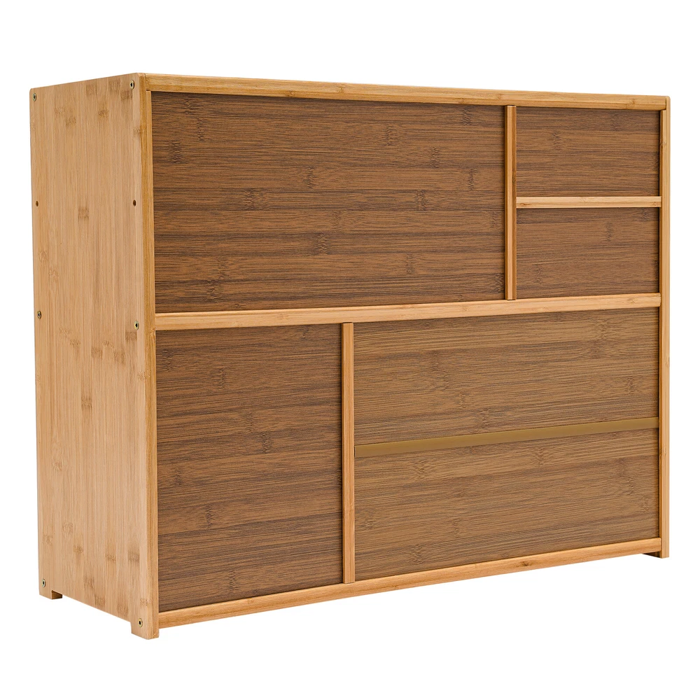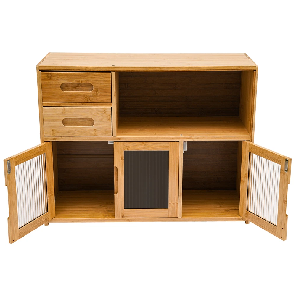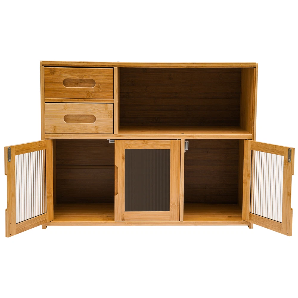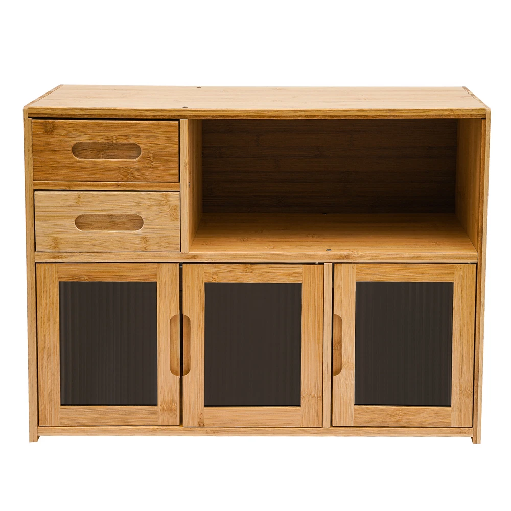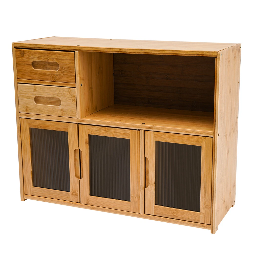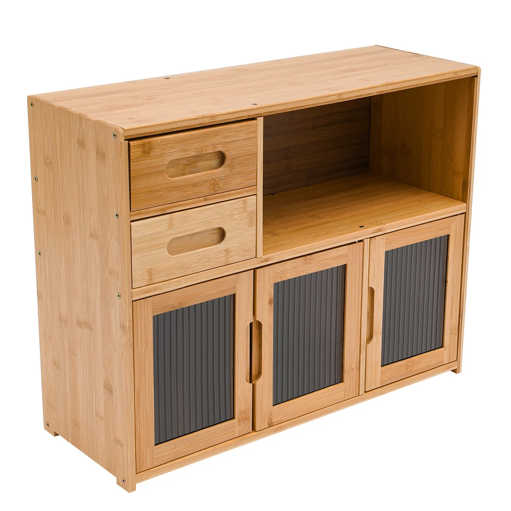 Home Wood Storage Cabinet Kitchen Storage Cabinet Floor Mount Pantry Cabinet Description Looking to add some organizational magic to your space? Look no further than the sleek and versatile kitchen storage cabinet! Two drawers, an open space, and a large storage space at the bottom make full use of vertical space for you to place items in the limited space. This innovative piece of furniture is designed to give you the edge when it comes to storing and organizing your belongings in an organized, tidy, and efficient manner. Application It suits many occasions, like home kitchen, dining room, hallway, living room, office, break room, restaurant, and so on to place kitchen items such as tableware, glass jars, microwave donkeys, spices, seasonings, and daily necessities such as books, photo albums, pens, documents, etc. Specification Color: Wood color Shape: Rectangular Mounting Type: Floor Mount Assembly Required: Yes Material: Bamboo, Acrylic Finish: Painting Each Tier Load-bearing Capacity: About 7.5-10kg/16.5-22 lbs Drawer Load-bearing Capacity: About 2.5kg/5.5 lbs Thickness: About 12mm/0.47in Product Size: 62*23*48cm/24.4*9*18.9in Drawer Height: 9cm/3.5in Open Tier Size(L*H): 39*19cm/15.3*7.5in Bottom Tier Size(L*H): 62*25cm/24.4*9.8in Package Included 1* Storage Cabinet 1* Glove All Accessories for Assembly Key Features High-end Materials : The premium bamboo with painting, and acrylic make this product sturdy, solid, and environmentally friendly, ensuring a long service life without being easily scratched or damaged. High Stability : The thickened board(12mm), screw-reinforced stabilized structure, stable feet, and reinforced composite backboard help it to support about 16.5-22lbs load-bearing capacity of each tier, keeping it in place and ensuring the safety of your items. Ample Storage Space : The two drawers, one open space, and a large bottom space with doors give you the freedom to arrange the cabinet's interior according to the size and type of items you want to store, thus organizing your belongings and making the most of the cabinet's space. The top platform can also be used to place some small potted plants or a microwave oven, making it a practical and stylish storage area. Considerate Design : The extended embedded handle makes it easy for you to open drawers and cabinet doors. Visual doors provide convenience for you to quickly find the items you need and protect your food from direct sunlight. The magnet can achieve a tight fit and prevent dust from entering to keep food or utensils clean. AttractiveAppearance: The wood color paired with clear doors makes it both beautiful and stylish, which well blends with your kitchen, living room, bedroom, etc. while adding texture and beauty to your room. Easy to Assemble : Simple construction, pre-drilled holes, a glove, and complete accessories help you achieve a quick installation, you just need to make sure all parts are properly nested. Effortless Clean-Up : The smooth surface and simple structure allow for easy access to all its components and you can wipe it with a clean towel. Protective Packaging : The strong box, sponge, and foam provide comprehensive protection for the product to ensure that it is fully delivered to you to the greatest extent possible. Customer Service : We are honored that you have chosen our product. We have sufficient confidence in the quality of the product so that you can buy it confidently. But if you have any questions, you can contact our customer service, he will patiently answer and solve your problems. Details Smooth Edges : The edges are finely treated to provide a comfortable and safer touch. Three Doors : They can provide enough door-opening space for you to place and take out items more conveniently. Rods : The inside of the drawer is supported by extra bamboo rods, which can effectively prevent the drawer from falling accidentally. Notes Please note that food, flower pots, and other items are not included. Please allow the slight color difference caused by the shooting light and 1-3cm error due to manual measurement and make sure you do not mind before ordering. Payment Delivery details Terms of sales About us Contact us Payment We accept ebay payment 。 Fees such as import duties, taxes are not included in the item price or shipping costs. These charges are the buyer's responsibility. Delivery details Shipping: 2-9 working days to: USA Terms of sales We maintain high standards of excellence and strive for hundred percent customer satisfaction. Feedback is very important to us. We hope that you contact us immediately before you give neutral or negative feedback, so that we can address your concerns. It is impossible to address issues if we do not know about them! About us Your satis faction is our ultimate goal. We work hard to earn your trust and future business. Our certified technicians have tested each item before shipping. The unit comes with 1 year limited warranty on all manufacturing defects. a) If you receive a defective item, you may return it or ask for a discount. Please contact us within 14 days after you receive the package. b) What you returned must be intact and in its original packaging as re? u. Customer is responsible for shipping costs of the returned item. c) We will cover the cost of shipping back t with the shipping rate indicated in the registration page. We will send you a new unit or refund the full payment you paid. Thank you. Contact us Business Hour Business Hour: Monday To Friday: 8:30 AM to 5:00 PM (Beijing China time) Due to time zones, our reply to your questions may not be immediately. But within above working time, we will reply your email within 24 hours. If it's non-workdays, please kindly be patient and wait till Monday. Please contact us with ebay message. Please feel free to contact us if you have any questions. Monday To Friday: 8:30 AM to 5:00 PM (Beijing China time) Due to time zones, our reply to your questions may not be immediately. But within 