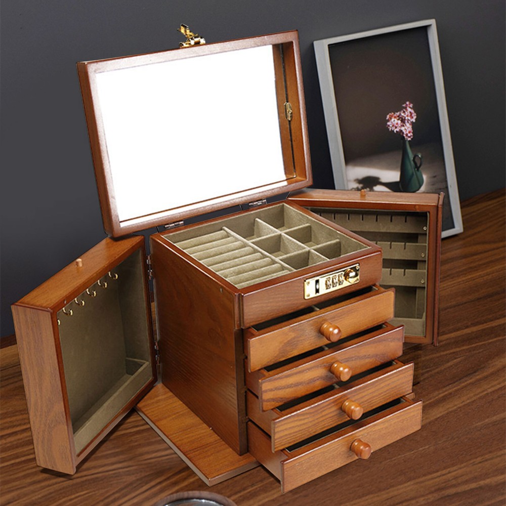 Description Jewelry holds an aura of sophistication and nobility, a status symbol that highlights your unique taste and elegance. However, for those who cherish jewelry, organizing it is also essential. This jewelry box is such a sacred sanctuary where jewelry is protected and delicately stored, preserving its original condition and beauty. Details Smooth Edges: The rounded edges are burr-free, which is comfortable to touch and enhances the safety of use, Round Handles: They can help you open or close drawers more easily.