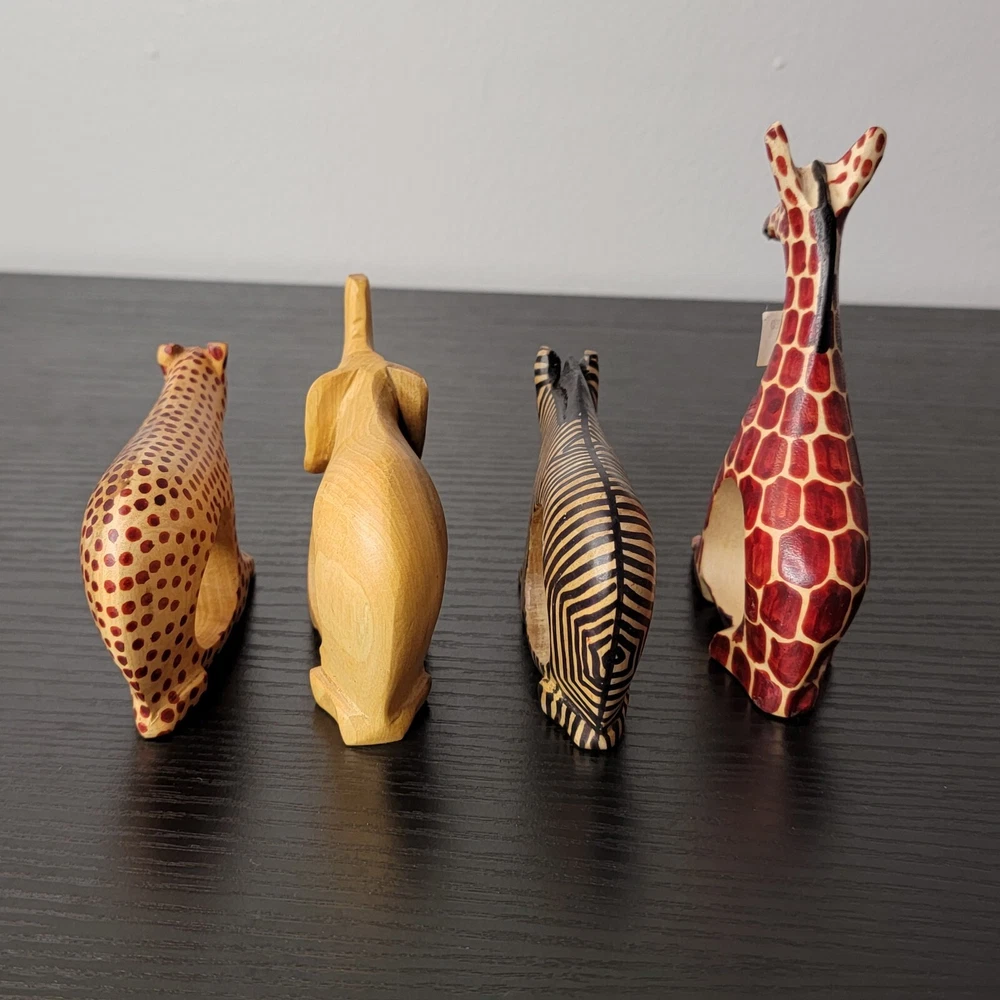 HomeWooden Napkin Holder Rings Hand Carved African Safari Set of 4
