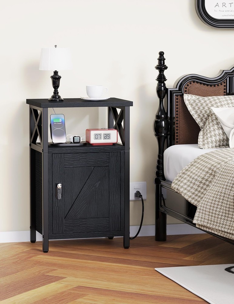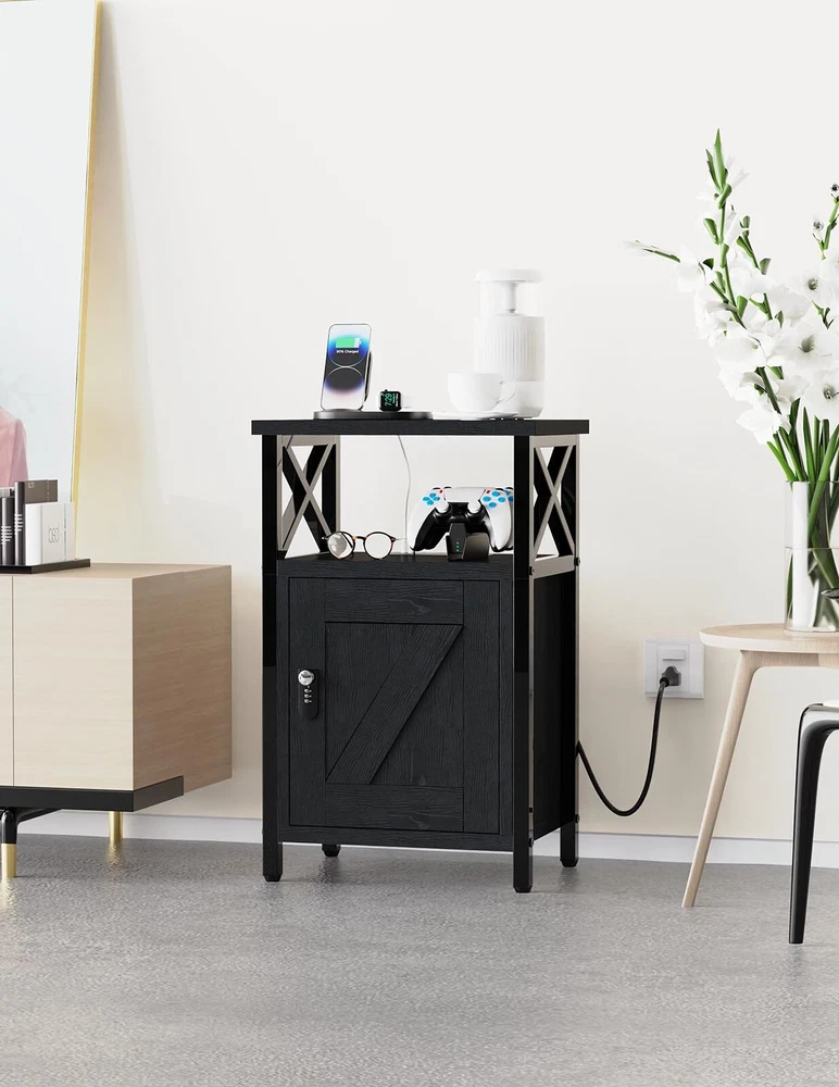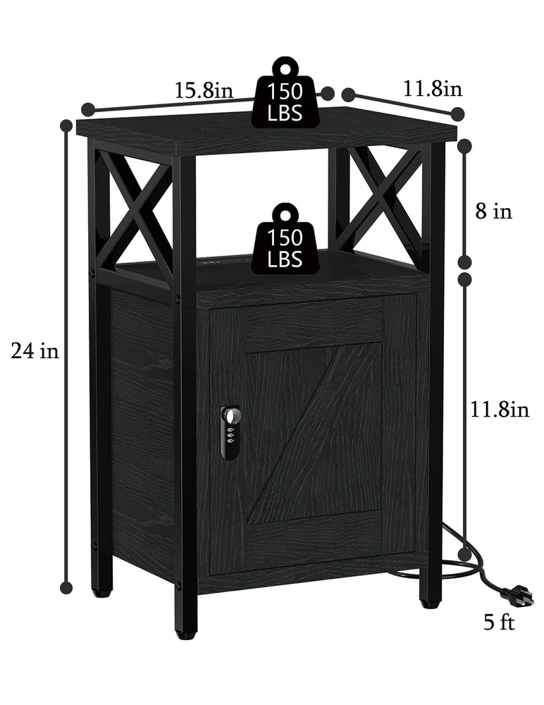 Wooden Nightstand with Charging Station, Bed Side Table with Drawers, Bedside Table with Lock, 3 USB & 2 Outlets, Night Stand with Storage, End Tables for Living Room, Bedroom, Dorm, Black 【Nightstand with Lock】 Our night stand upgraded a 3-number combination lock to keep your personal items safe and protect your privacy. It's always important to have a secure place to store your belongings, especially if you live with roommates or have guests over frequently. With a digital lock, your items are safe and secure 【Bedside Table with Charging Station】 Upgraded charging station features 3 USB ports, 2 AC outlets, with a 5 ft long power cord. Our bedside table allow you to charge multiple devices at the same time that will fully satisfy your charging needs, everything is within your arm's reach 【Excellent Appearance Side Table】 The bed side table blends modern style suitable for various home decor styles. It can match any space in the bedroom, living room, dorm and office, small space as an end table, night table, corner table, sofa side table 【Large Storage Space】 With multiple cabinet and shelves, this end table provides plenty of room to store your essentials such as books, magazines, and other personal items. The spacious storage area allows you to keep your bedside organized, making it easy to find things when you need it 【Sturdy and Strong】 This nightstand made from high quality wood and sturdy metal, it is strong and sturdy, able to withstand daily wear and tear. The bedside table is a strong and long-lasting piece of furniture that will provide you with years of use and enjoyment 【Easy Assembly & Professional Service】Each nightstand comes with an easy-to-follow instruction manual and all necessary tools. Assembly is a breeze, regardless of skill level. Plus, we offer a 1-year warranty with a speedy service team available to assist within 24 hours Multifunctional End Table This nightstand is a versatile piece of furniture that can be used as a side table in the living room. Its height is suitable for use next to a sofa or bed, providing a convenient surface for placing drinks, books, or other items. Spacious Table Top and Open Storage Shelf: The spacious table top and open storage shelf can meet more storage needs. Its storage cabinet provides you more private storage space. You can put clocks, lamps, books, cups, cell phones and anything else on them. This bedside table makes your space more neat and artistic. Special Decorative Storage Design The design of decoration brings charming bohemian style to your space. The wooden used in this nightstand adds a touch of organic charm to its design. Its natural color and unique patterns add depth and character to the nightstand SHIPPING Domestic Buyers - We have confidence in our products, but if you are not fully satisfied please contact us within 30 days of purchase and you will get full refund. - We ship within 3 business days of payment, usually sooner - We offer FREE shipping on all orders! - We only ship to the lower 48 states, no APO/FPO addresses or PO Boxes allowed International buyers – please note: Import duties, taxes, and charges aren't included in the item price or postage cost. These charges are the buyer's responsibility. - Please check with your country's customs office to determine what these additional costs will be prior to bidding or buying. * Order Cancellation Policy ** You can return a product for up to 30 days from the date you purchased it. 1. The seller reserves the right to cancel the special case only due to eBay cancellation fee. 2. The decision of seller is the final. 3. The seller will respond to the cancellation request within 2 business days. Please wait for the result of cancellation. 4. In case the cancellation is not completed by some reasons, the buyer can follow the options below to get the refund. 4.1 The buyer can reject the item when it arrives. 4.2 The buyer can send the item back to the seller within 30 days If the buyer receives item (USA Shipment ONLY). The seller will provide the FREE return label to the buyer when the buyer opens " Return Item" case on eBay by using the reason as "Change my mind" ONLY. 5. When buyer has placed the order. The order will be processed and completed by automatic warehouse system within 5 minutes. In case that buyer sends the cancellation request after 5 minutes of placing the order, the request will be rejected. **Sending direct message to cancel the order is not allowed for every case.* Return Policy For the return case - If buyer would like to return the items for refund or replacement, please CONTACT SELLER to receive the free return label from seller. The refund or replacement will be processed with the tracking number of return label which is provided by seller only. The other ways of return which are not approved by seller will not be processed for the refund or replacement.