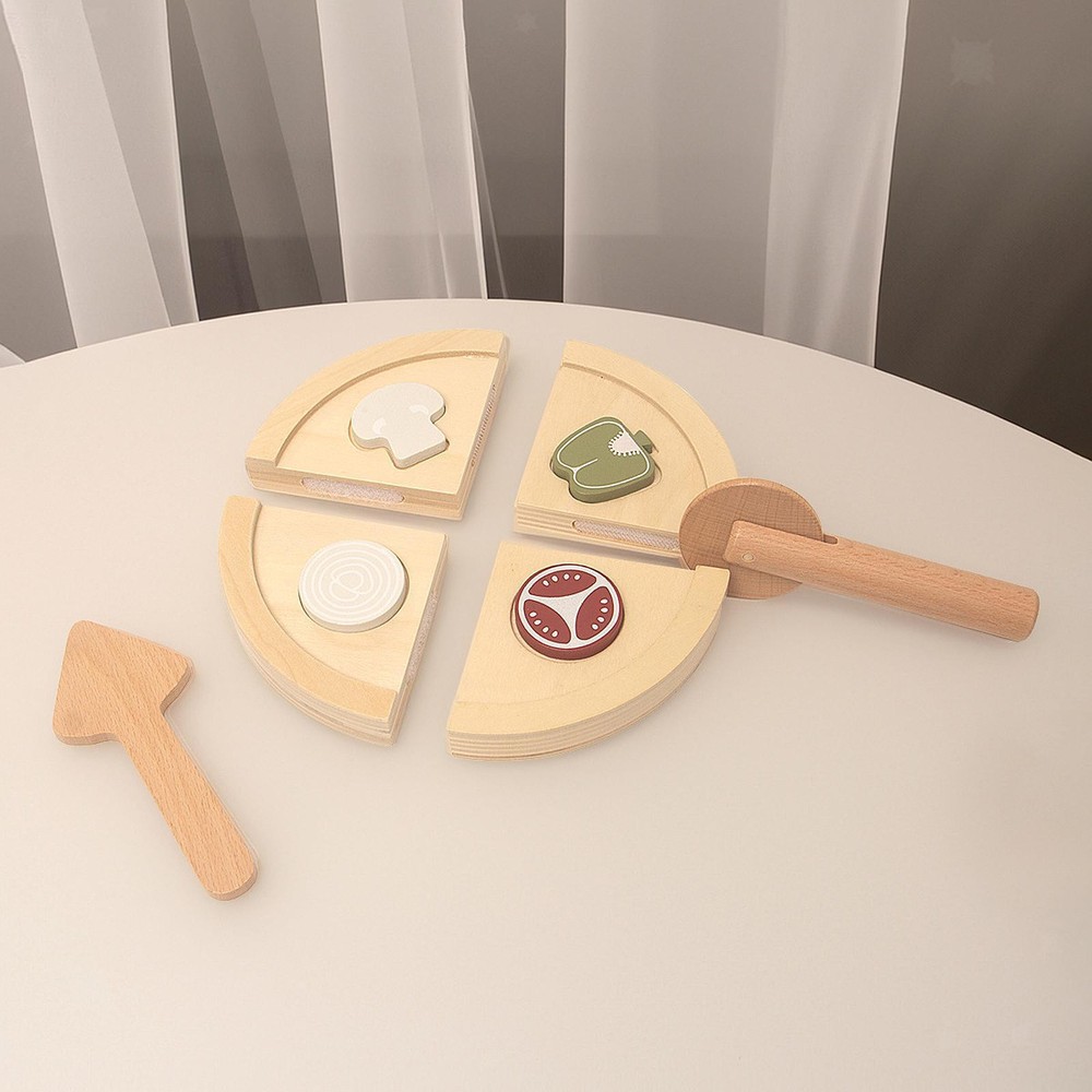 Wooden Pizza Toy Wood Cooking Toys Educational Pretend Play for Aged 3-8