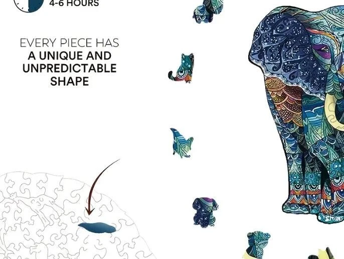 HomeWooden Puzzle ~ Elephant ~ Medium size ~ 8" x 8"