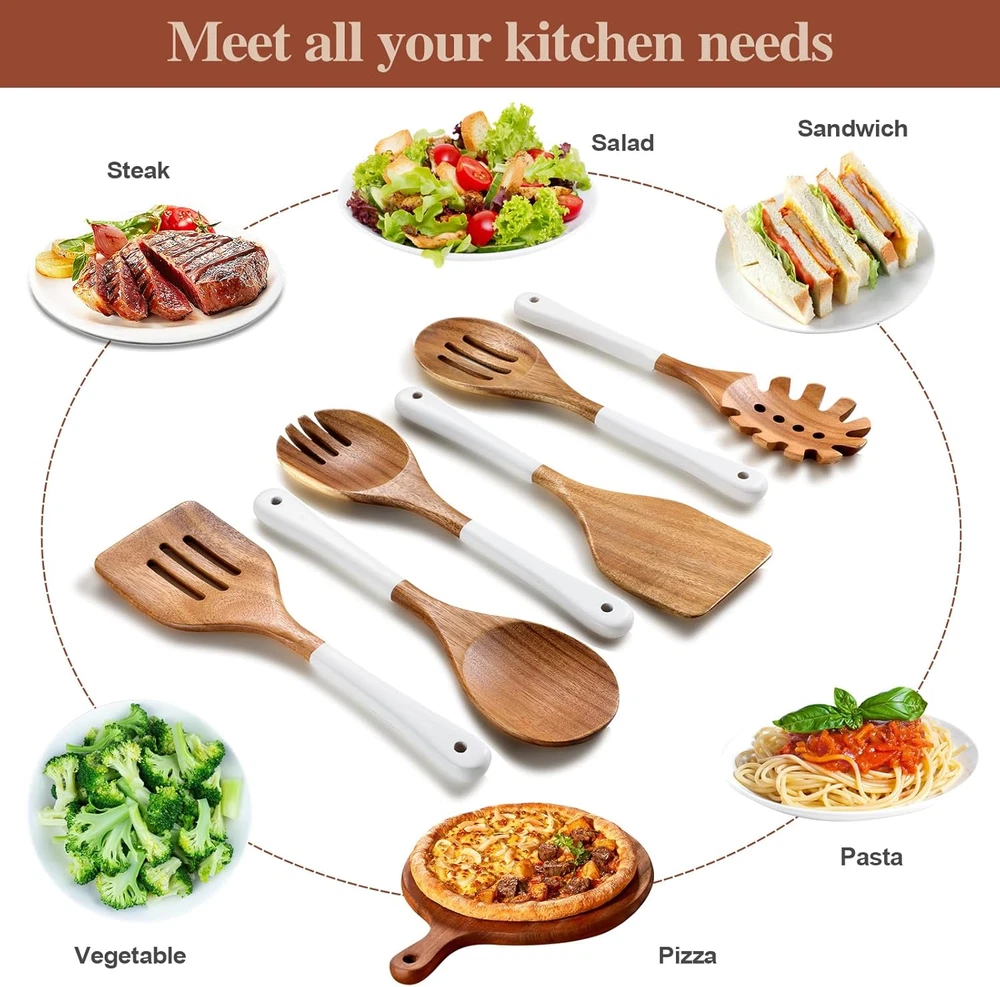 Store New Arrivals Add to Favorite View Feedback Contact Wooden Spoons for Cooking, 6 Pieces Natural Acacia Wooden Cooking Utensils or Non-Stick Wooden Kitchen Utensil Set for Kitchen Essentials, Wooden Cooking Utensils Set with Hanging Hole, White Description Color White Material Acacia Wood Material Type Acacia Wood Is Dishwasher Safe No Material Type Free Free of any materials other than Acacia Wood Number of Pieces 6 Is the item dishwasher safe? No Size 6 PCS SET Wooden Kitchen Utensil Set: Wooden utensil set made from high quality acacia wood, 6 pieces of wooden cooking utensils includes spasta server, wooden spoon, salad fork, slotted spatula, slotted spoon, wooden spatula.Our wooden spatula for cooking will cover all your basic cooking needs. Non-Scratch & Heat-Resistant: Safe to use on all types of cookware, including non-stick surfaces, preventing scratches and extending the life of your pots and pans. Designed to withstand high temperatures, these wood utensils set won't melt or warp, ensuring they remain functional and safe to use while cooking. Innovative Notch Design on the Back of Wood Cooking Utensils Set: The unique notch design on the back of the wooden spatula ensures it rests securely on the edge of pots and pans, preventing it from slipping into the food or onto the countertop. Ergonomic Design & Smooth Polish Surface: With hand polished craftsmanship, makes the wooden cooking utensils set surface smoothly and without burrs, Each utensil features a comfortable, easy-to-grip handle, ensuring a pleasant cooking experience and reducing hand fatigue during extended use. Easy to Clean and Healthy: Hand wash, please clean the wooden kitchen utensils set and dry it when receiving. If the wood spoons for cooking are stained with food, just put them in the water for a while and then wash them. When not in use, please store the wood kitchen utensils set in a dry place. Product Description ABOUT US We offer the best prices around on high quality products. Our E-store includes media such as books, movies, music and games while offering electronics, toys, sporting apparel, clothing, tools, general home, garden items and more. SHIPPING We are always working hard to ensure your package arrives as soon as possible. Please understand that some factors like weather, high postal traffic, and the performance of shipping companies are outside of our control. We offer free shipping to the lower 48 states and ship within 2 business days of payment, usually sooner. We do not accept P.O. Boxes. Please provide a physical address. For shipping outside of the continental USA, we only use eBay's Global Shipping Program.The item is shipped to KY and then sent to the rest of the world. International customers are responsible for all duties and taxes. Continue to check out in order to calculate costs for shipping the item to your country. Messages regarding eBay's Global Shipping Program MUST be directed at eBay EXCLUSIVELY. RETURNS We offer a 30-Day Return Policy on items which you are not completely satisfied with. You have the option for a full-refund or an exchange of the item. No returns are available on items shipped outside of the USA. PAYMENT We accept PayPal. CONTACT US This page content is yet to come Please ad us to your favorite seller and visit again later Thank You CUSTOMER SATISFACTION We try our very best to make sure every customer is completely satisfied. If there's a problem, message us! We're happy to help. WE ACCEPT Copyright © 2021 AutoDS. | All Rights Reserved