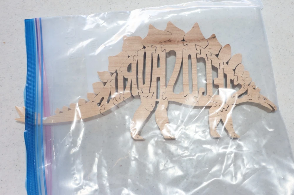 This wooden Stegosaurus jigsaw puzzle features a design of a stegosaurus dinosaur, combining the fun of a puzzle with the fascination of prehistoric creatures. The puzzle pieces are crafted from wood, providing durability and a tactile experience when assembling the puzzle. This toy is not only entertaining but also educational, as it allows users to learn about the stegosaurus while developing problem-solving and fine motor skills. Perfect for dinosaur enthusiasts and puzzle lovers alike, this wooden jigsaw puzzle offers a unique and engaging way to create a depiction of the iconic stegosaurus dinosaur.