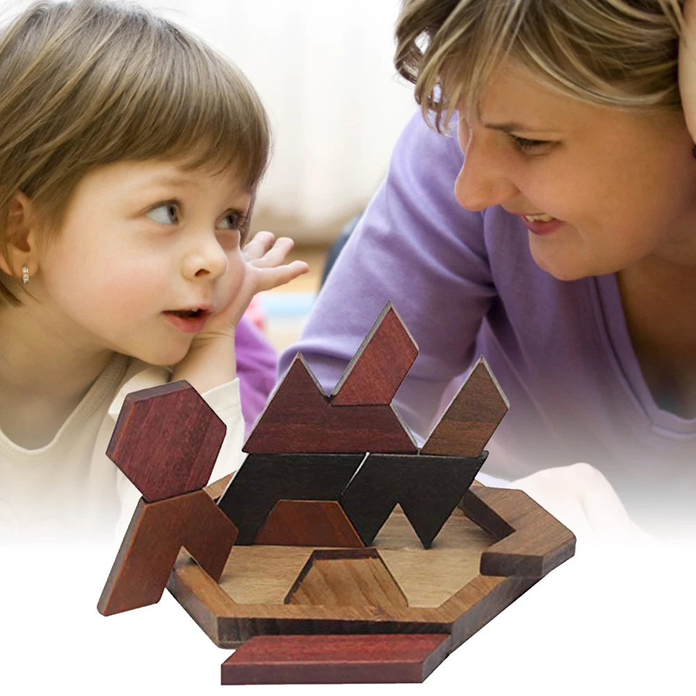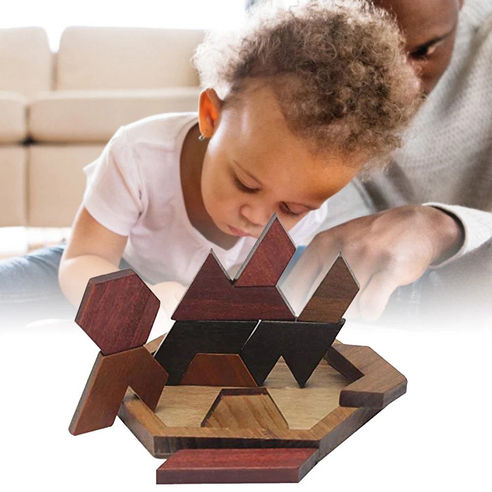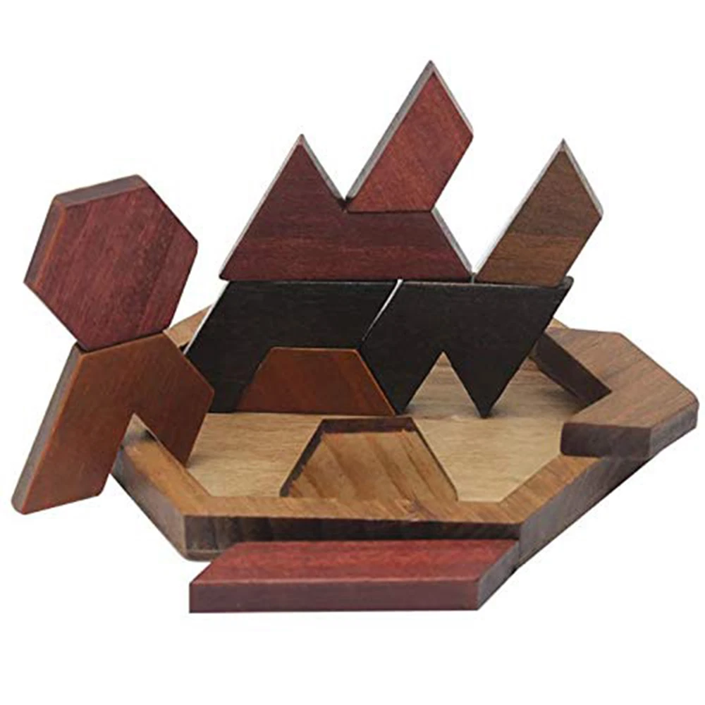 Wooden Tangram Puzzle Set Brain Teaser Geometric Block Logic IQ Montessori Toy