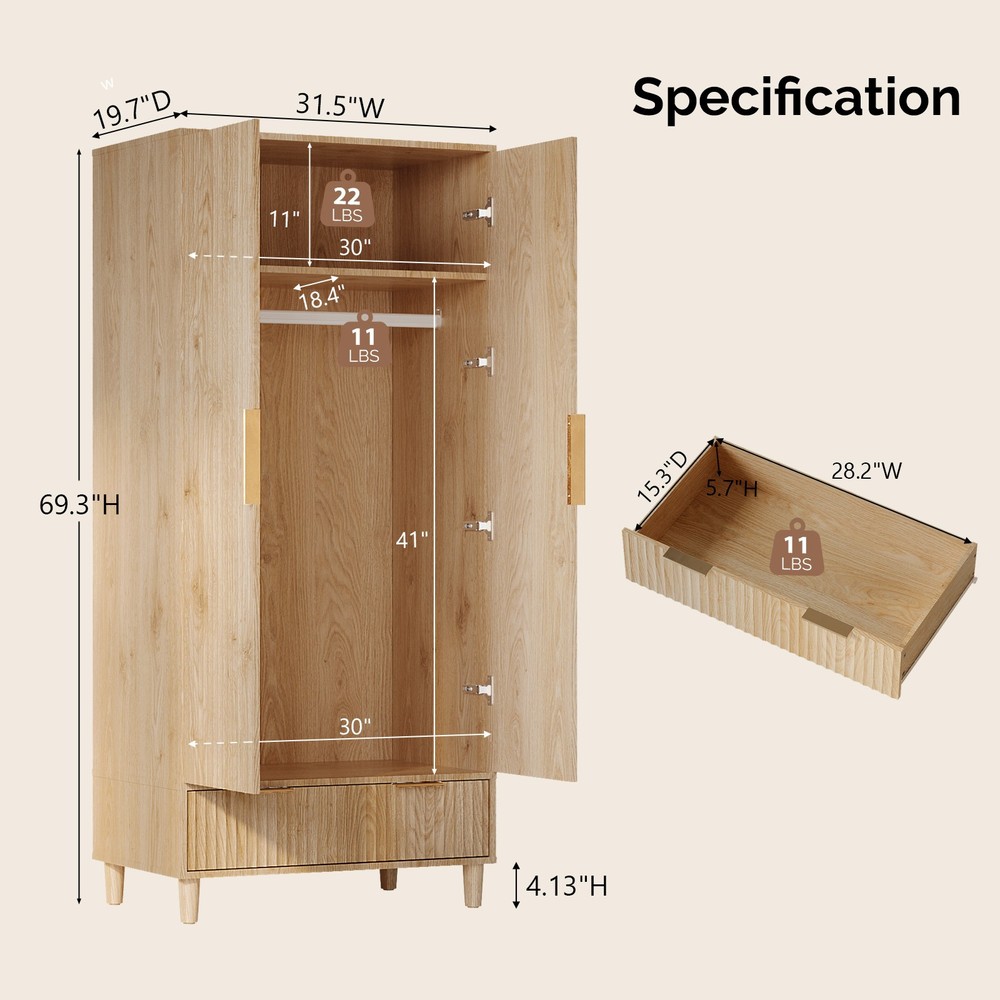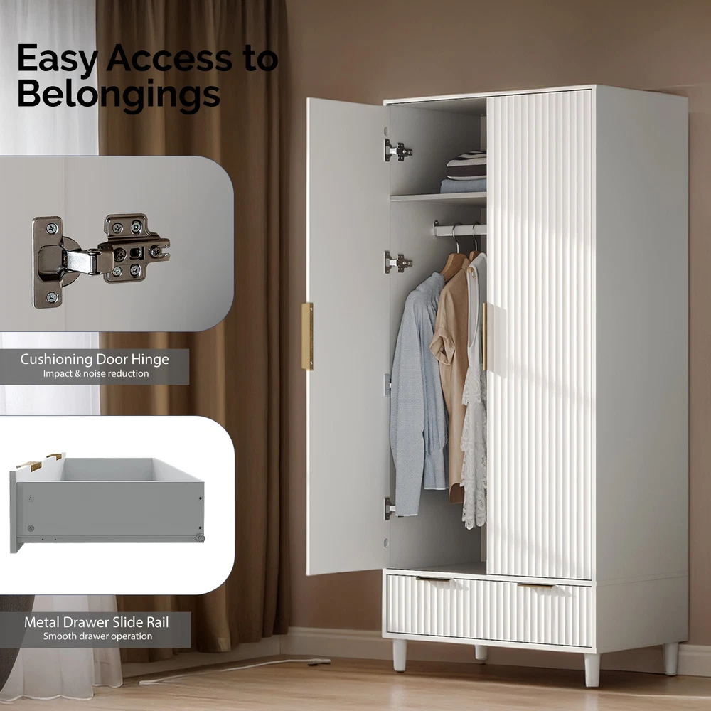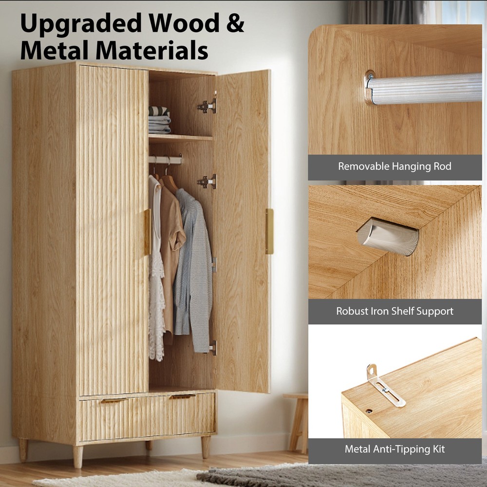 listing template VISIT OUR STORE SIGH UP FOR EMAIL Wooden Wardrobe for Hanging Clothes Closet Storage Cabinet with Hanging Rail Introductions Maximize your bedroom storage with our Farmhouse Armoire Wardrobe, a charming freestanding closet that combines rustic elegance with practical organization. Measuring 31.5"L x 19.7"W x 69.3"H, this spacious cabinet features two fluted doors, a hanging rod, shelves, and drawers to accommodate clothing, linens, and accessories. The natural wood and white two-tone finish adds farmhouse character to any space, while the compact footprint fits comfortably in bedrooms, guest rooms, or apartments. With its versatile storage options and timeless design, this armoire provides a perfect solution for homes lacking built-in closets. Features Farmhouse Charm - Fluted doors with natural/white two-tone finish Multi-Level Storage - Hanging rod + shelves + 2 drawers Space-Saving Design - Fits snugly in corners or small bedrooms Sturdy Construction - Solid wood frame with metal hinges Easy Assembly - All hardware and instructions included Freestanding Convenience - No installation required Specifications Material: Engineered wood with metal hardware Dimensions: 31.5"L x 19.7"W x 69.3"H Hanging Space: 28" rod length Drawer Dimensions: 14"W x 16"D x 6"H each Shelf Dimensions: Adjustable heights Color: Natural wood/White Package Includes 1 x Armoire with 2 Fluted doors You might like this more>> Portable Princess Castle Play House Blue Large Kids Play Tent $23.79 Double Shoe Rack Closet Shelf Storage Organizer $19.49 Oil Painting Easel Sketch Box Portable Folding $57.49 FCH L-Shaped Corner Computer Desk Home Office Desk $109.99 10 Tier Durable Storage Organizer 30 Pair Shoe Tower $18.99 24 Slots PU Leather Wrist Watch Box Display Case Organizer $16.99 Shipping Policy 1. Ship from New Jersey by Standard Int'l Shipping, and only to VERIFIED PAYPAL ADDRESS . 2.International Buyers – Please Note: a. Import duties, taxes and charges are not included in the item price or shipping charges. These charges are the buyer’s responsibility. b. Please check with your country’s customs office to determine what these additional costs will be prior to bidding/buying. 3. Please check your shipping address carefully before checkout, it can't be changed if order completed. 4. All items will be shipped to buyer's ebay address. Before you pay, please make sure your address in ebay match the address you would like us to ship to. 5. Ship within 1 business day once payment completed. We do not ship on weekends or public holidays. 6. Item normally will arrive in 10-15 business days but sometimes goes to 25-30 business days for remote area. That is depends on the freight in different countries. Return Policies 1. Refunds given only if item DOA and cannot be replaced via PAYPAL . If so, Please contact us with 5 days since you receive the item and and return to us within 30 days from the delivery date for exchange or refund. 2. If you need return, please contact our customer service representative, let us know the detailed problem and send us some pictures for confirmation. Payment Payment should be sent within 8(EIGHT) days of auction closing. Feedback If you are dissatisfied for any reason, please do not be quick to leave negative/neutral feedback. We work hard to make sure EVERY CUSTOMER 100% SATISFIED and resolve any problem for you. Work Time Work Time: Monday to Saturday About Us | Newsletter| Feedback| Contact Us Copyright © 2021 City-green. All rights reserved. 无标题文档 Wooden Wardrobe for Hanging Clothes Closet Storage Cabinet with Hanging Rail Introductions Maximize your bedroom storage with our Farmhouse Armoire Wardrobe, a charming freestanding closet that combines rustic elegance with practical organization. Measuring 31.5"L x 19.7"W x 69.3"H, this spacious cabinet features two fluted doors, a hanging rod, shelves, and drawers to accommodate clothing, linens, and accessories. The natural wood and white two-tone finish adds farmhouse character to any space, while the compact footprint fits comfortably in bedrooms, guest rooms, or apartments. With its versatile storage options and timeless design, this armoire provides a perfect solution for homes lacking built-in closets. Features Farmhouse Charm - Fluted doors with natural/white two-tone finish Multi-Level Storage - Hanging rod + shelves + 2 drawers Space-Saving Design - Fits snugly in corners or small bedrooms Sturdy Construction - Solid wood frame with metal hinges Easy Assembly - All hardware and instructions included Freestanding Convenience - No installation required Specifications Material: Engineered wood with metal hardware Dimensions: 31.5"L x 19.7"W x 69.3"H Hanging Space: 28" rod length Drawer Dimensions: 14"W x 16"D x 6"H each Shelf Dimensions: Adjustable heights Color: Natural wood/White Package Includes 1 x Armoire with 2 Fluted doors Shipping + 1. Ship worldwide from New Jersey by reliable shipping companies -- USPS, UPS, FEDEX, DHL, etc., and only to VERIFIED PAYPAL ADDRESS. Transport Delivery ETA. Package handling only takes 1 business day at our warehouse, so please make sure entering correct payment and shipping information before checking out. Once your payment is completed, we are not going to accept any more changes to your order. 2. International Buyers – Please Note: a. Import duties, taxes and charges are not included in the item price or shipping charges. These charges are the buyer's responsibility. b. Please check with your country's customs office to determine what these additional costs will be prior to bidding/buying. 3. Please check your shipping address carefully before checkout, it can't be changed if order completed. 4. Orders placed on weekend will be shipped within 2 days.Notification of shipment with tracking number will be sent to buyers. 5. Standard shipping: 2-7 business days Expedited Shipping: 2-3 business days One-day Shipping: 1 business day International shipping: Varies 6.