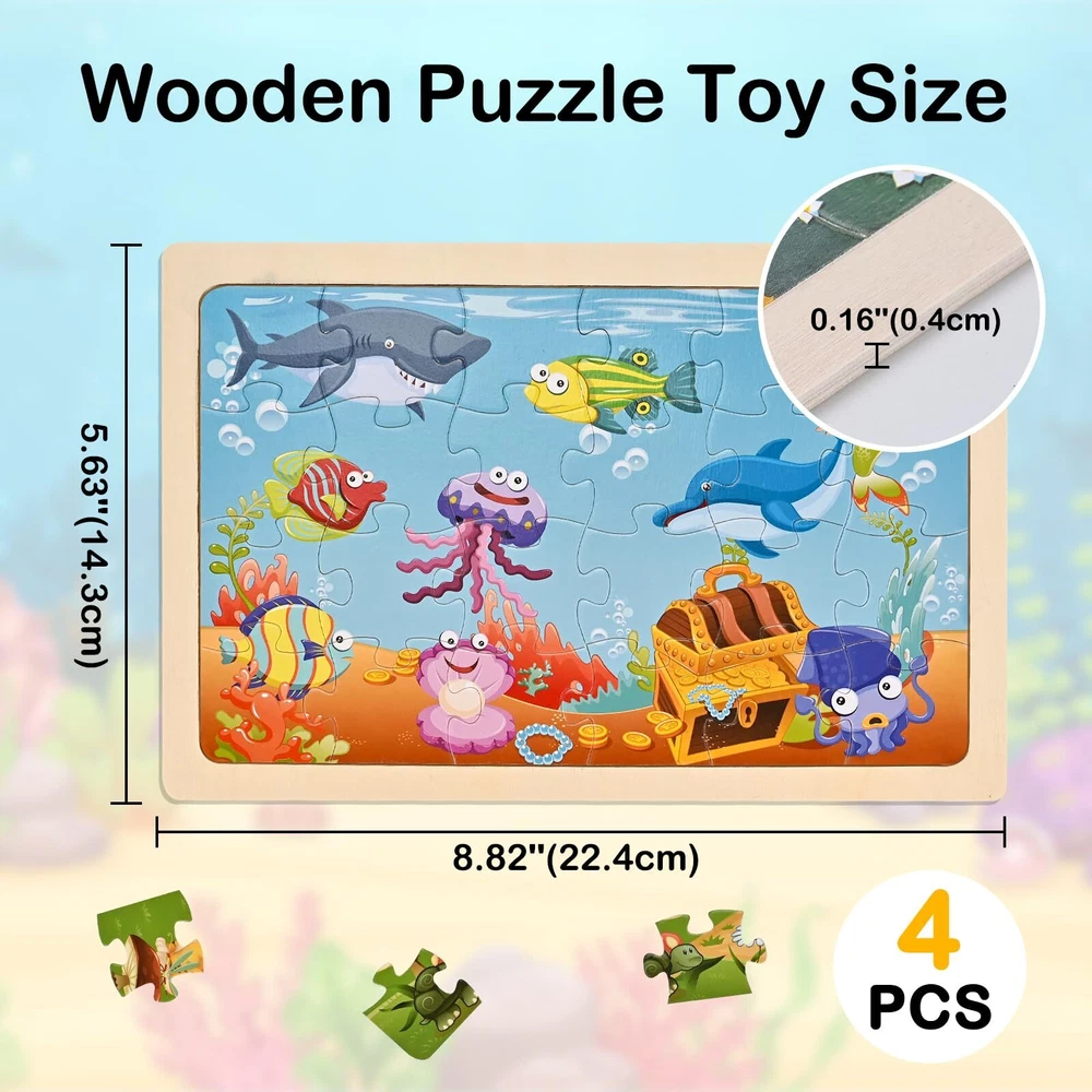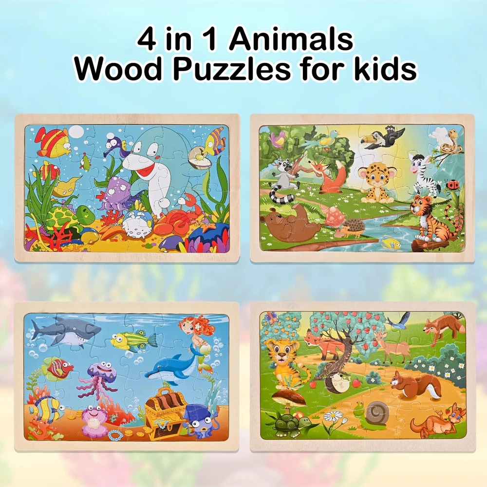 Wooderma Wooden Puzzles for Kids Ages 3 4 5, 4 Packs 24 Pcs, Sea and Animal Puzzles for Toddlers, Toddlers Jigsaw Puzzles, Preschool Educational Learning Toys for Boys and Girls Improve logical thinking and problem solving: toddler puzzles require children to analyze the relationship between the pieces and gradually understand the concept of “part” and “whole”, thus developing logical thinking and problem solving skills. Hands-on skills: Wood jigsaw puzzles for kids require children to work with their hands, which can effectively exercise their finger dexterity and hand muscle development. Observational skills: Children must carefully observe the characteristics and position of each piece when searching for the right puzzle piece, which helps to improve their observational skills and concentration. Social interaction: If playing with other children, kids puzzles toy can also promote communication, cooperation and sharing, and learn the initial experience of teamwork. Wooden puzzles for toddlers are a fun and educational activity that has a comprehensive and positive impact on children's physical and mental development. Wooden Puzzle Set contains: 4 Pieces Puzzles, each puzzle contains 24 pieces of durable and colorful wooden puzzles, which can be assembled and put together smoothly, this product has 4 kinds of attractive themes: river animals *1, orchard animals *1, underwater world *1, underwater animals *1 Toddler Puzzles: Wooden puzzles use precision cutting technology and quality wood materials. Each piece is carefully polished to ensure the safety of your child's hands. Preschool educational learning toys are safe, durable and made for children, and can be reused by children aged 3-8 years old Improve Ability:This wooden jigsaw puzzlesis designed to help children train their imagination and improve their hand-eye coordination. They provide valuable practice in problem solving and spatial reasoning skills as children engage in completing the puzzle Flexible Use: Wood jigsaw puzzles have removable paper illustrations underneath to guide where the puzzle pieces go, which children can use as a reference. In addition, each puzzle comes with a special wooden frame to ensure that the puzzle is held firmly in place during play Ideal Present: Our wooden puzzles for toddlers is a great gift choice for birthdays, Christmas, New Year, Thanksgiving, Easter and other holidays. These puzzles contain 24 wooden pieces and are perfect for boys and girls ages 3 to 8 Shipping from the USA All of our products are shipped from the USA, ensuring quick delivery to your destination. Payment We offer the following payment methods: PayPal, credit card, bank transfer, and eBay's secure payment system. Free Shipping & Free Returns Shipping within the USA is FREE. Additionally, any return is absolutely free for you. Risk-Free Purchase You have the option to return an item within 30 days without any justification. We cover the return shipping costs! Fast Shipping We ship immediately upon receipt of payment. Generally, the package is delivered within 2-3 days in the USA. If it takes longer, we will contact you. Quality and Costs Made in Europe, USA, China No customs fees or additional charges Total satisfaction guarantee Invoice with declared VAT available upon request in .pdf format Feedback Your feedback is very important to us. After you pay for your purchase, you will automatically receive positive feedback from us.