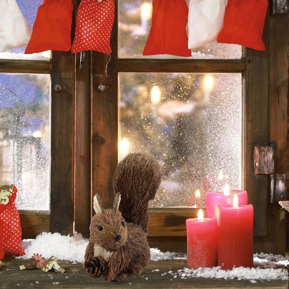 wolflend Straw Animals Christmas Little Squirrel Doll Holiday Decoration