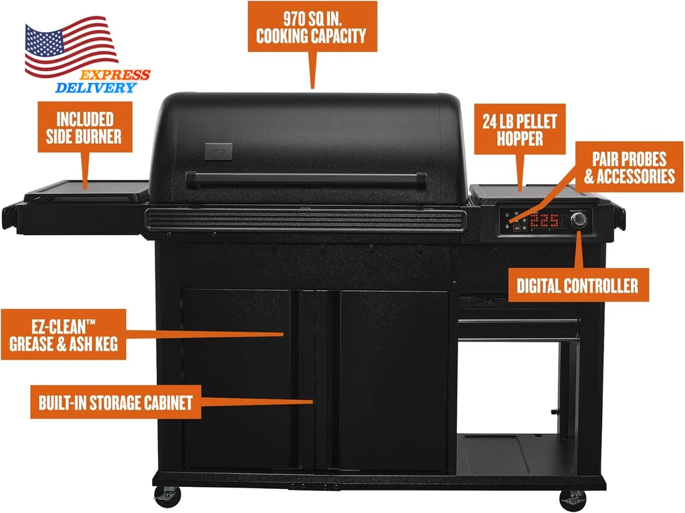 Store New Arrivals Add to Favorite View Feedback Contact Woodridge Elite Electric Wood Pellet Grill & Smoker Side Sear Station Smoke Mode Description Item model number TFC97XLH Style Pellet Grill Power Source Electric Warranty Description 10-Year Limited Fuel Type Wood Pellet Manufacture Year 2025 Finish Powder Coated Material Alloy Steel Installation Method Free Standing Outer Material Alloy Steel Model Name Grills Woodridge Elite Wood Pellet Grill Form Factor Combination BBQ Smoker Item Package Quantity 1 Batteries Required? No Item Weight 220.5 Pounds Special Features Enclosed Cabinet, Infrared Side Burner Part Number TFC97XLH Color Black Handle Material steel Included Components grill Product Dimensions 27"D x 67"W x 47"H Size Extra large Premium Wood-Fired flavor: Infuse elite wood-fired taste into brisket, burgers, pizza, and more with the Traeger Woodridge Elite wood pellet grill, built for serious grillers who want superior performance and versatile outdoor cooking. Grill Body Insulation: Cook all year long with durable construction and insulation that helps maintain consistent heat on your electric smoker grill, delivering reliable results for winter grilling, backyard parties, and holiday meals. Side Sear Station: Unlock high-heat searing with the built-in side burner on the Traeger Woodridge Elite pellet smoker grill, perfect for scorching steaks, sautéing vegetables, simmering sauces, and expanding your outdoor cooking options. Large Cooking Capacity: With 970 sq. in. of grilling space, this Traeger pellet smoker grill handles up to 7 chickens, 9 rib racks, or 7 pork butts, making it easy to serve meals for family dinners, sporting events, and celebrations. Smart Features and Monitoring: WiFIRE technology, digital pellet sensor, Bluetooth meat thermometer compatibility, and Keep Warm Mode help you control your outdoor smoker grill from anywhere using the Traeger app. Convenience and customization: Stay organized with a built-in storage cabinet and side shelf, along with Traeger grill accessories P.A.L. and ModiFIRE (sold separately) and the EZ-Clean Grease & Ash Keg make cooking simple and efficient. Reach the pinnacle of wood-fired cooking with the Traeger Woodridge Elite, the most advanced and feature-rich grill in the Woodridge lineup. Built for those who demand the highest performance, versatility, and durability, this electric pellet smoker grill is the gold standard for serious outdoor cooks. From low-and-slow smoked brisket to seared steaks and wood-fired pizza, the Woodridge Elite delivers unmatched results with bold flavor and Set-It & Forget-It ease. With a large 970 sq. in. cooking capacity, it’s designed to serve gatherings of any size, from weekend get-togethers to full holiday feasts. At the core of its elite design is the integrated Side Sear Station, allowing you to sear, sauté, simmer, or fry with high heatexpanding your capabilities beyond traditional grilling. Super Smoke Mode adds an extra layer of wood-fired flavor at the push of a button, perfect for ribs, pulled pork, and more. WiFIRE connectivity lets you control your Traeger smoker grill remotely, while the digital pellet sensor and Bluetooth meat thermometer compatibility ensure precision every step of the way. Grill body insulation provides dependable performance in all seasons, so you’re ready to cook year-round. The Woodridge Elite is engineered for convenience with an enclosed storage cabinet, folding side shelf, and easy-clean features like the EZ-Clean Grease & Ash Keg and pellet evacuation system. P.A.L. Pop-And-Lock and ModiFIRE accessory compatibility (sold separately) allow you to personalize your setup and expand your cooking potential. For grillers who settle for nothing less than the best, the Traeger Woodridge Elite stands alone, delivering elite craftsmanship, powerful performance, and the most complete outdoor cooking experience available. ABOUT US We offer the best prices around on high quality products. Our E-store includes media such as books, movies, music and games while offering electronics, toys, sporting apparel, clothing, tools, general home, garden items and more. SHIPPING We are always working hard to ensure your package arrives as soon as possible. Please understand that some factors like weather, high postal traffic, and the performance of shipping companies are outside of our control. We offer free shipping to the lower 48 states and ship within 2 business days of payment, usually sooner. We do not accept P.O. Boxes. Please provide a physical address. For shipping outside of the continental USA, we only use eBay's Global Shipping Program.The item is shipped to KY and then sent to the rest of the world. International customers are responsible for all duties and taxes. Continue to check out in order to calculate costs for shipping the item to your country. Messages regarding eBay's Global Shipping Program MUST be directed at eBay EXCLUSIVELY. RETURNS We offer a 30-Day Return Policy on items which you are not completely satisfied with. You have the option for a full-refund or an exchange of the item. No returns are available on items shipped outside of the USA. PAYMENT We accept PayPal. CONTACT US This page content is yet to come Please ad us to your favorite seller and visit again later Thank You CUSTOMER SATISFACTION We try our very best to make sure every customer is completely satisfied. If there's a problem, message us! We're happy to help. WE ACCEPT Copyright © 2021 AutoDS. | All Rights Reserved