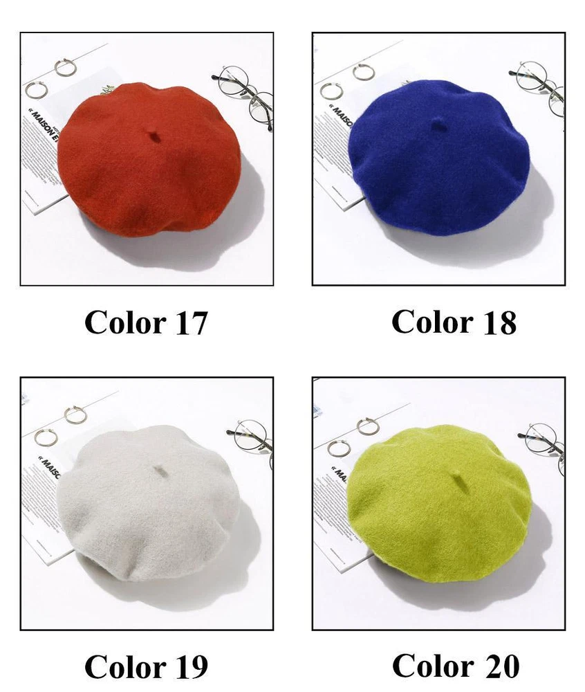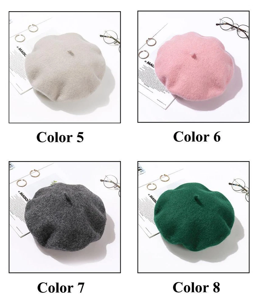 Wool Beret Hats Women Winter French Hat Girls Solid Color Fashion Autumn Winter Beret Hat For Women Warm Felt Street Berets 1,Material: Wool,Acrylic 2,Circumference: About 87cm 3,Keyword: Beret,Wool Beret Hat,Beret Hats Women,Beret Hats For Women,Cap hat, Women Beret,Beret Women,Winter Beret,Winter Hats For Women,Hats For Women,Felt Berets