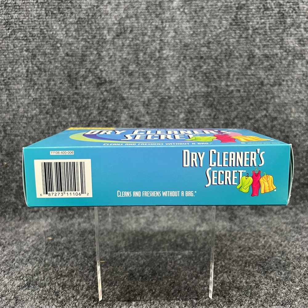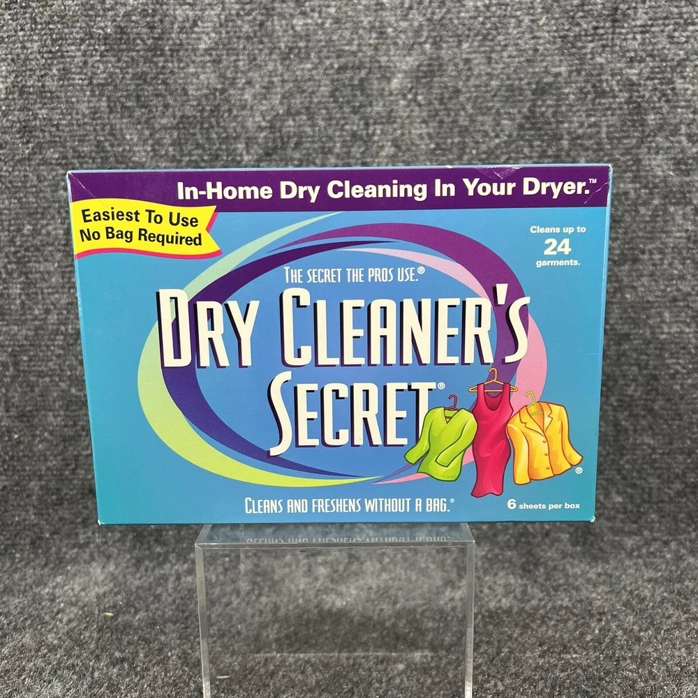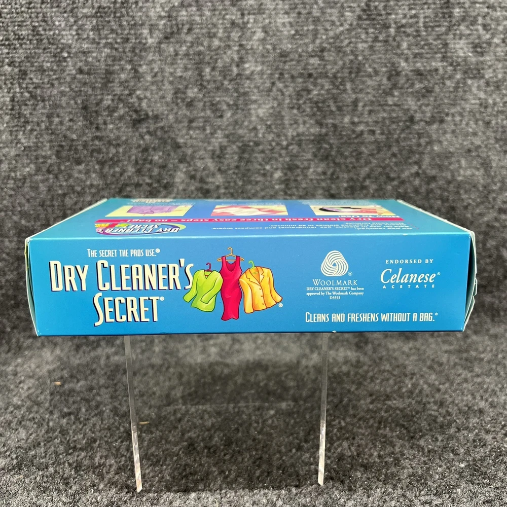 New in Box, Woolmark Dry Cleaner's Secret at Home Dry Cleaning - contains 6 Sheets which the box says is good for cleaning up to 24 garments at home in your dryer. (NOT recomended for use on fur, leather, suede or velvet). Please refer to the pictures for further.
